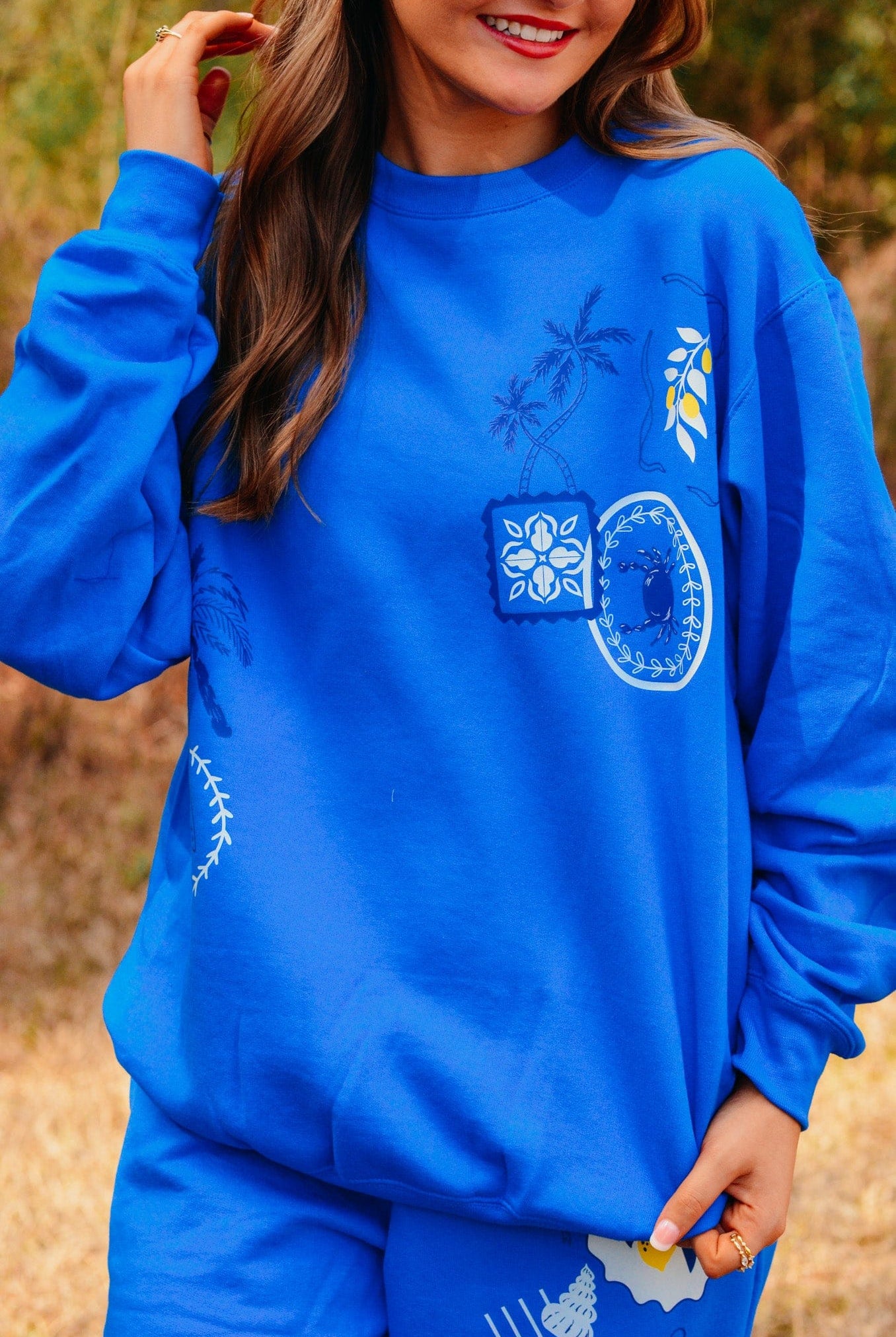 Southern Bliss Light Navy Fleece Scoop Sweatshirt