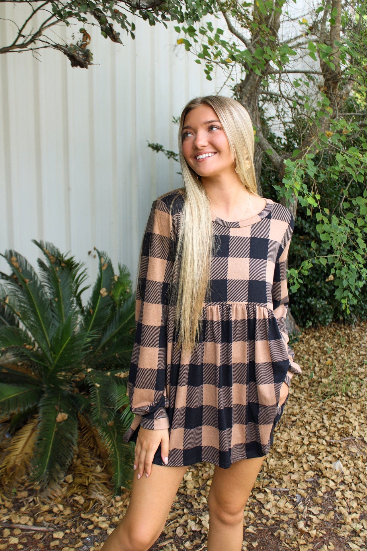 Fall Babydoll Plaid Top