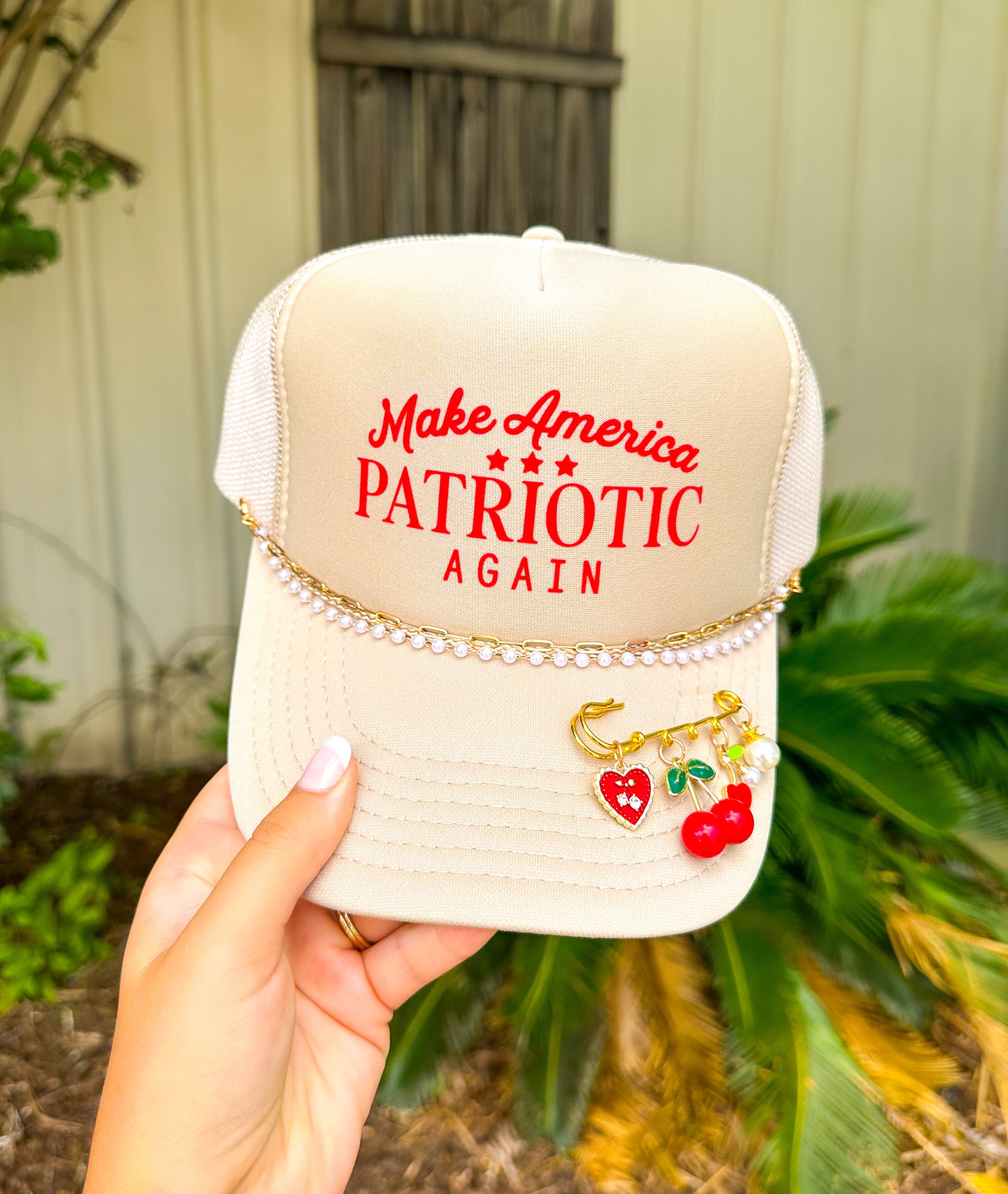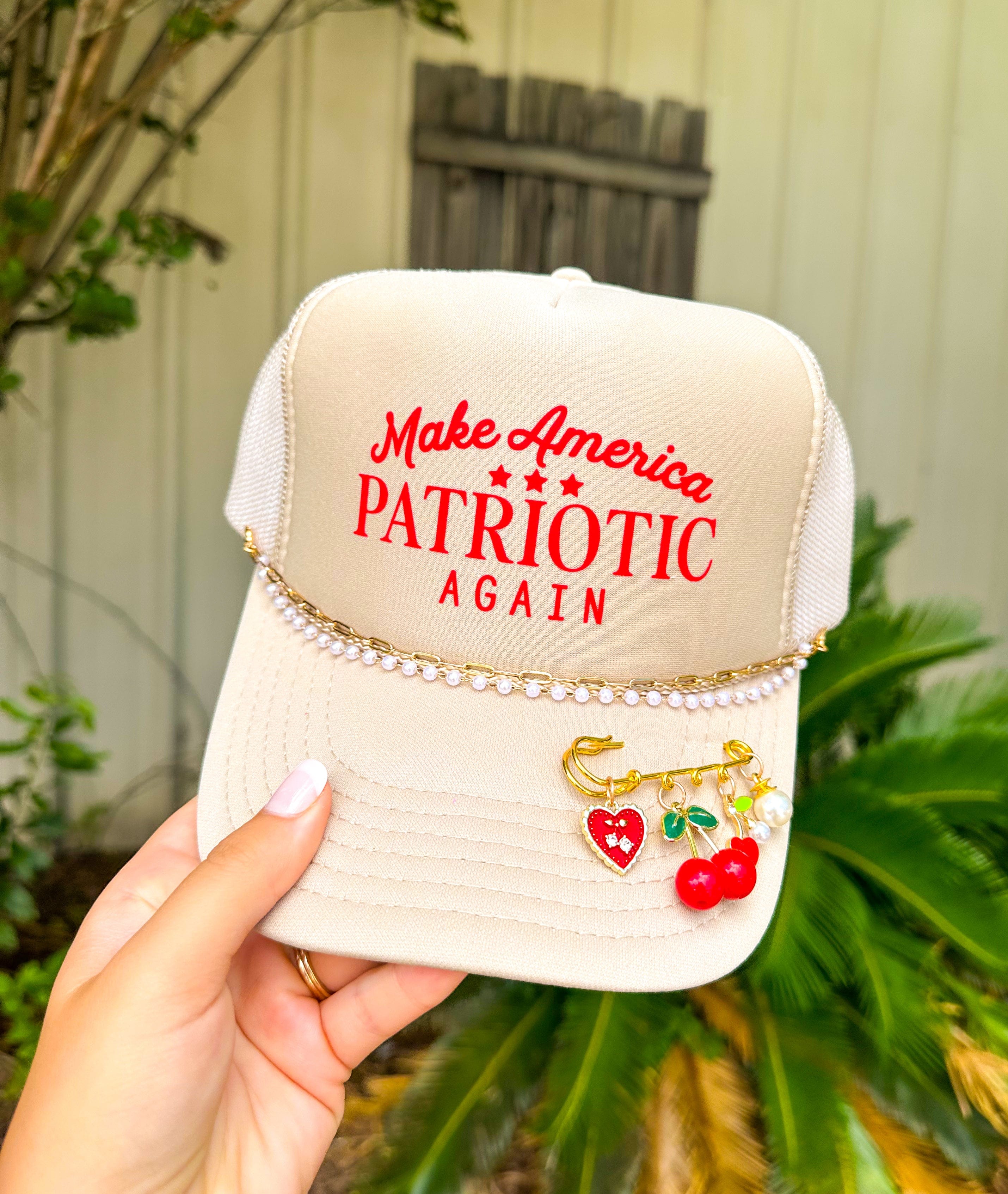 Make America Patriotic Again (With chain and Pin) Tan Trucker Hat