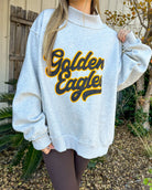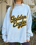 Flip your style with the Golden Eagles Reversible Mock Sweater—a bold piece that works double duty. Wear it one way for classic collegiate pride, flip it for a fresh take on game day. The lightweight mock neck keeps things sharp without the bulk, while soft grey fabric moves with you through tailgates, campus walks, and everything in between. Reversible versatility meets fearless fandom.