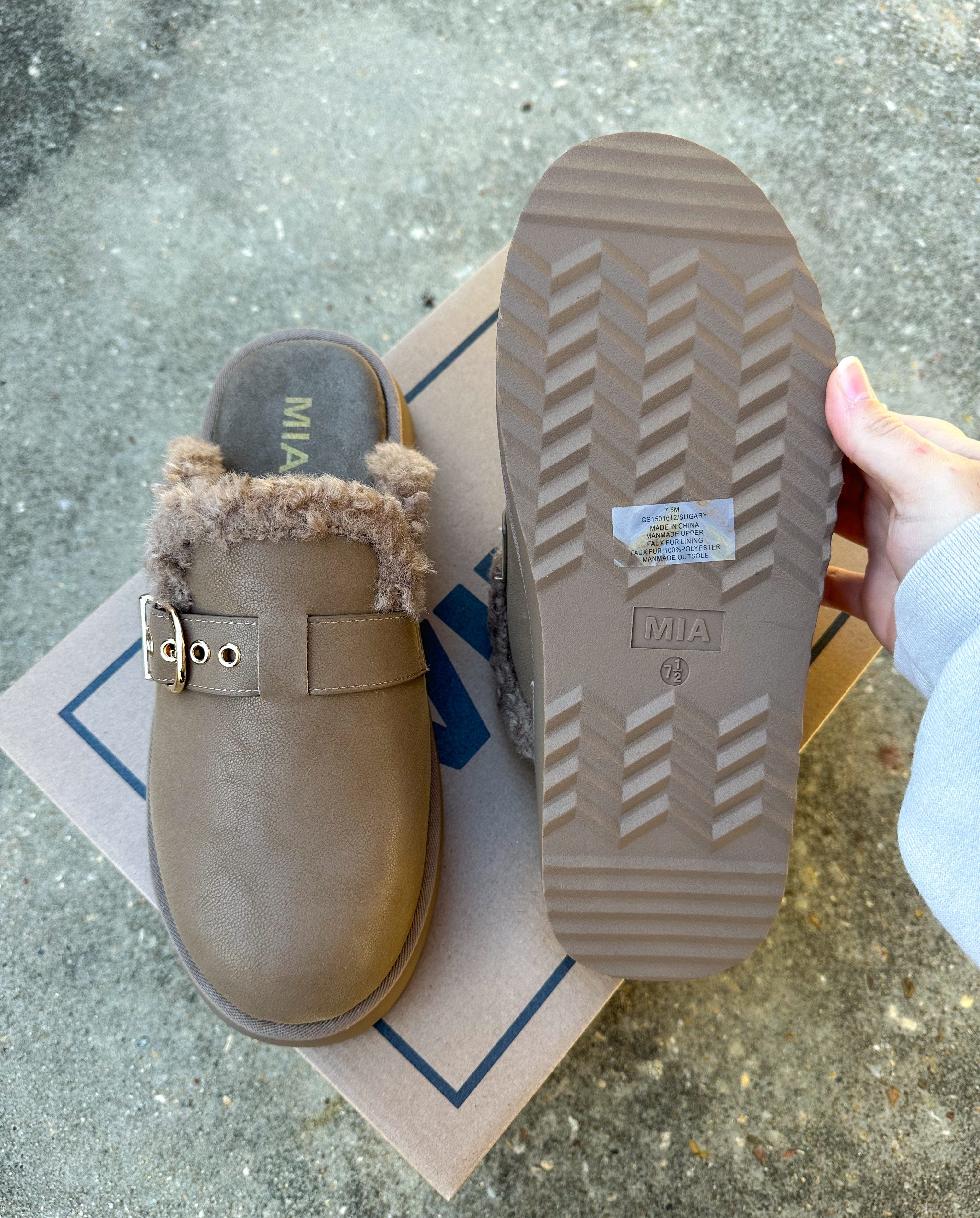 Whether you're lounging on a lazy weekend or winding down after a long day, these faux shearling mule slippers add a cozy touch to your comfort routine. Slip into the plush lining and step across the house with ease, enjoying soft support and effortless style every time you wear them. From MIA.