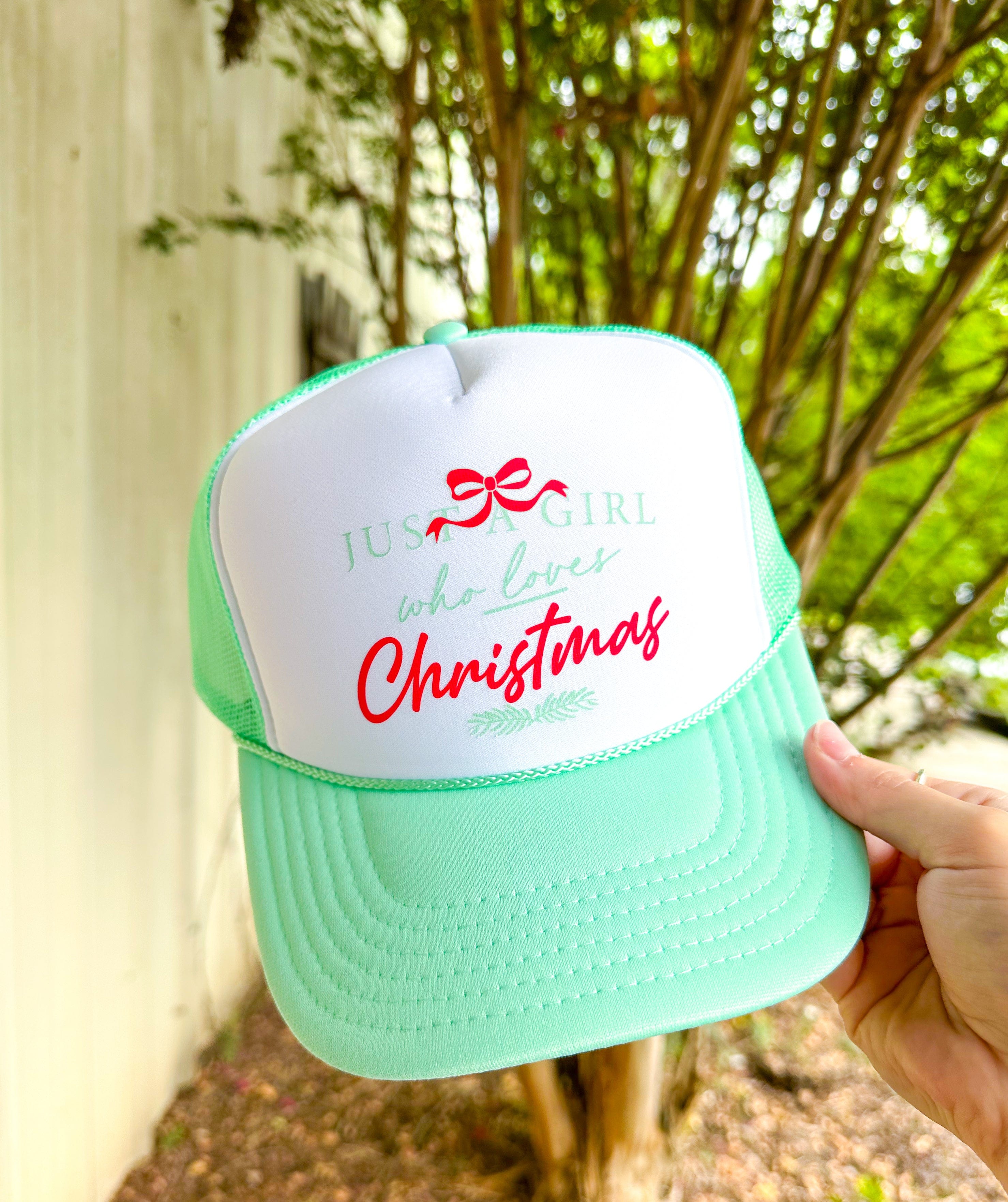 Just A Girl Who Loves Christmas White/Seafoam Trucker
