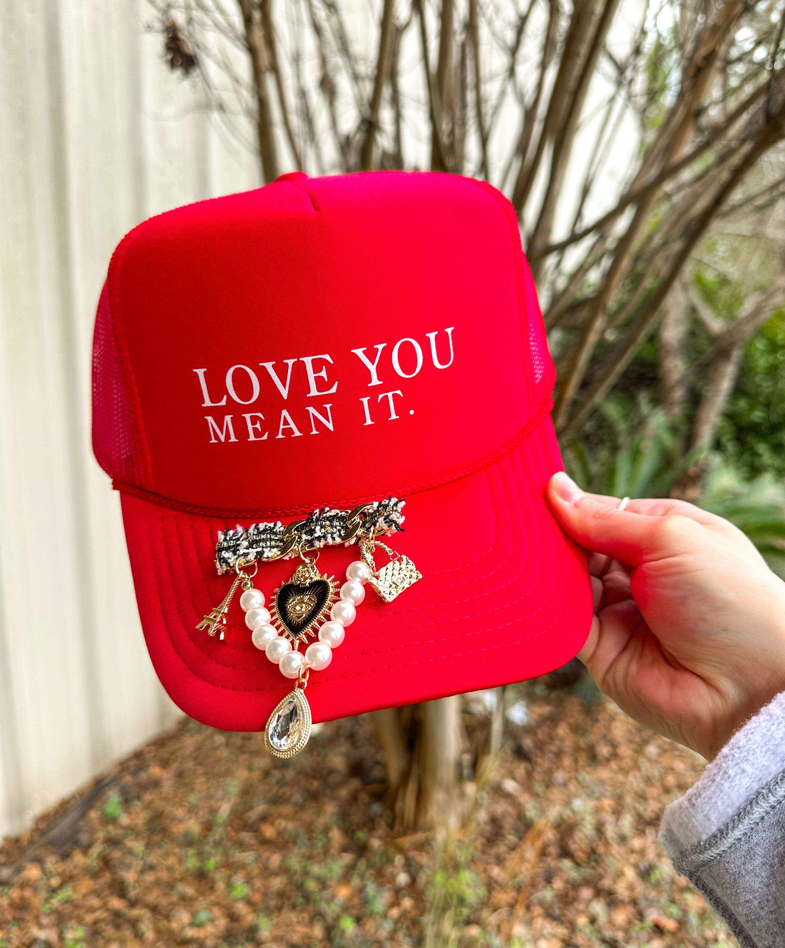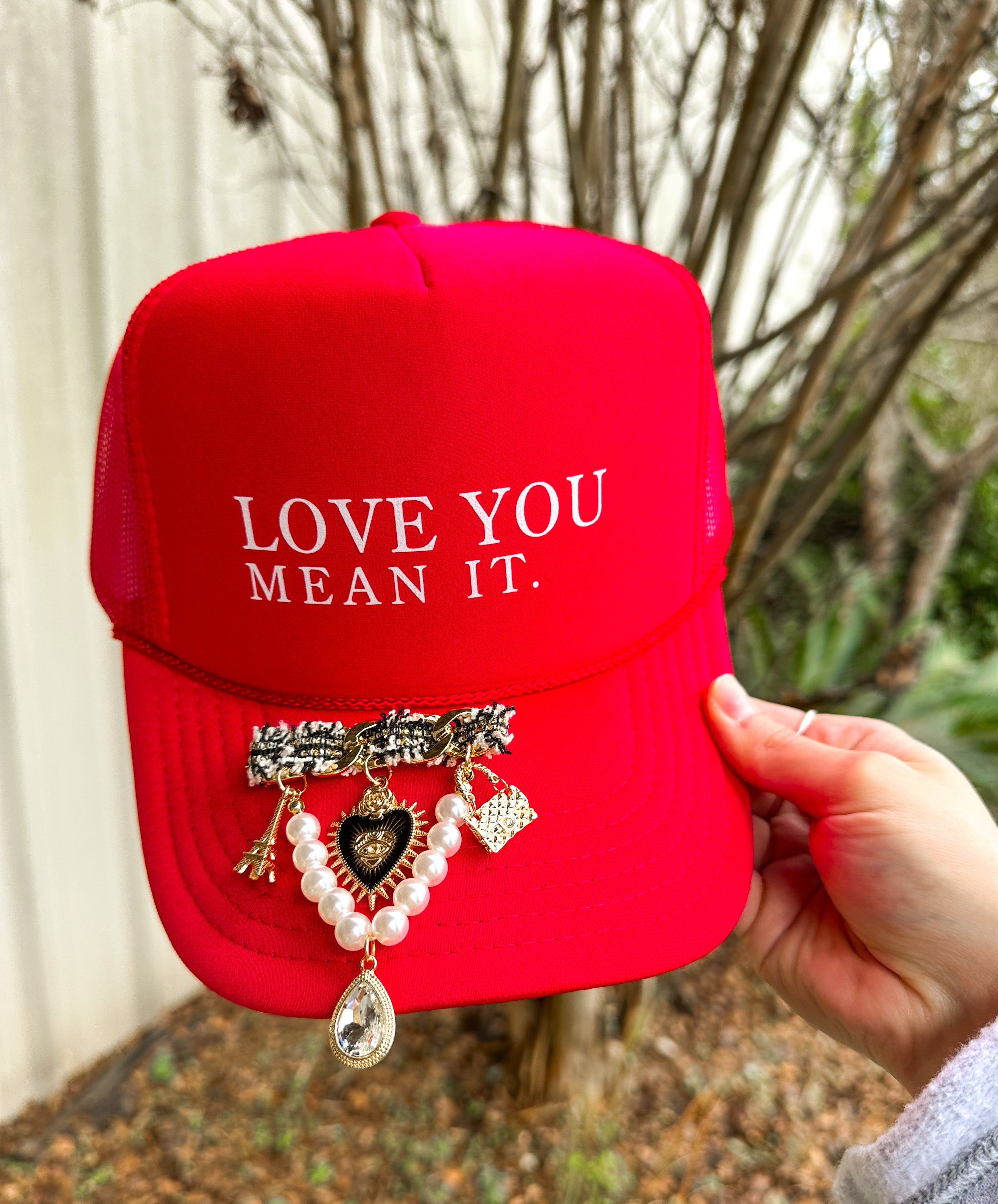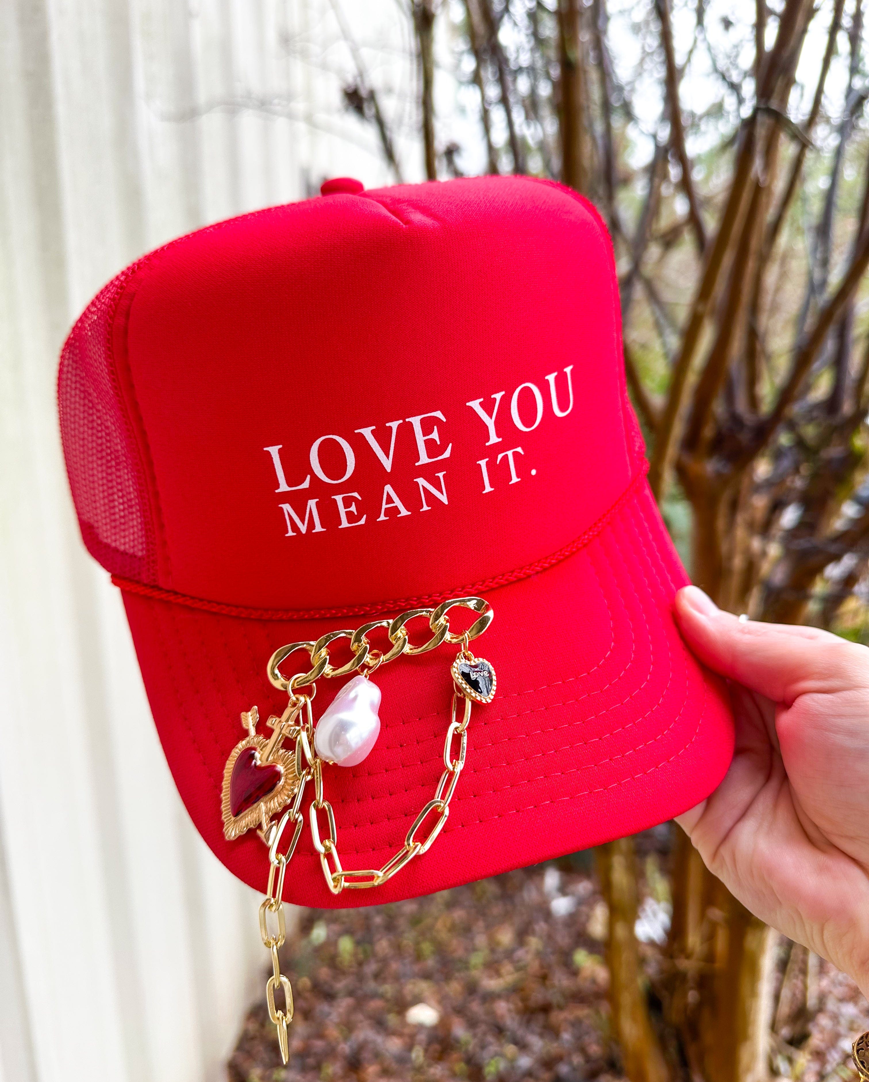 Love You Mean It With CHARM Pin Red Trucker