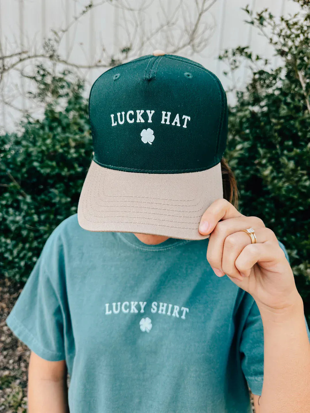 Lucky Hat Tan/Dark Green Canvas Trucker