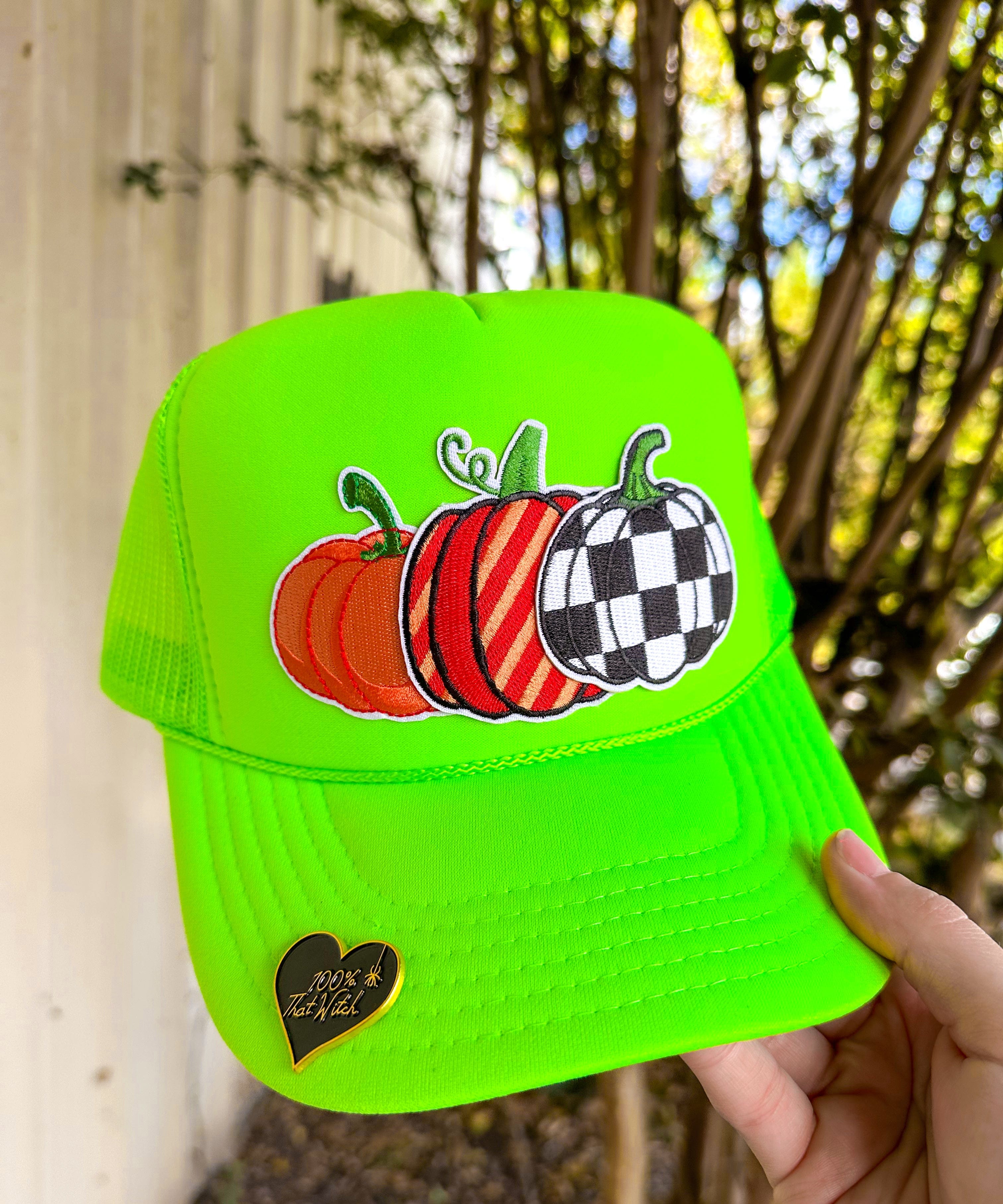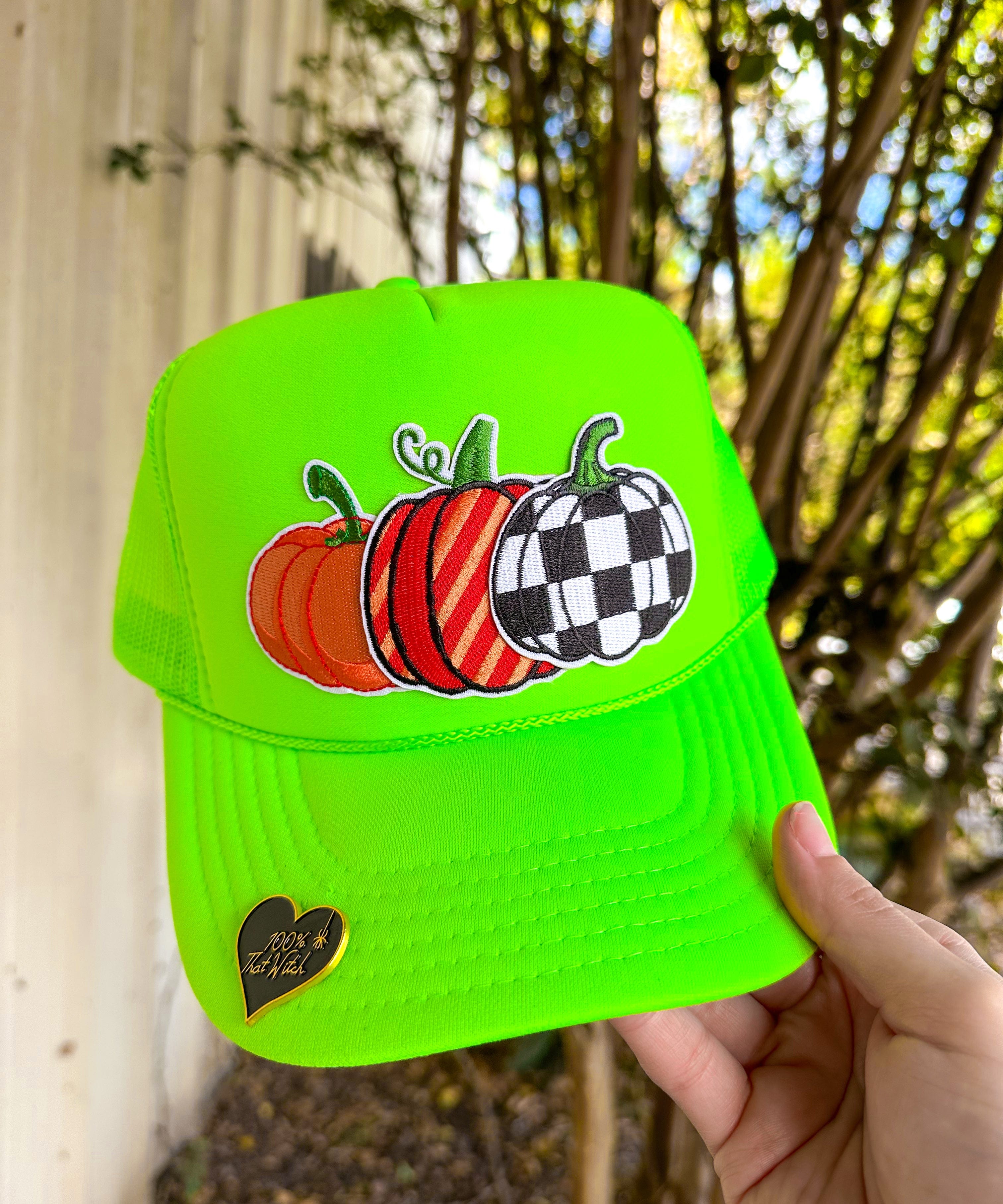 Pumpkin Patch With Pin Neon Green Trucker