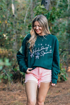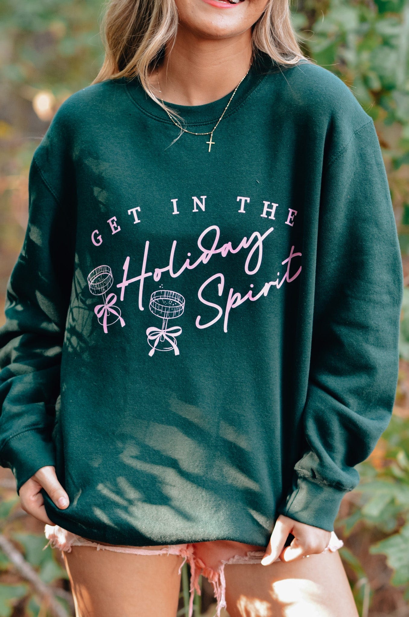 Sip, sparkle, and get in the holiday spirit with this festive sweatshirt! Featuring a rich evergreen base with playful pink lettering and martini glass accents, it’s the perfect mix of cozy and fun for the season. Whether you’re sipping cocktails by the fire, headed to a Christmas party, or just spreading cheer, this sweatshirt keeps you stylish and comfy all season long.