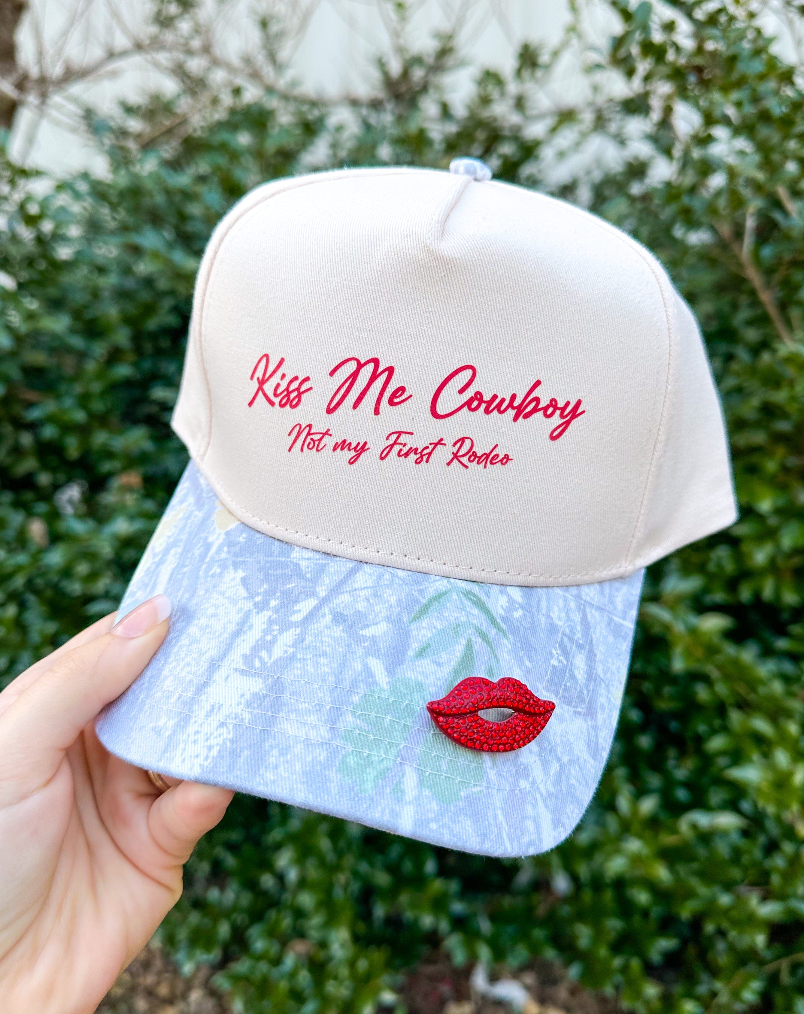 Kiss Me Cowboy Cream/Camo Canvas Trucker