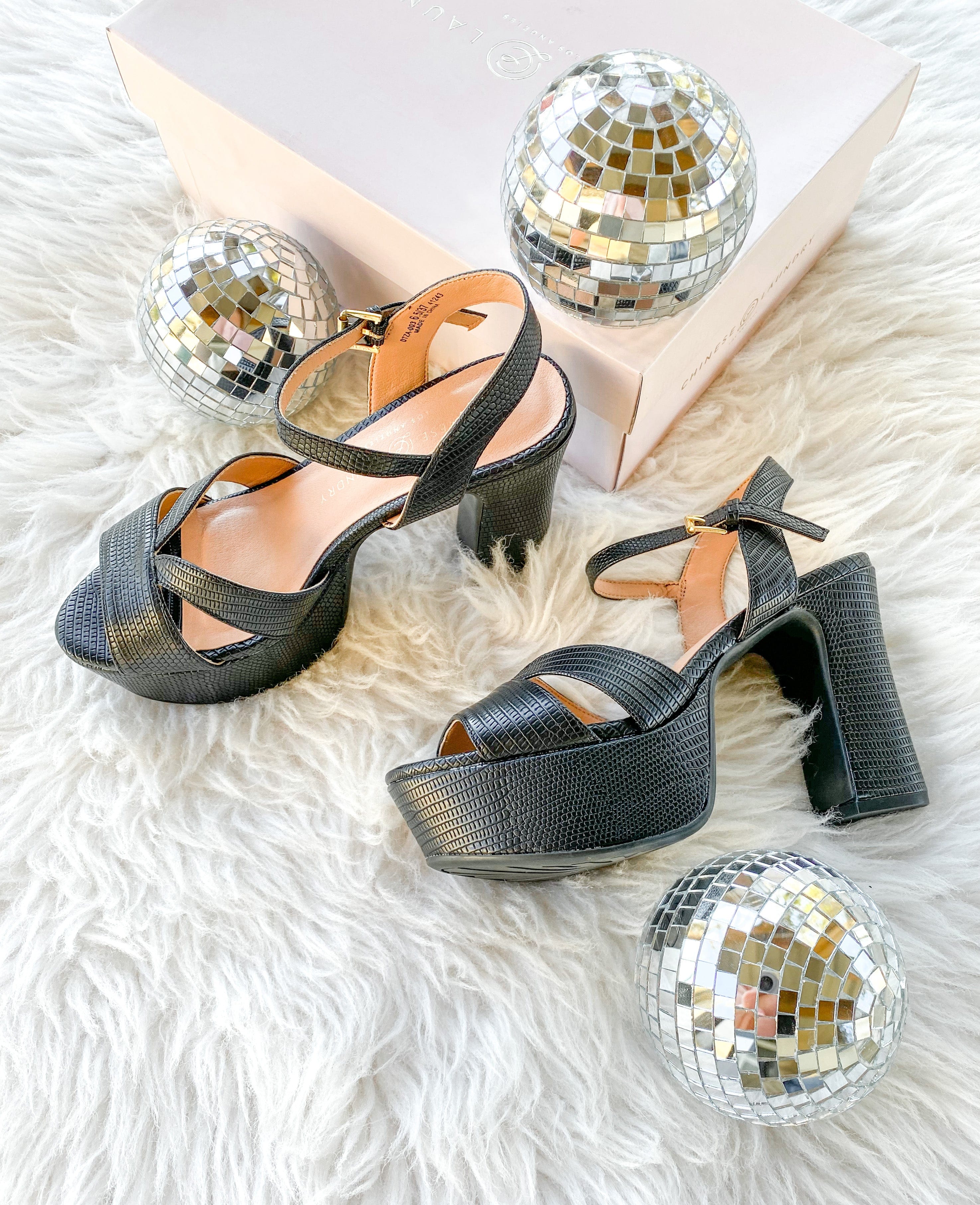 Introducing the iconic block-heeled silhouette, our Daydreamer sandals are crafted from an exotic textured print and feature a thin adjustable buckle closure. You’ll especially love the bold front straps that keep this pair feeling empowered and timeless. By Chinese Laundry. Manmade materials. 4" heel, 1.5" platform.