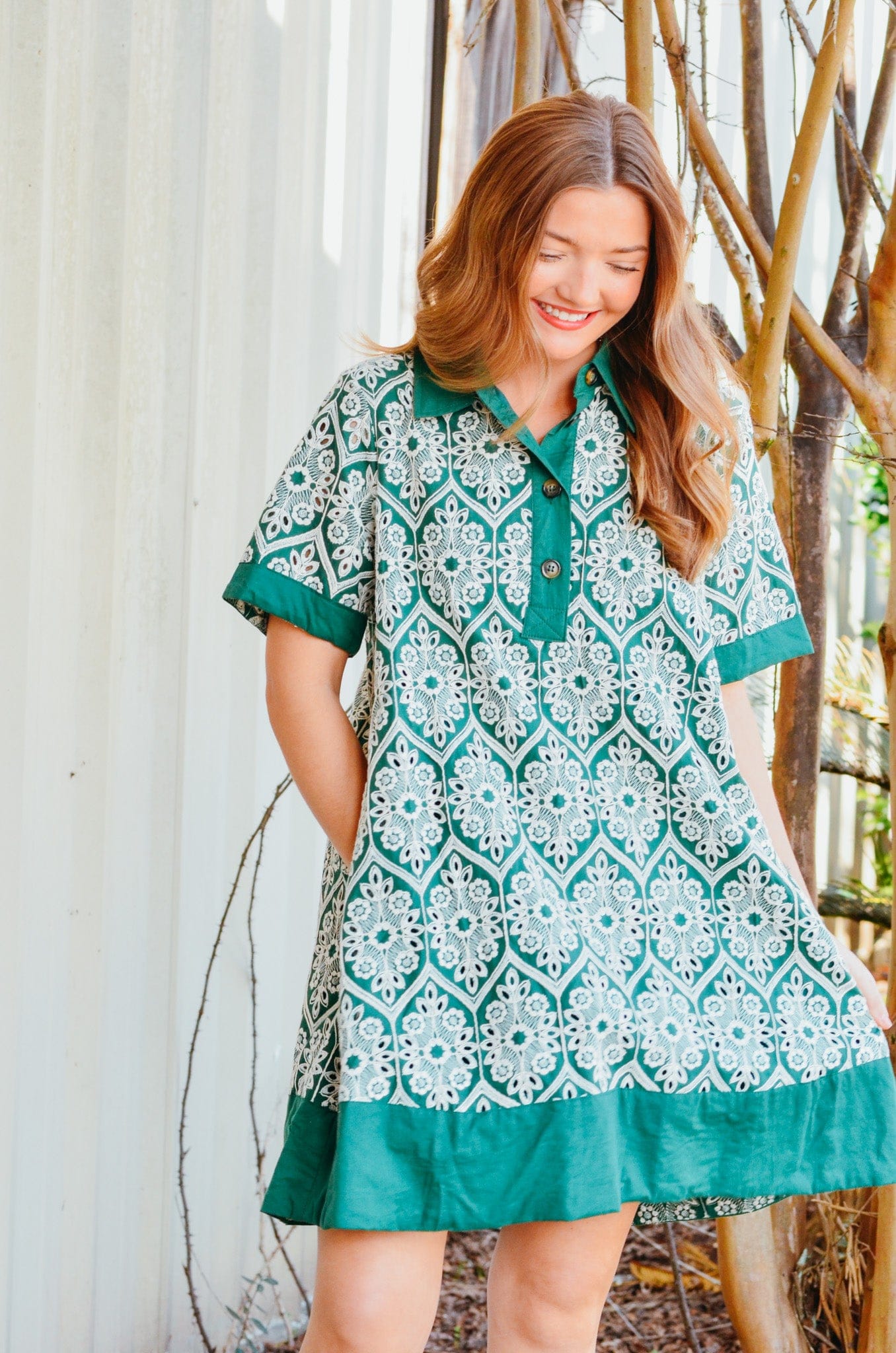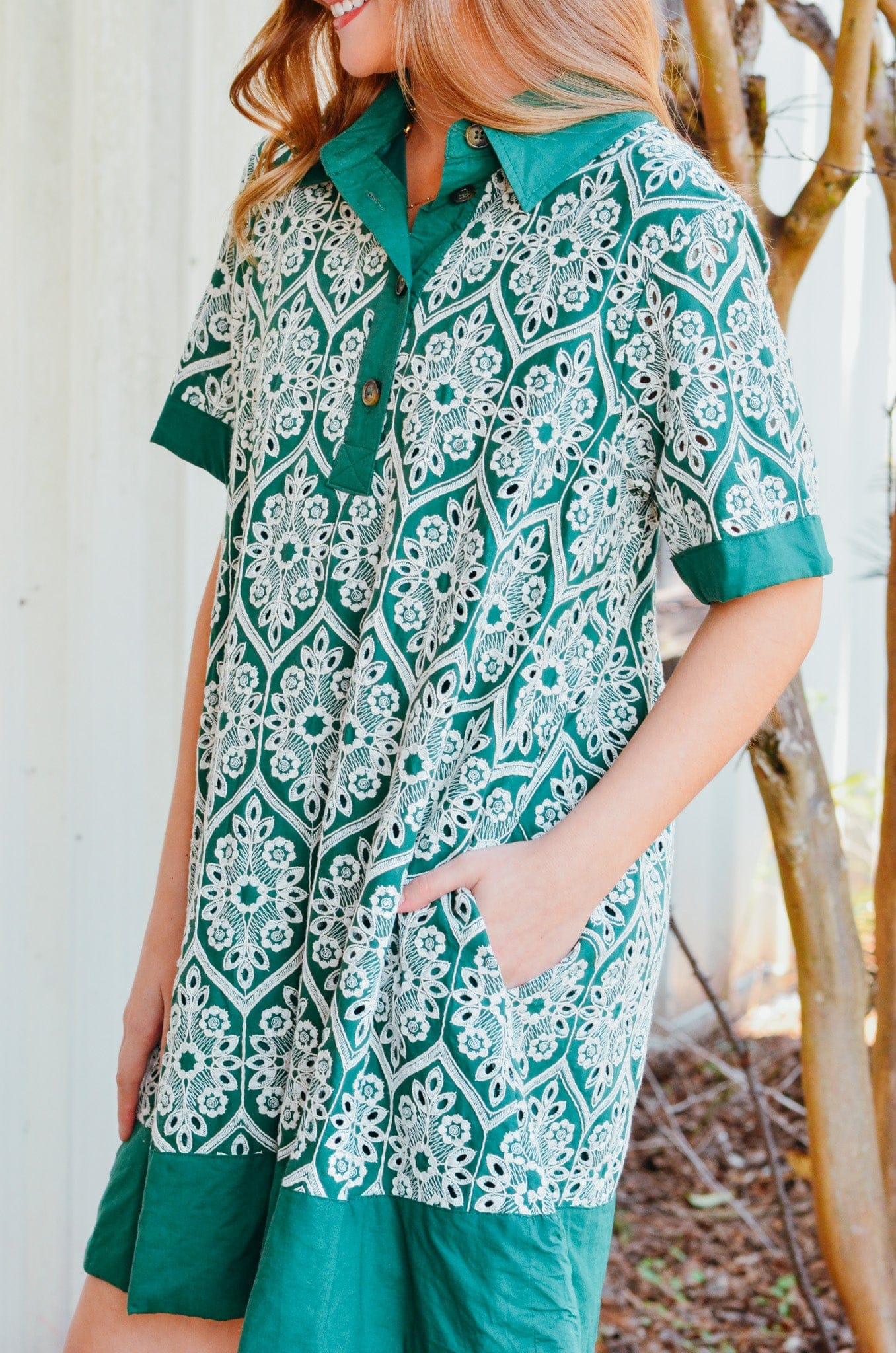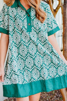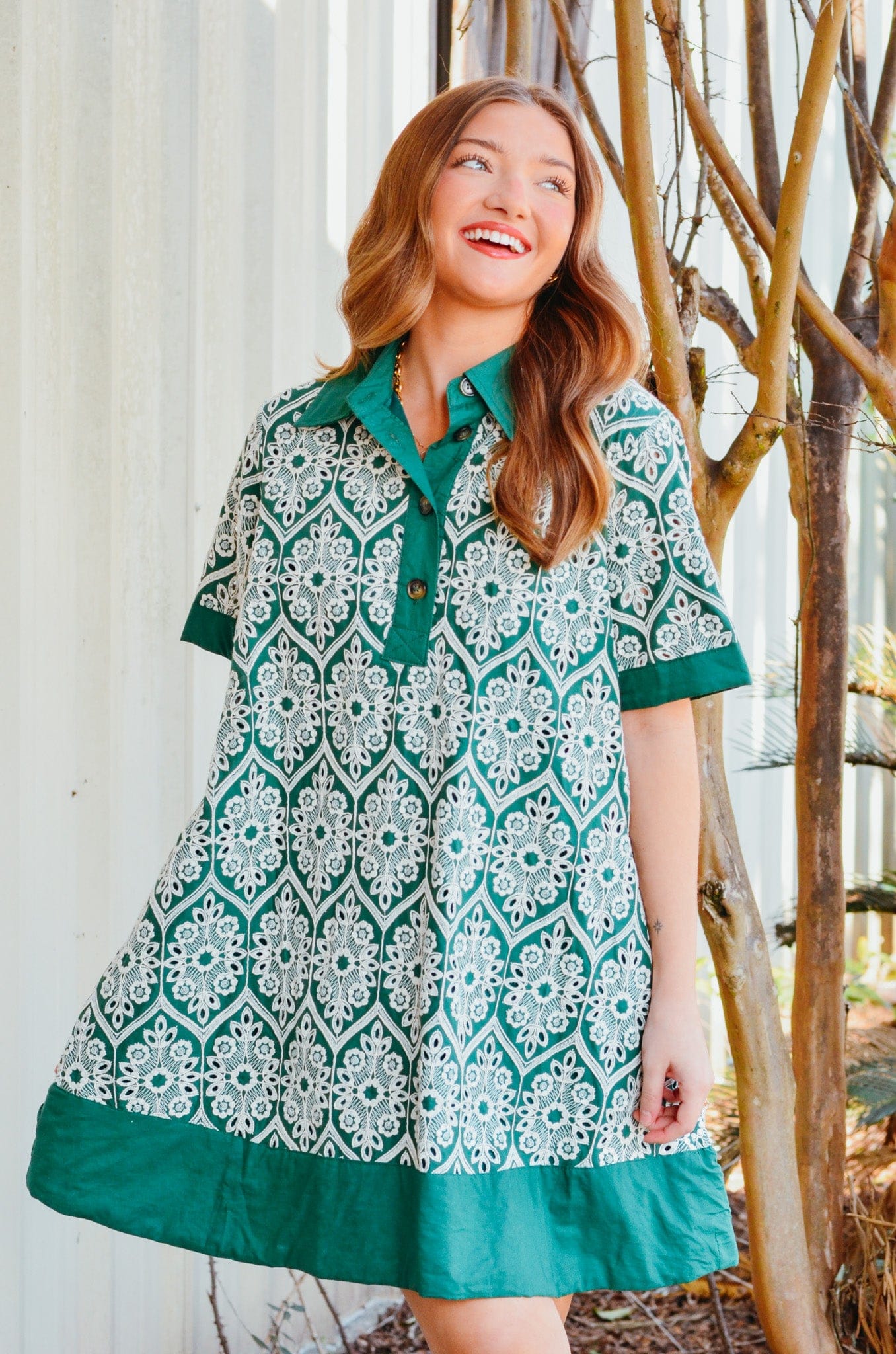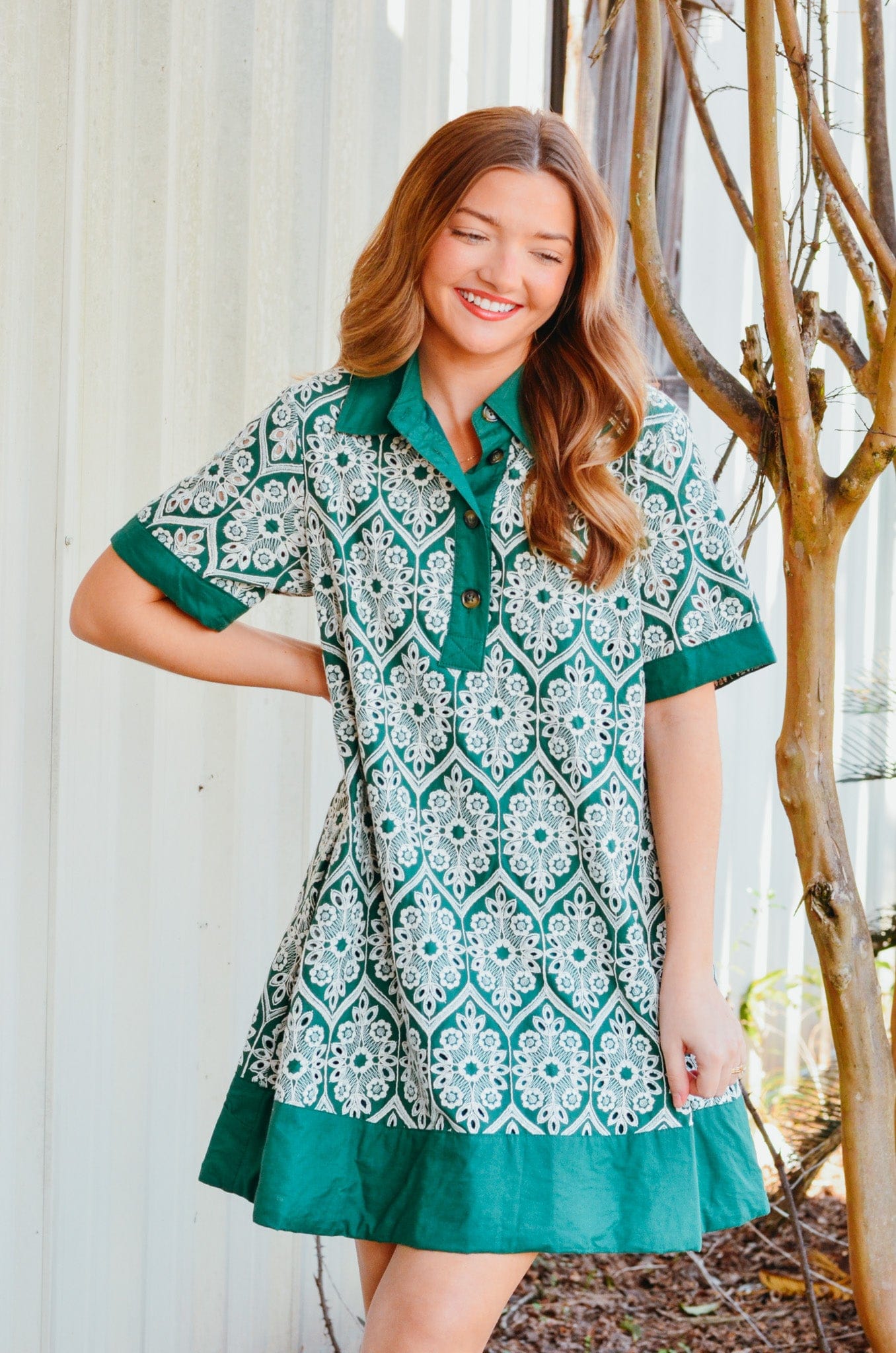 Eden Green & White Embroidered Dress