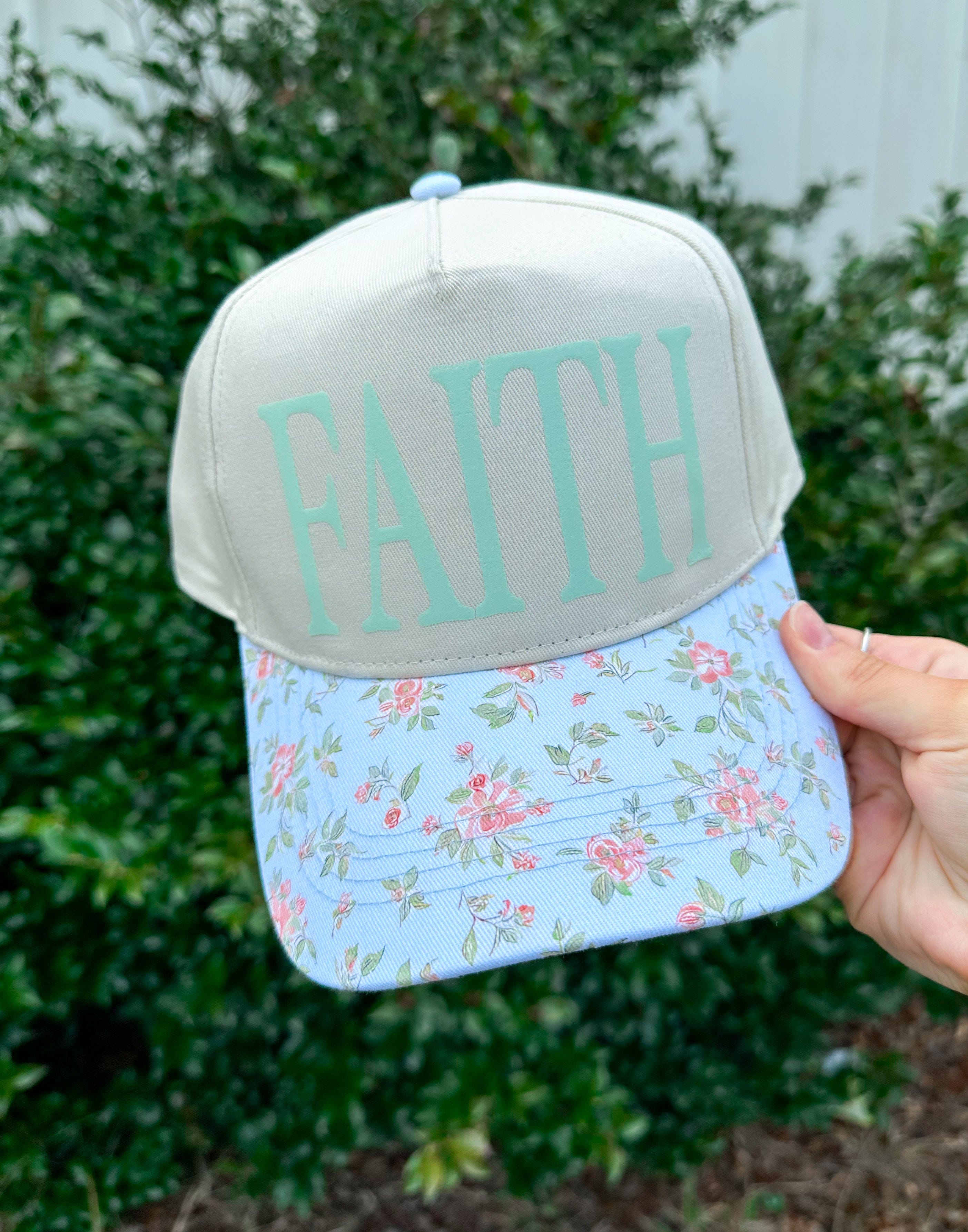 FAITH Cream & Floral Peach Trucker