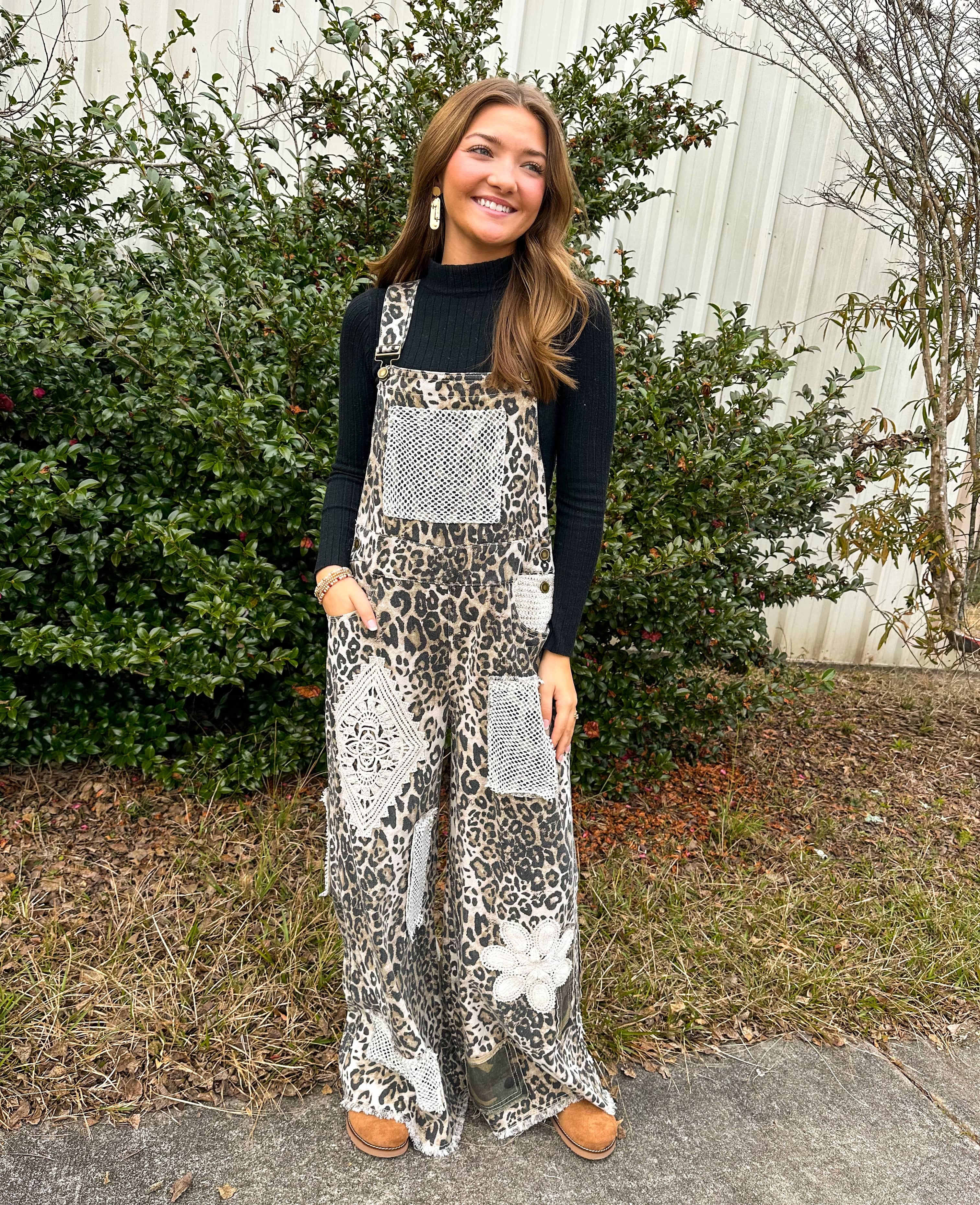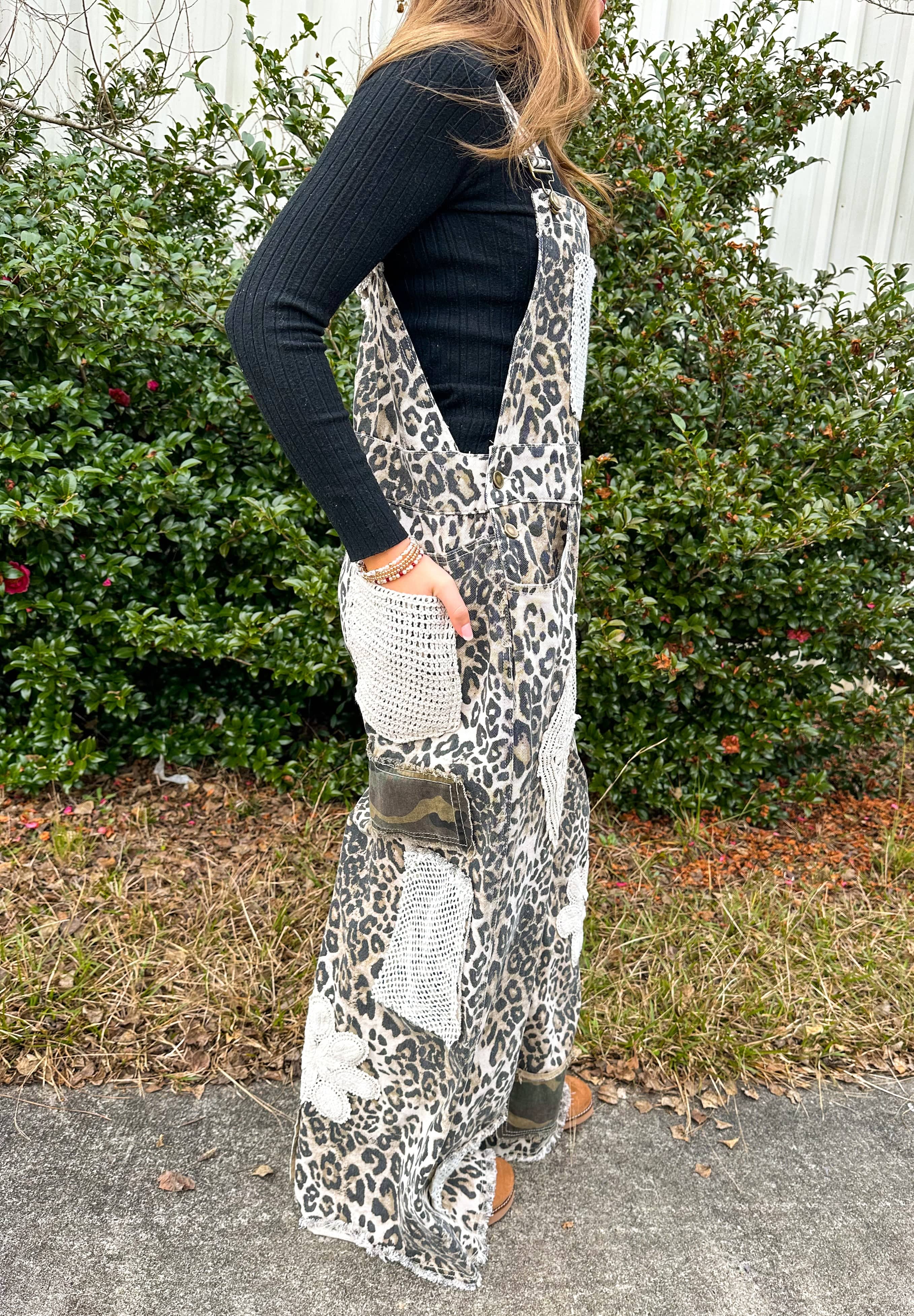 Floral, Camo, and Leopard Crochet Patch Overalls