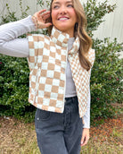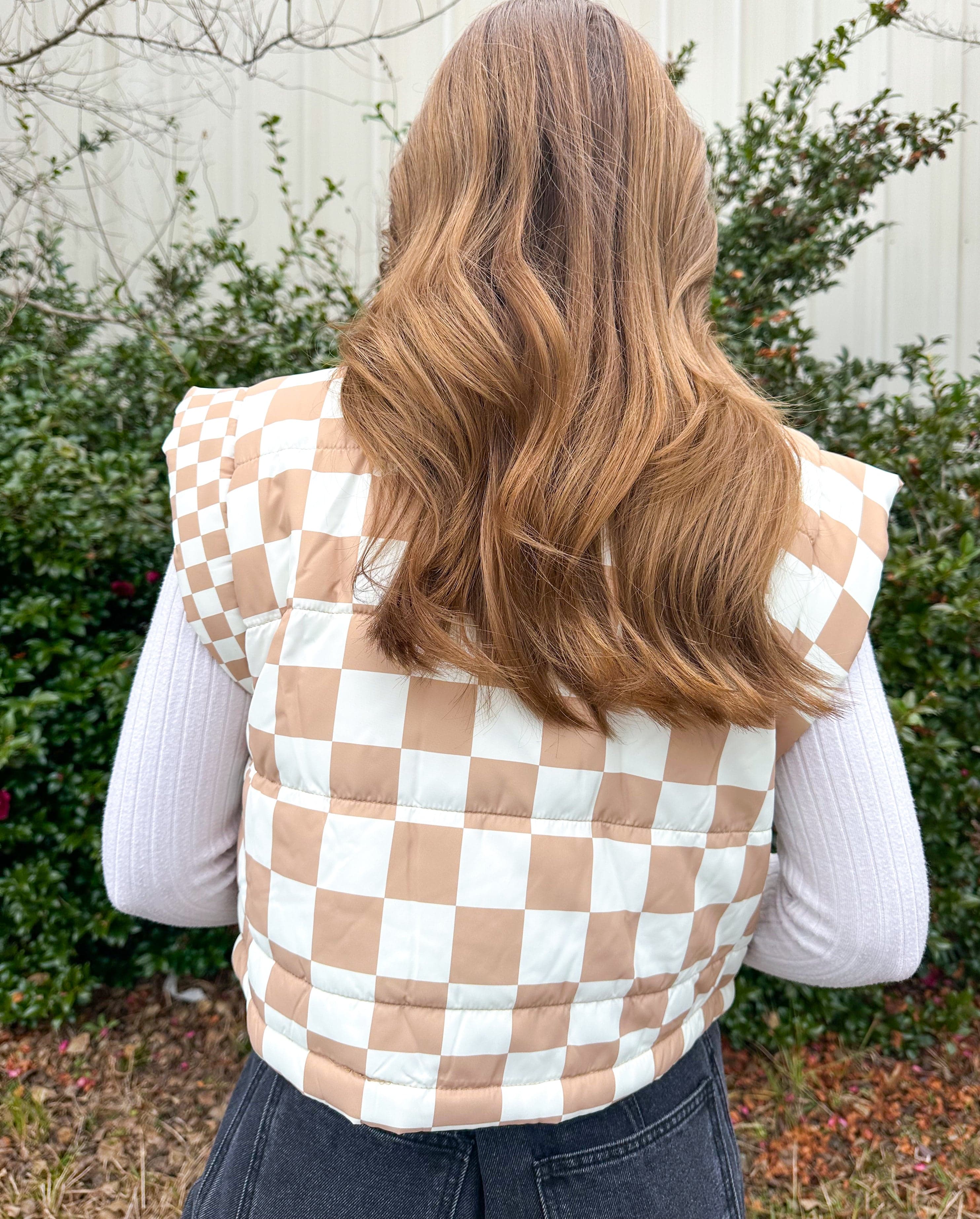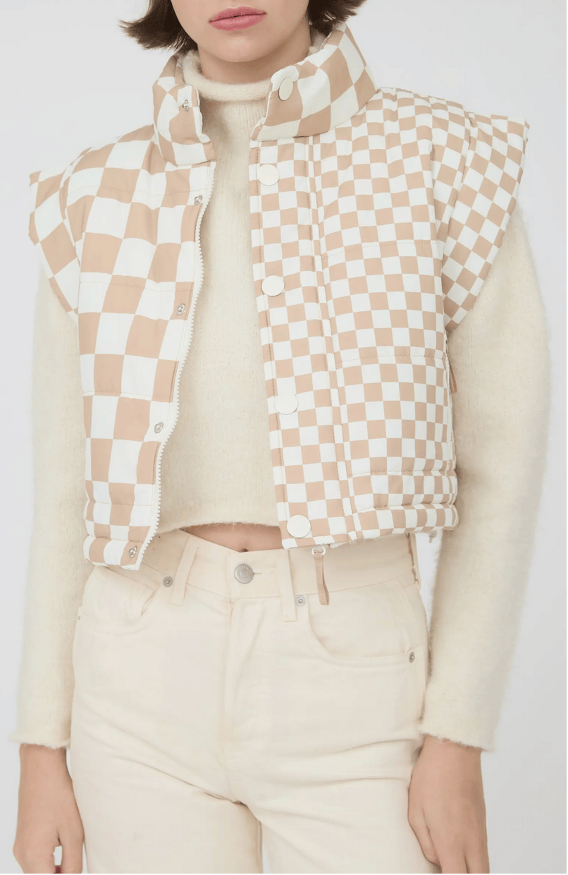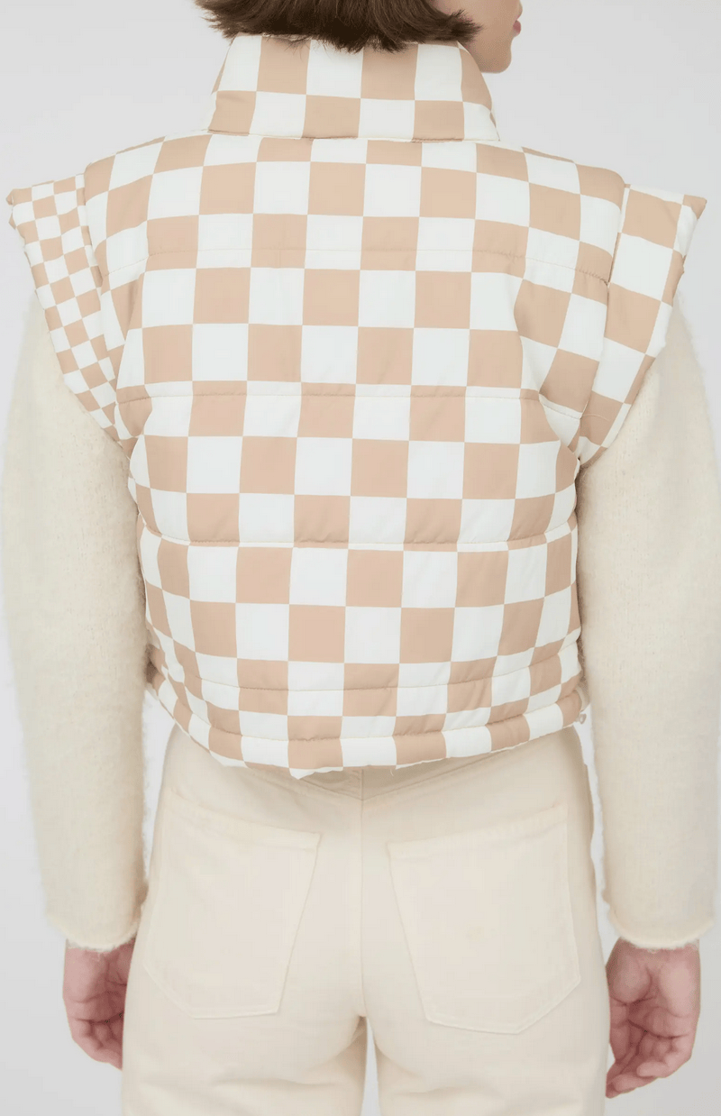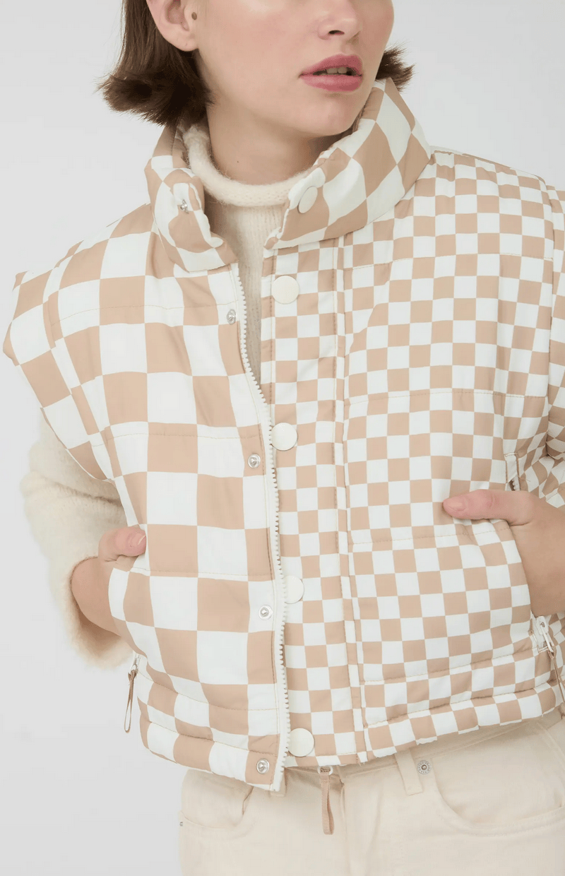 Isabel Checkered Ivory Puffer Vest