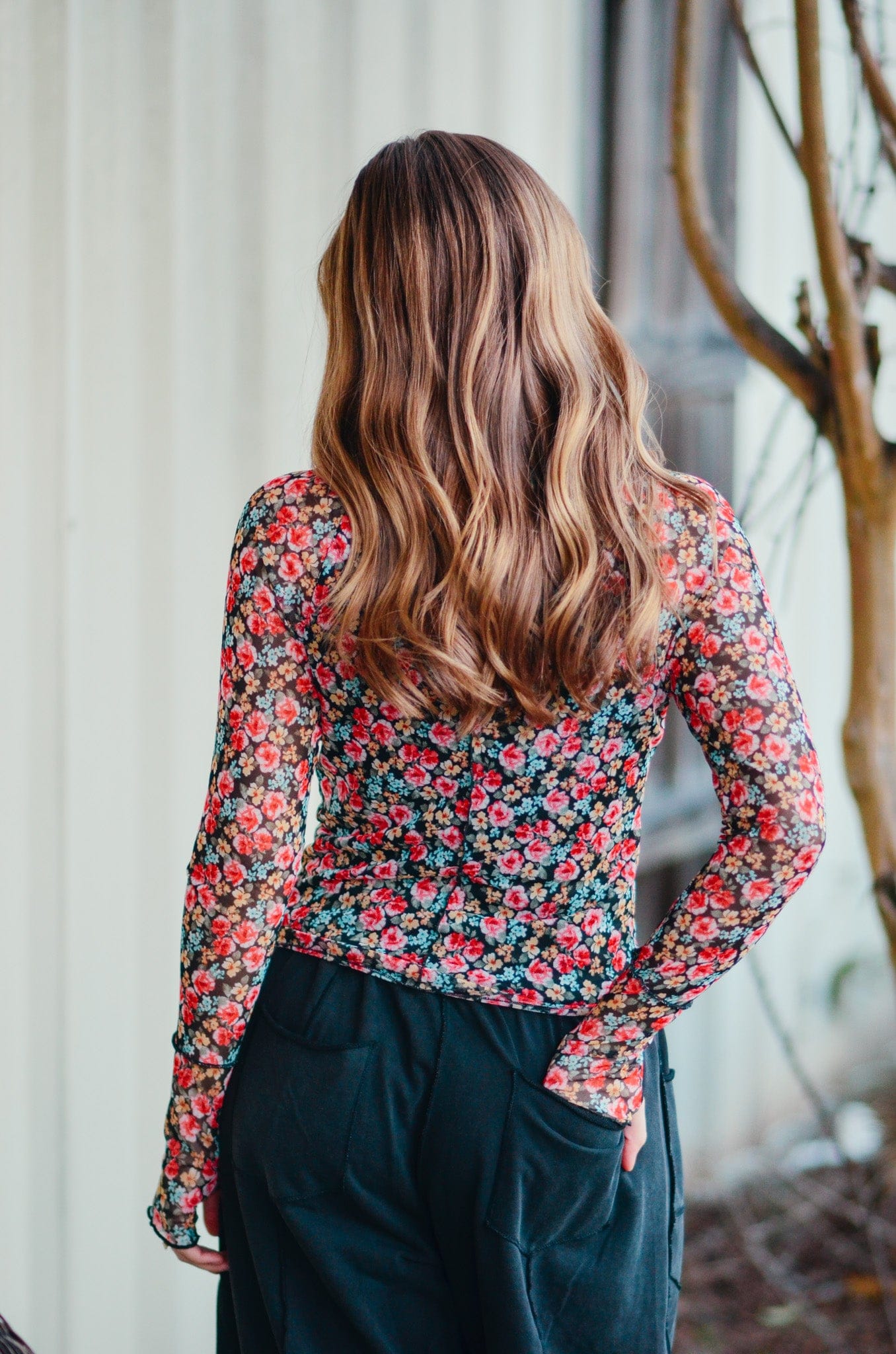 Jane Floral Mesh Long Sleeve Top
