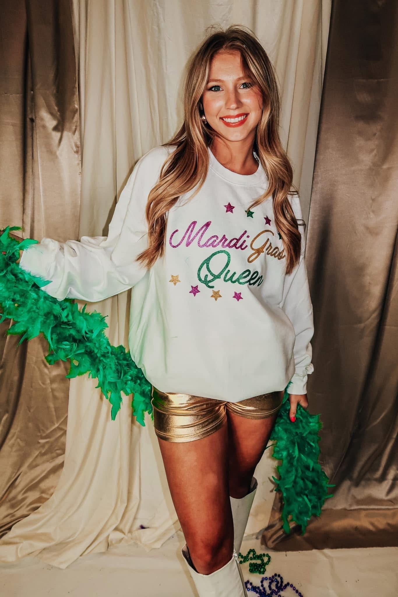 Mardi Gras Queen White Sweatshirt