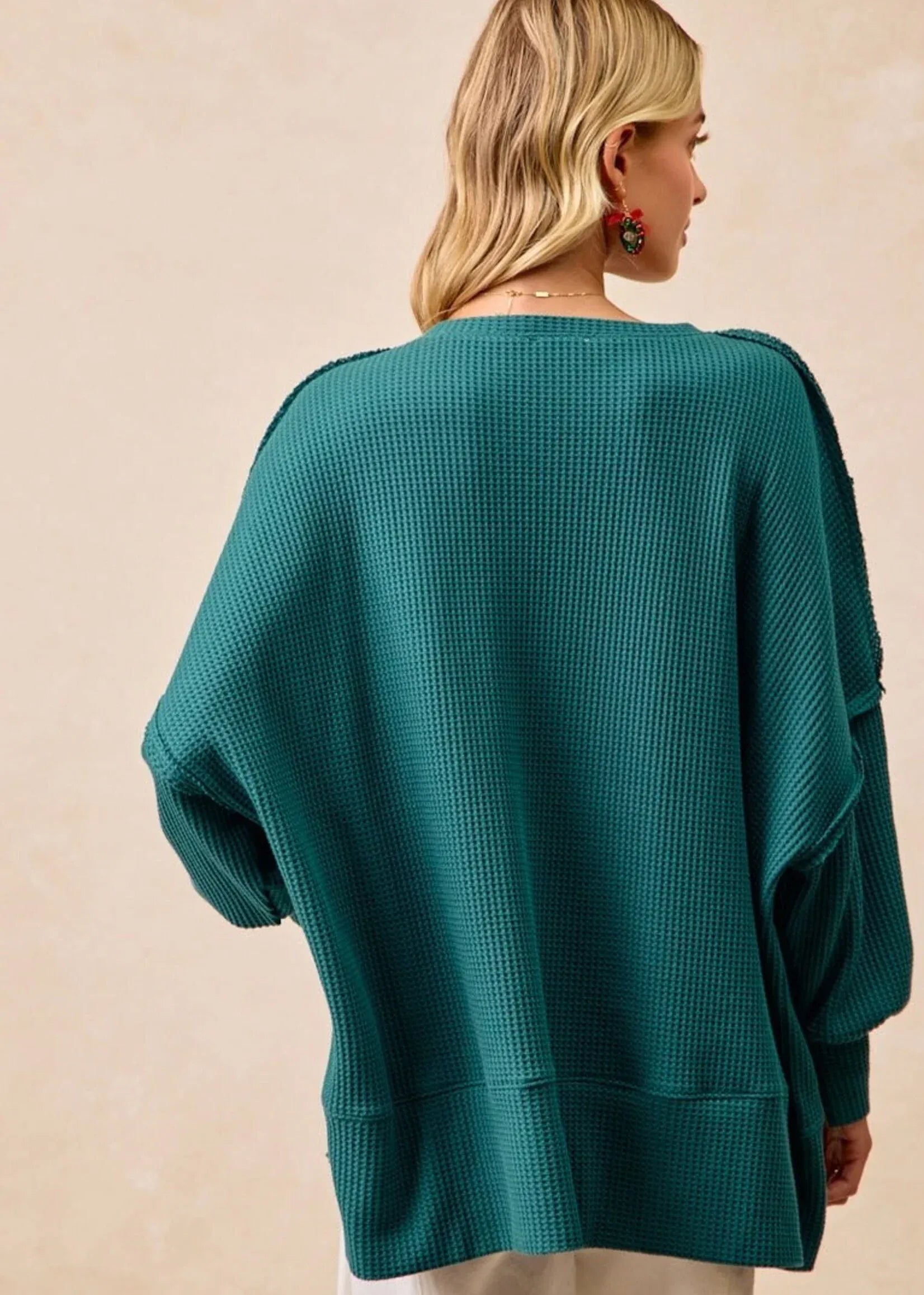 Fit | Feel | Stretch: Oversized, Size Down One | Waffle Knit | Very Stretchy.