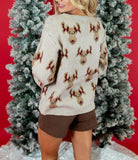 Cozy and colorful, it features a charming reindeer design that's sure to bring smiles and festive cheer. Perfect for holiday parties or cozy nights by the fire, this sweater adds a fun, whimsical touch to your seasonal wardrobe. Stay warm and merry all winter long!
