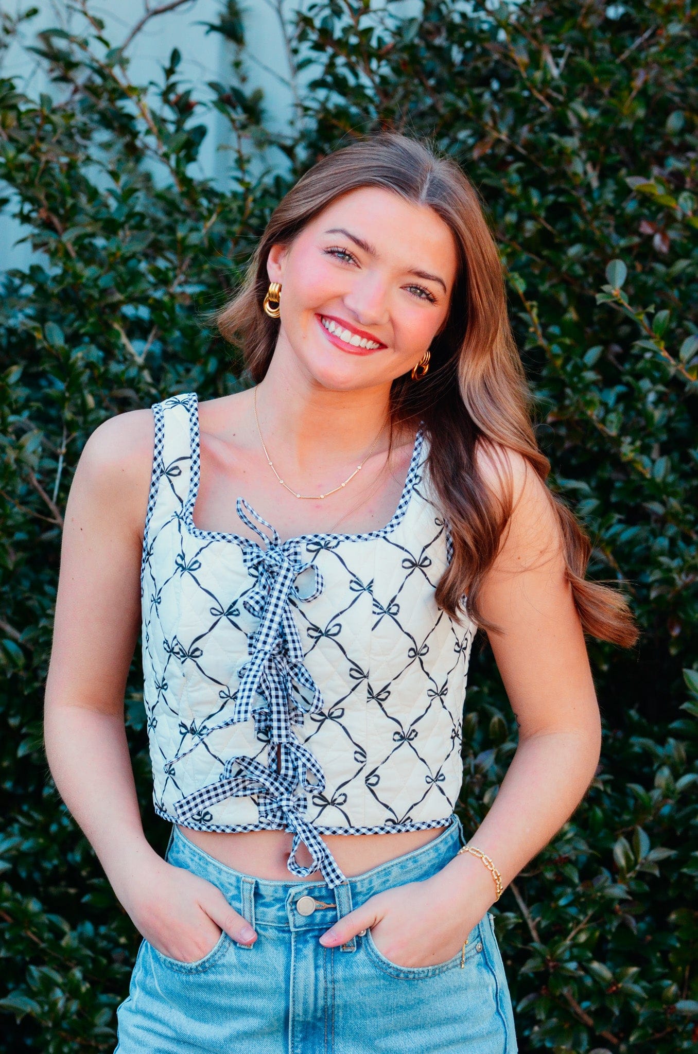Rosie Ribbon Printed Front Tie Crop Quilt Top