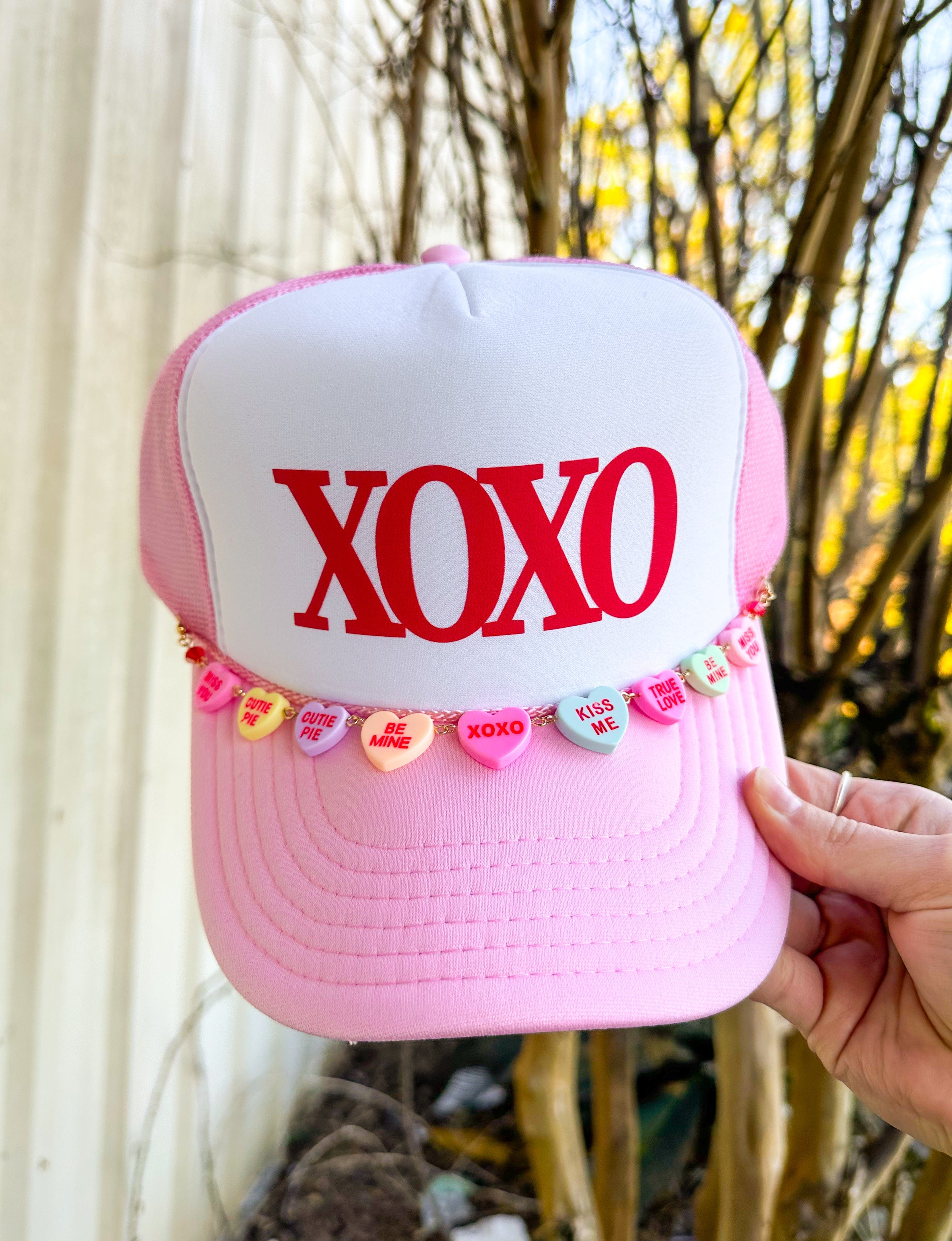 XOXO With Charm Chain White/Light Pink Trucker