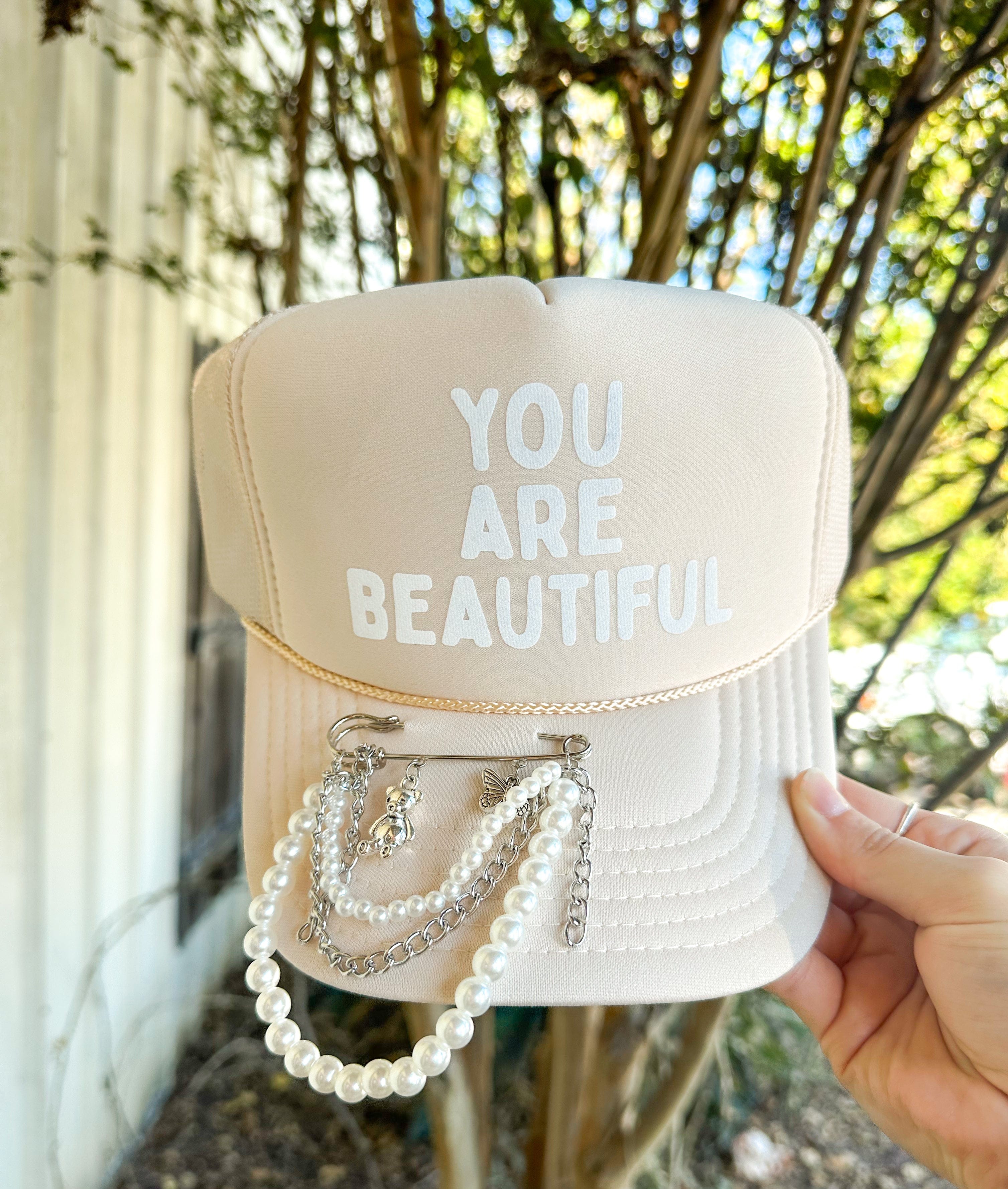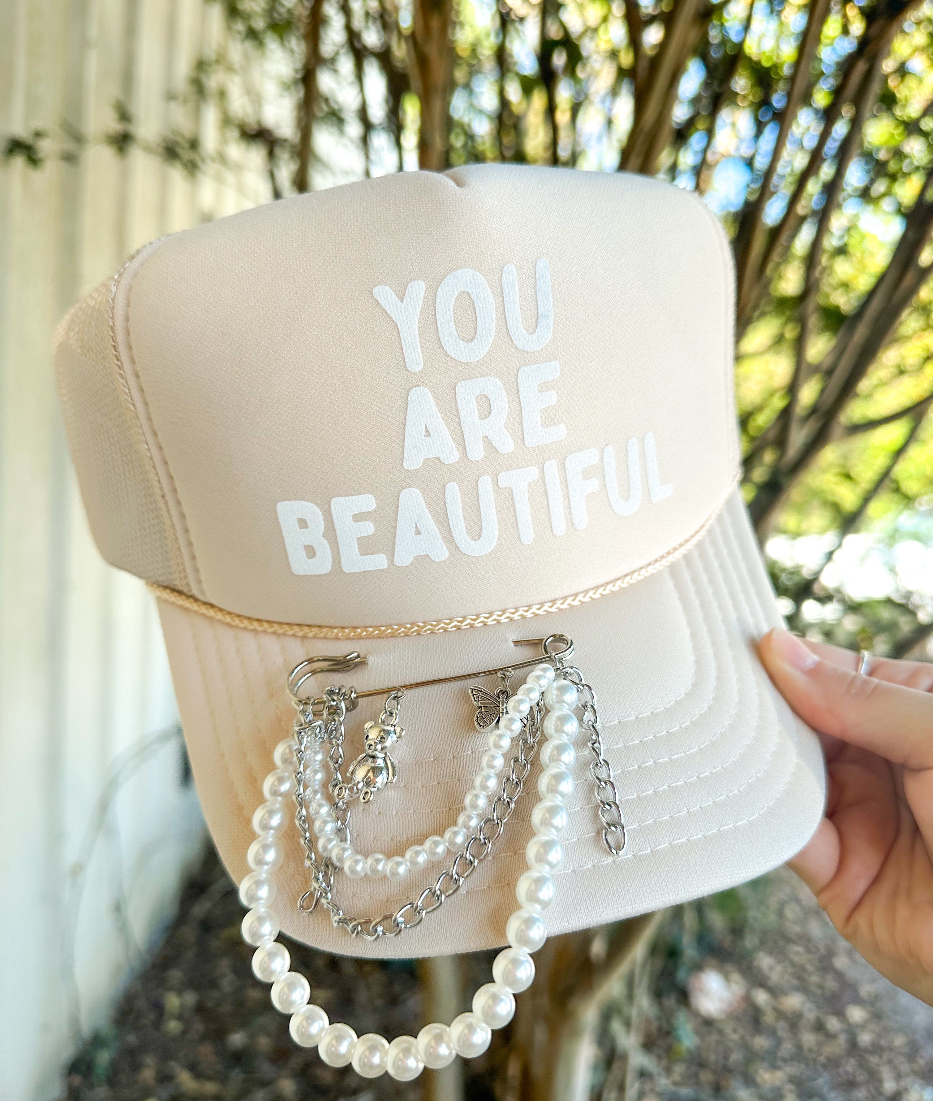 You Are Beautiful With Pearl Charm Pin Cream Trucker