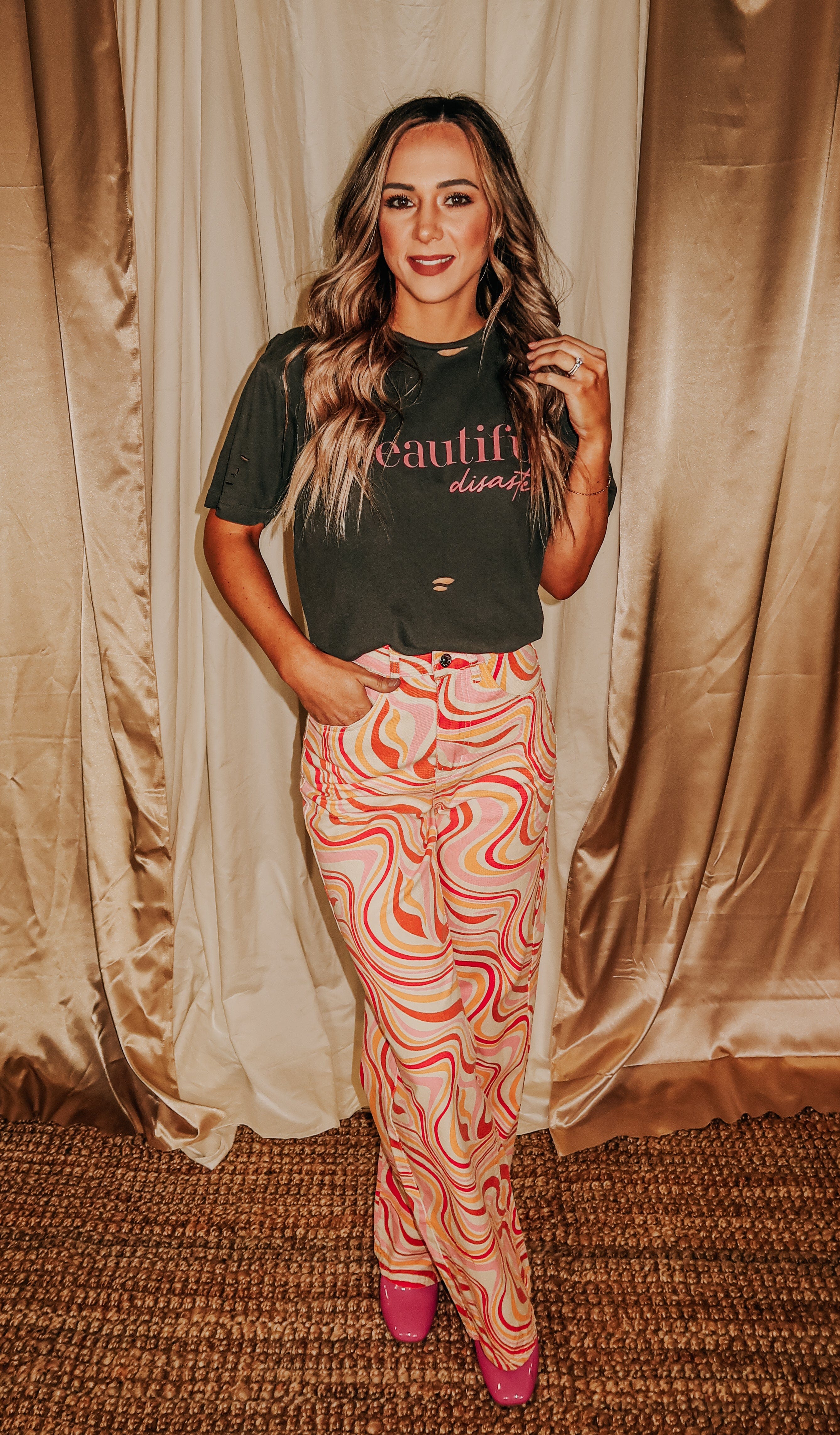 This is so fun on this cut tee! I love the grunge look on this organic cotton tee. Raise your hand if you qualify as a hot mess/beautiful disaster raise 🤚🤚