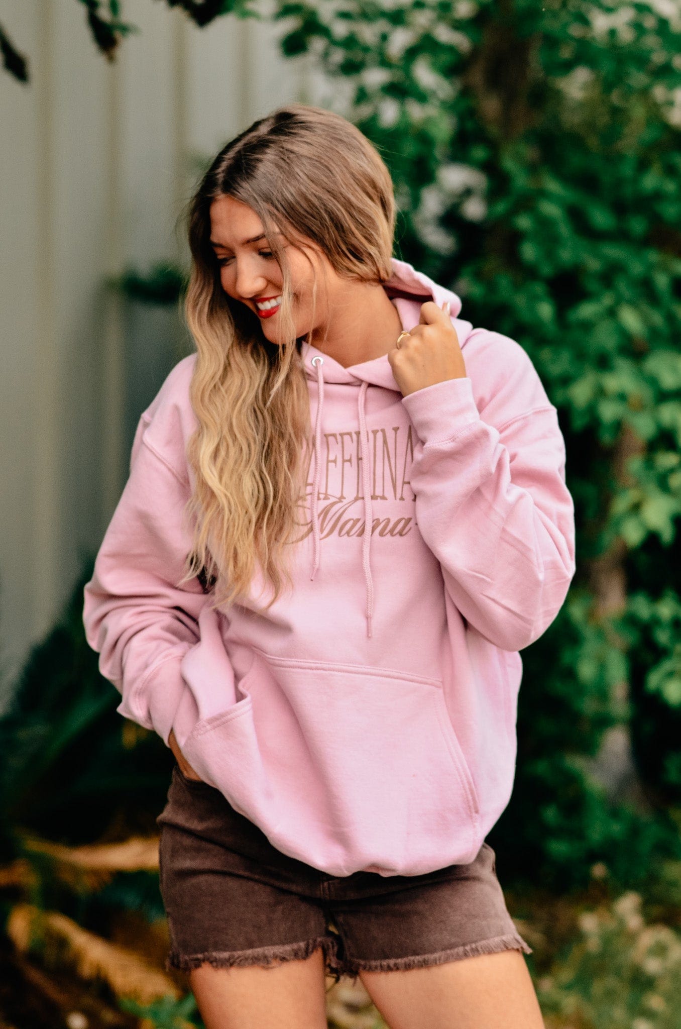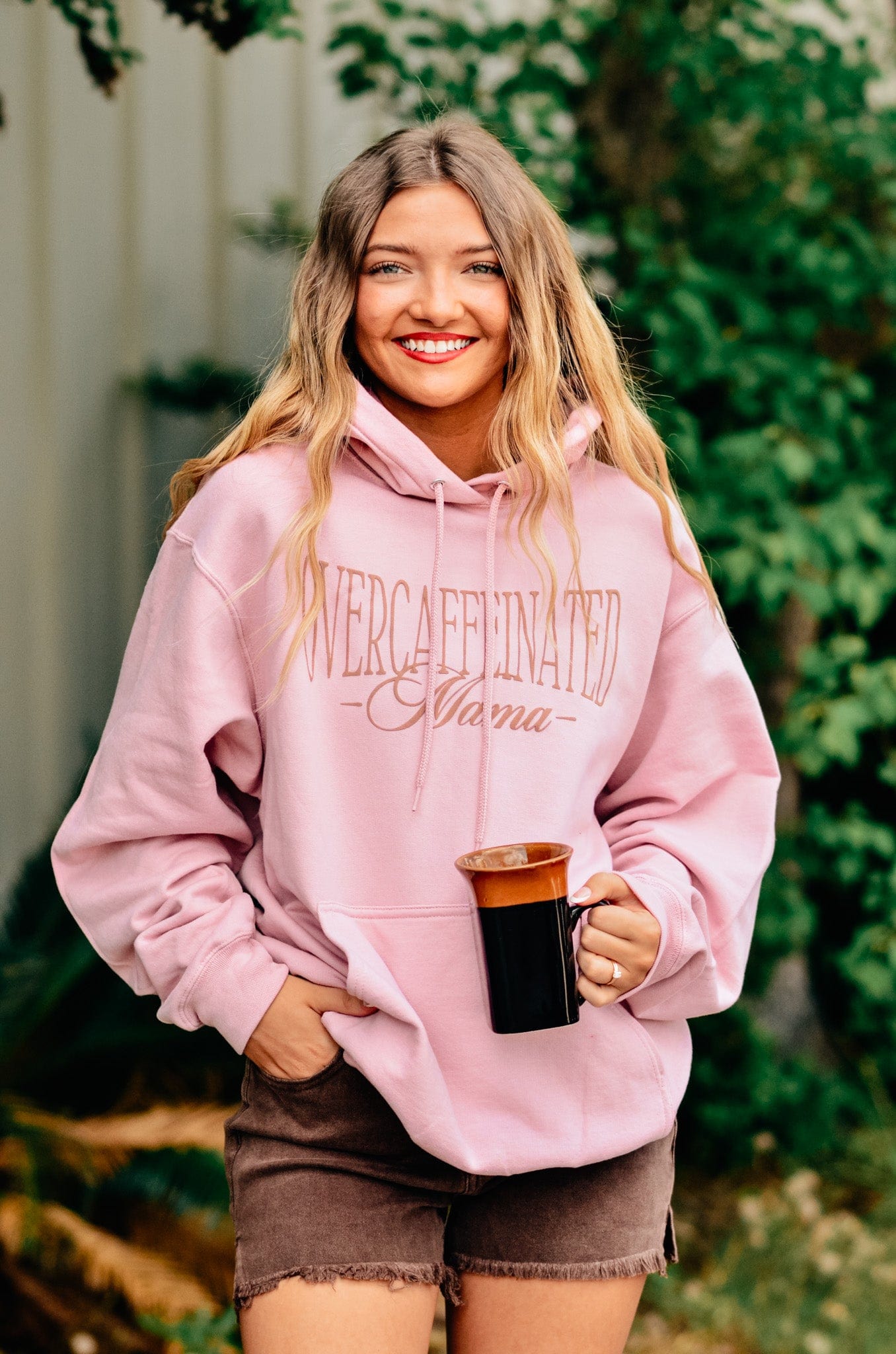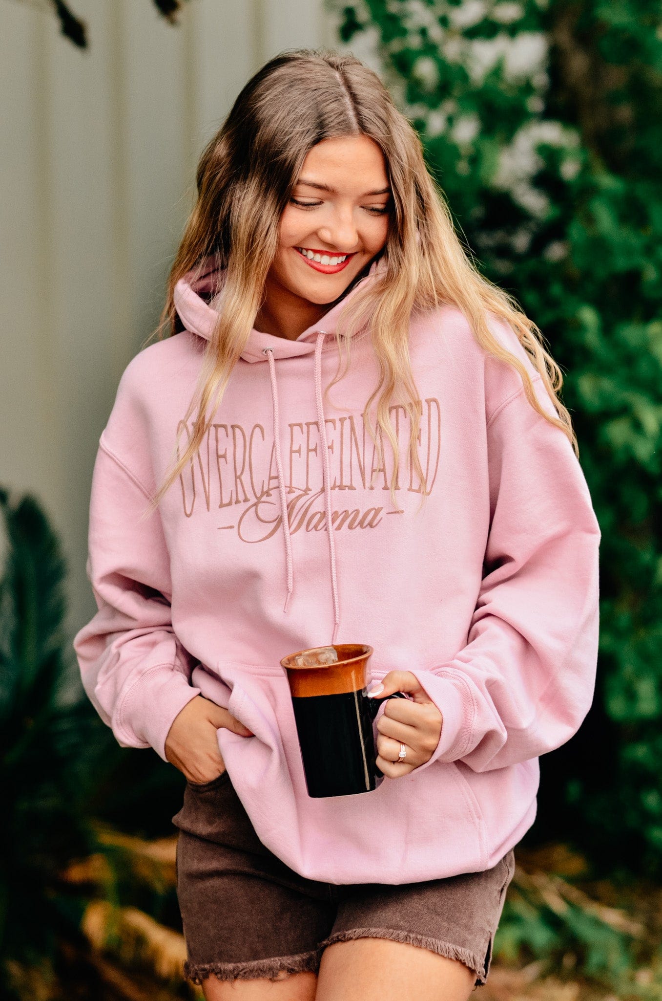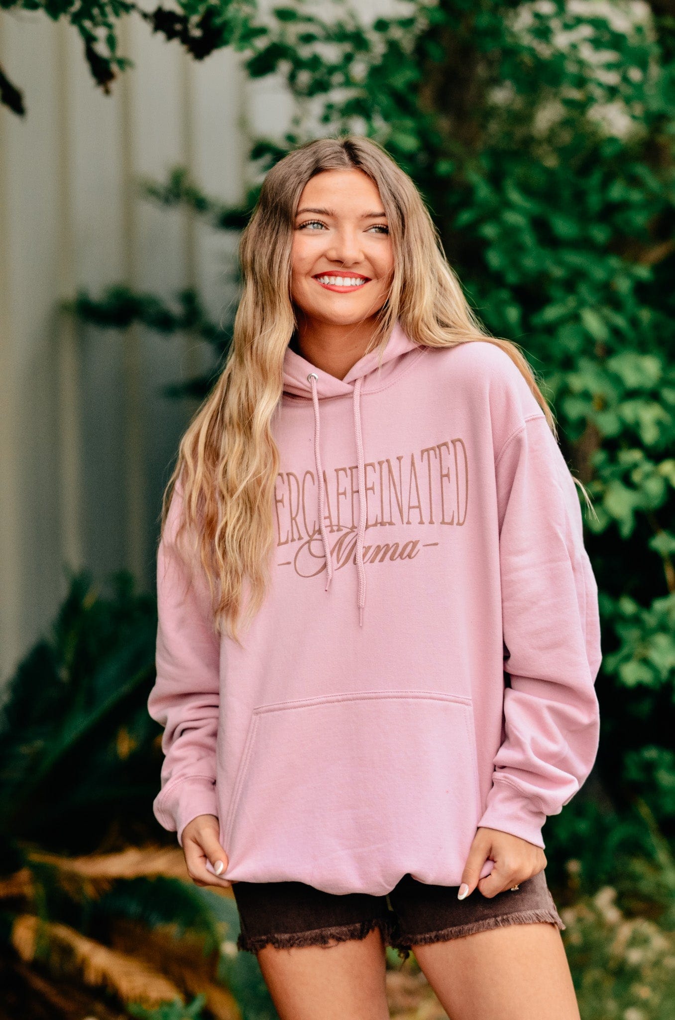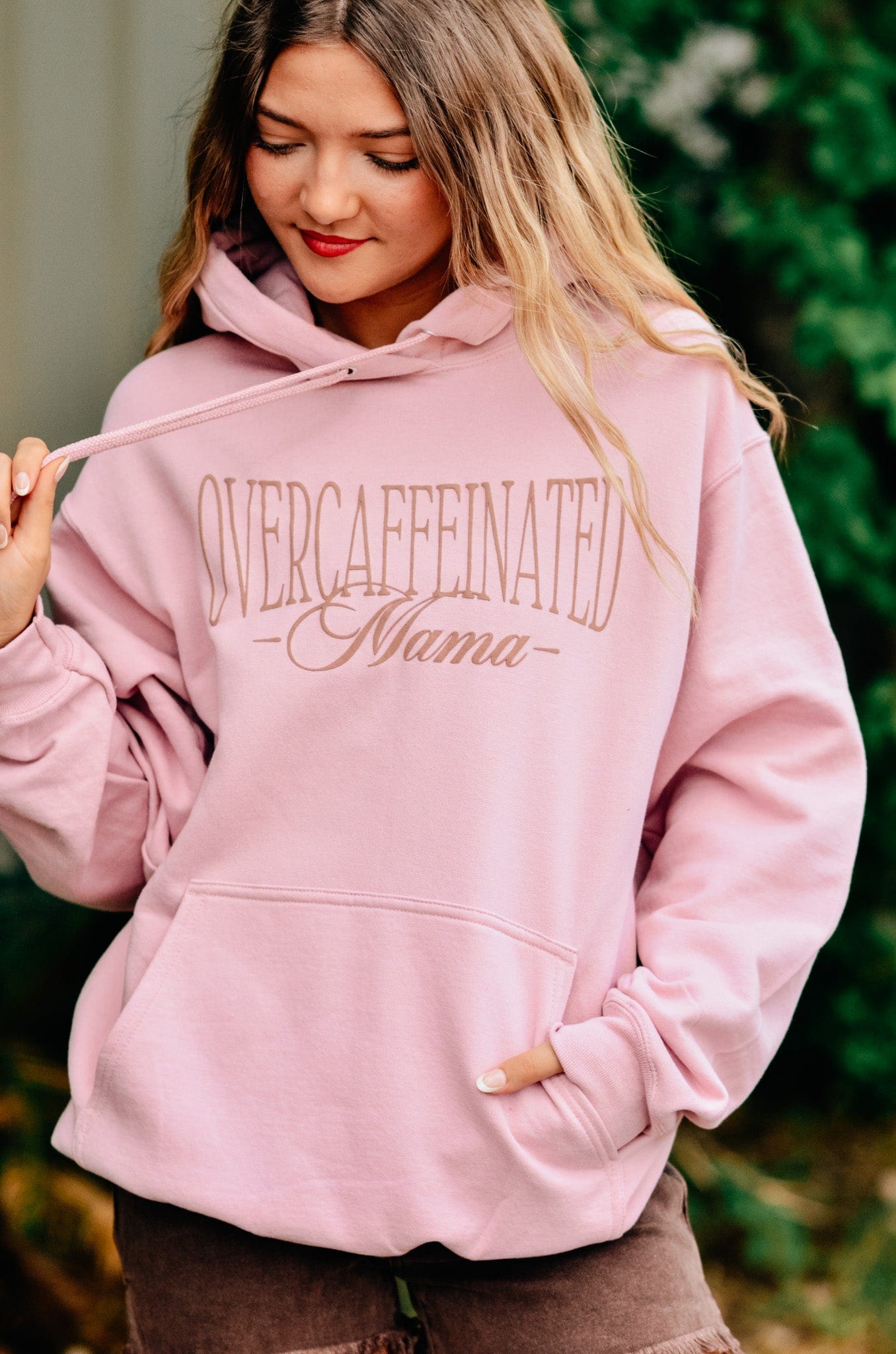 For the moms running on coffee and chaos — the Overcaffeinated Mama Hoodie is your new uniform. This cozy dusty pink hoodie features bold puff ink lettering that pops with personality, because let’s be real: motherhood runs on caffeine and vibes. With a relaxed fit and ultra-soft feel, it’s perfect for school drop-offs, coffee runs, or collapsing on the couch after a long day of doing it all.
