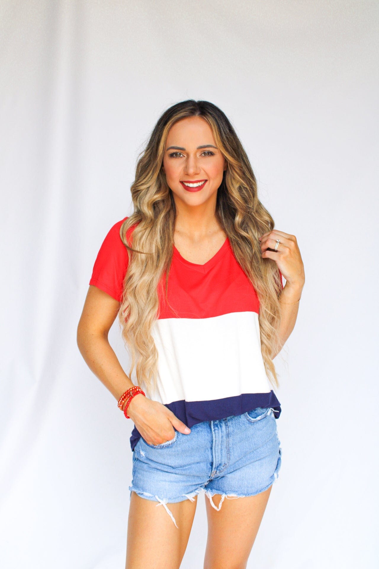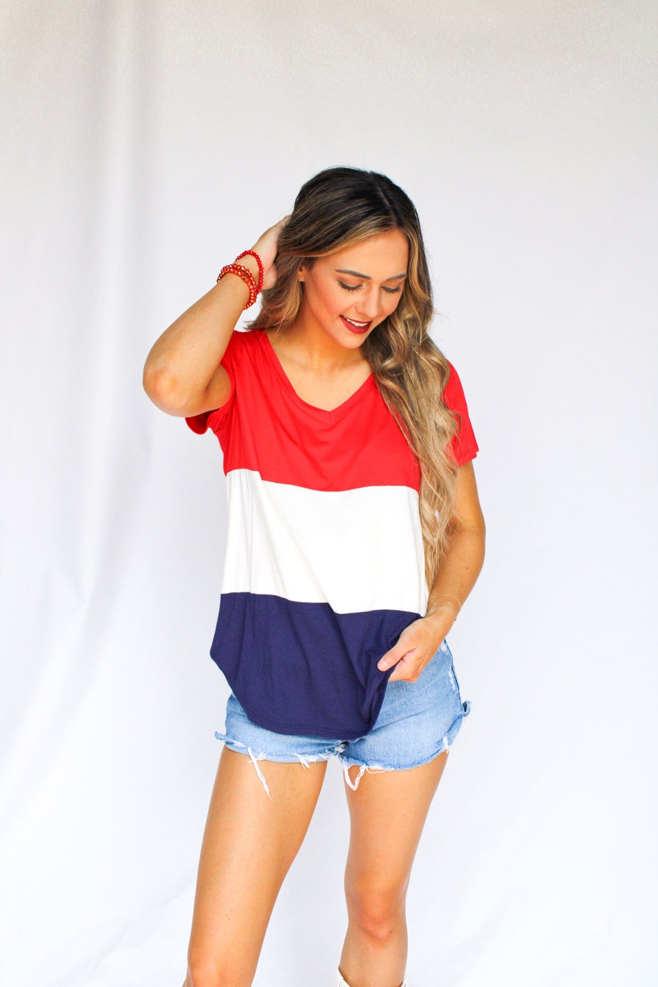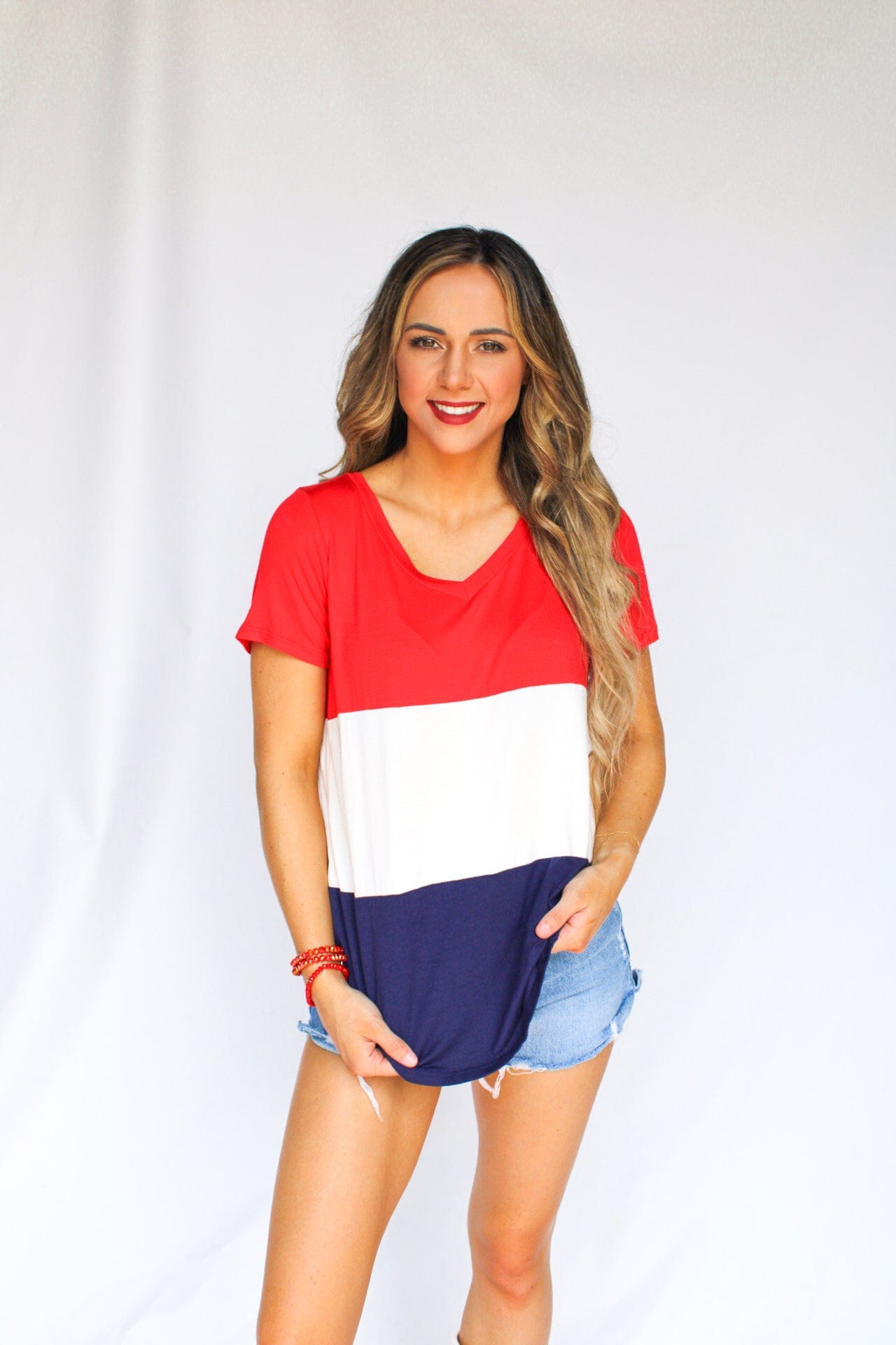You can't go wrong with this Red, White, and Blue top! Perfect for hot summer days and Fourth of July!