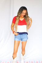 Red White and Blue Colorblock Top