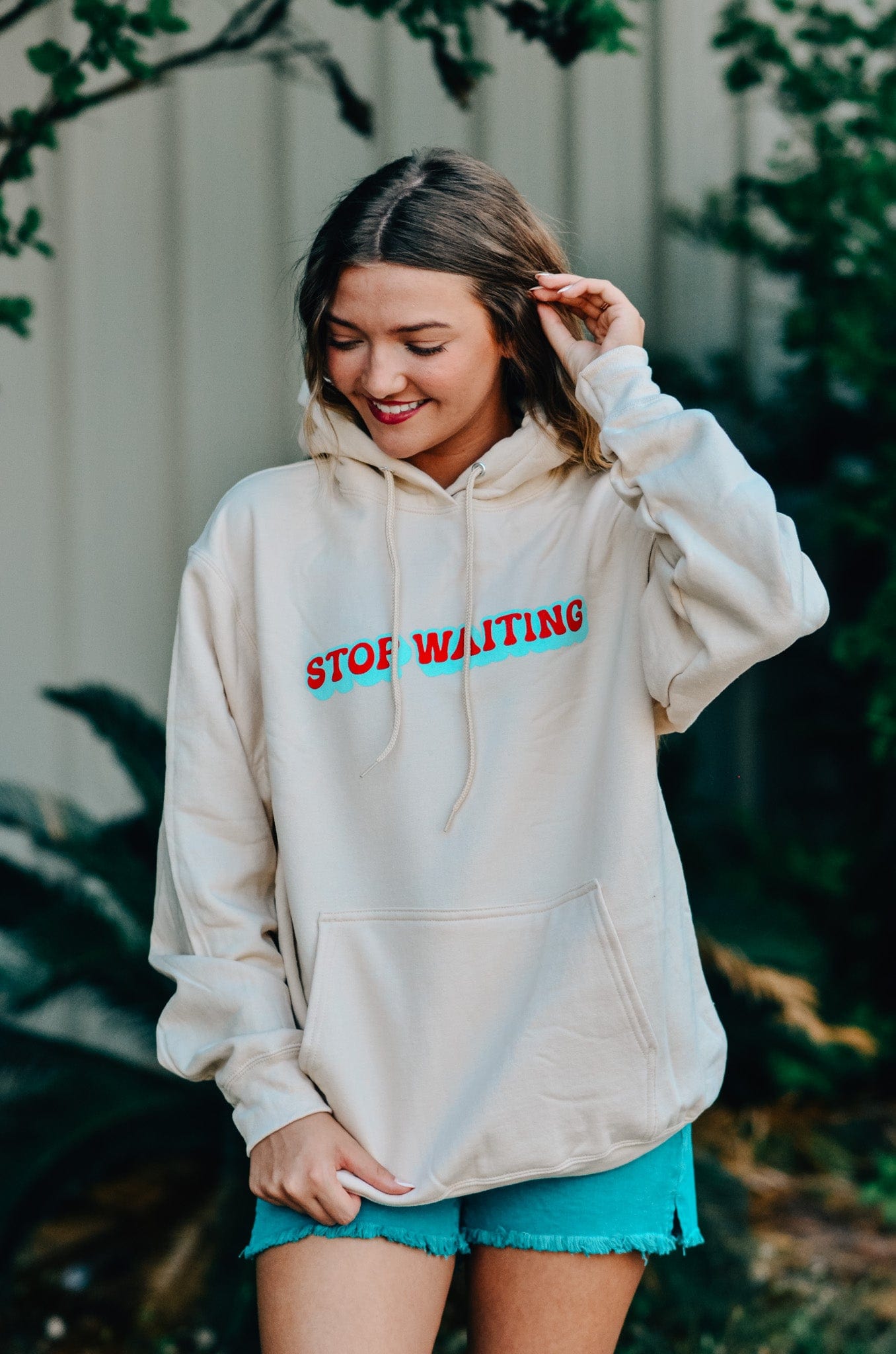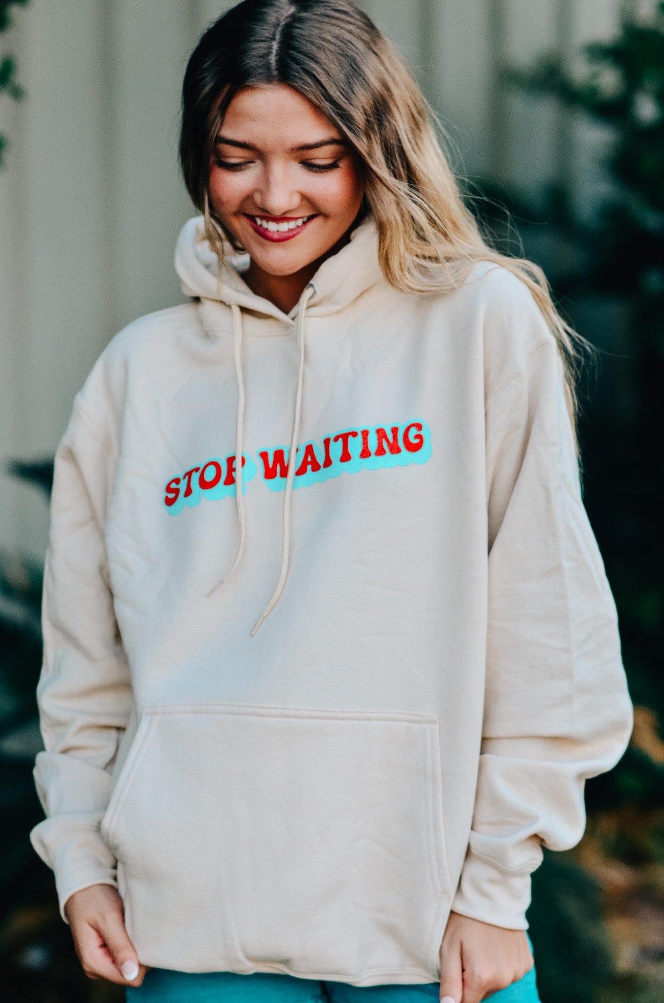 Wrap yourself in cozy comfort and a powerful reminder: “Stop waiting for it to be perfect to be happy.” This creamy, dreamy hoodie features our signature bright bubble font on the front—bringing feel-good vibes and a whole lot of warmth.