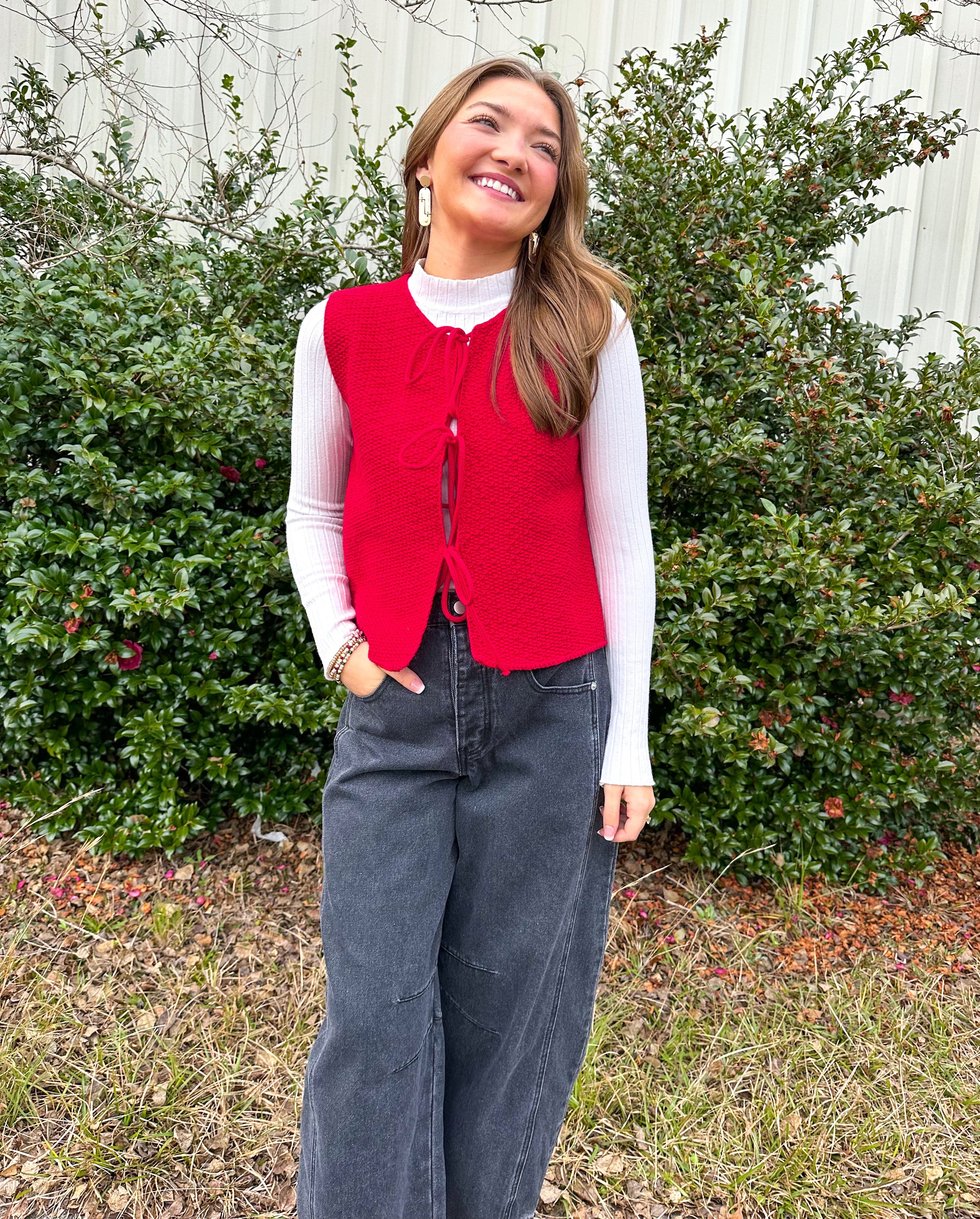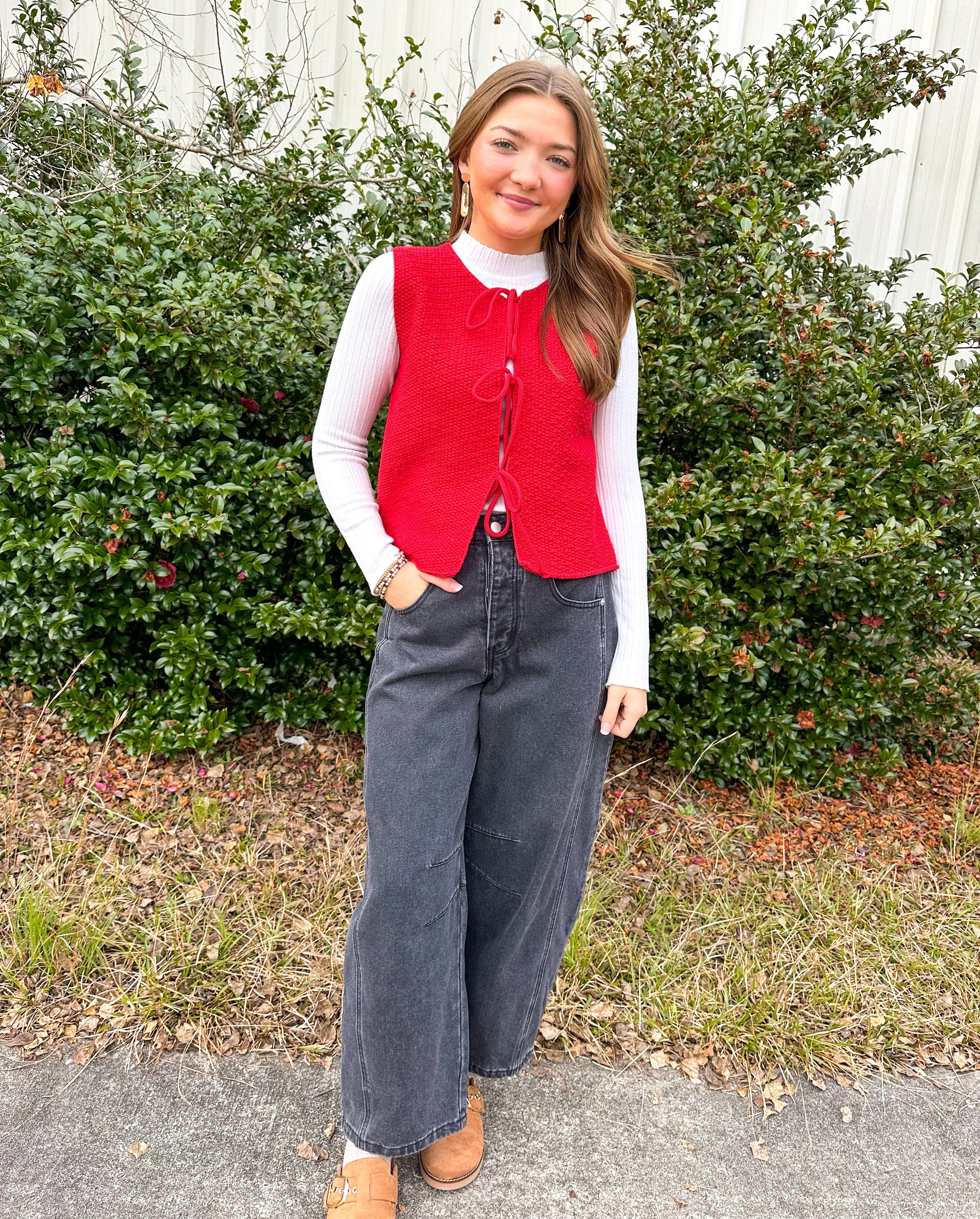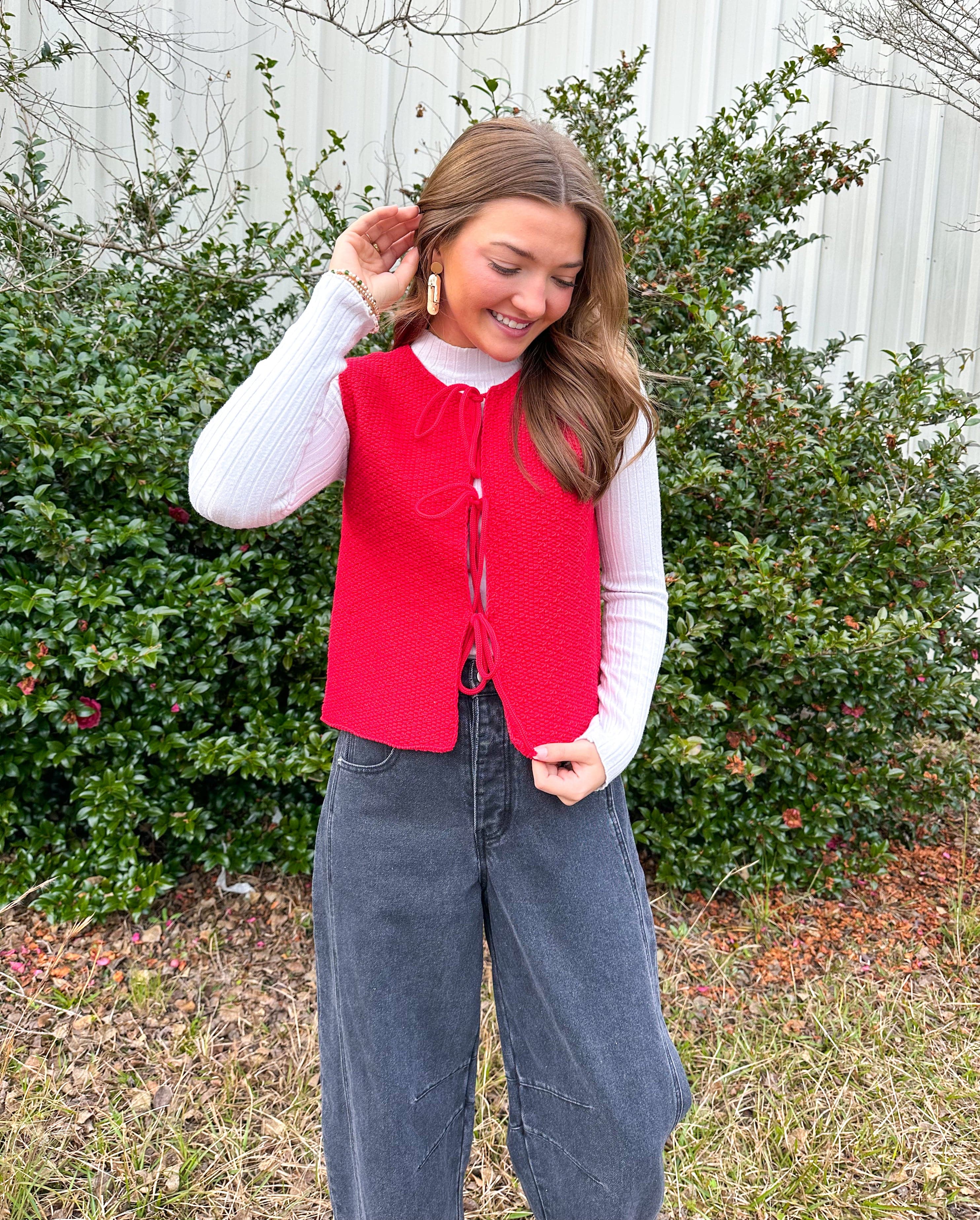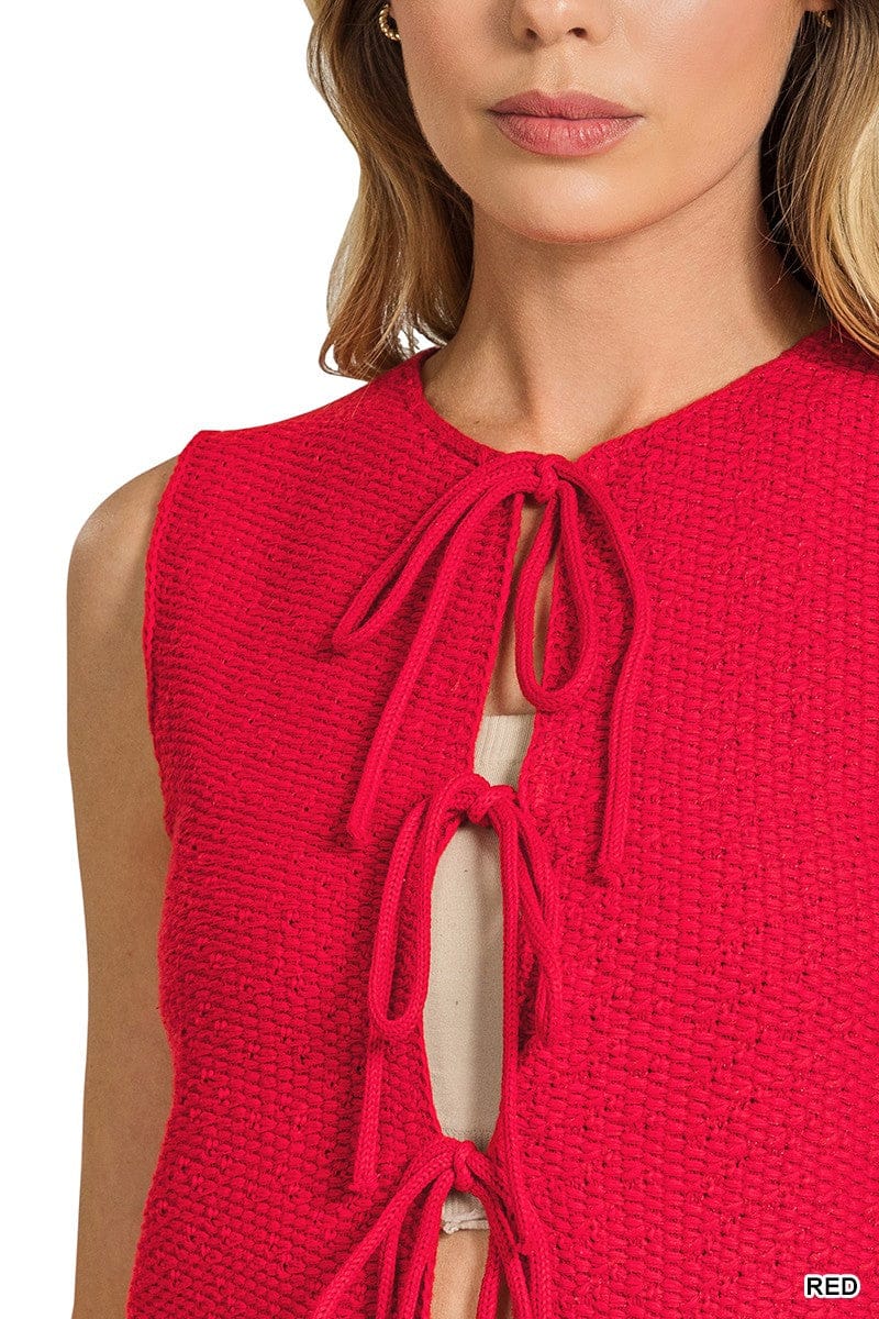 Rosey Red Tie Front Sweater Vest