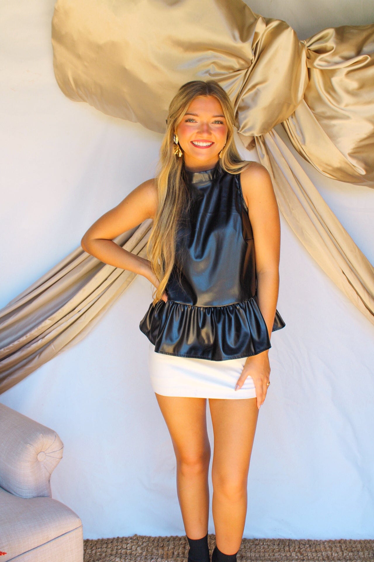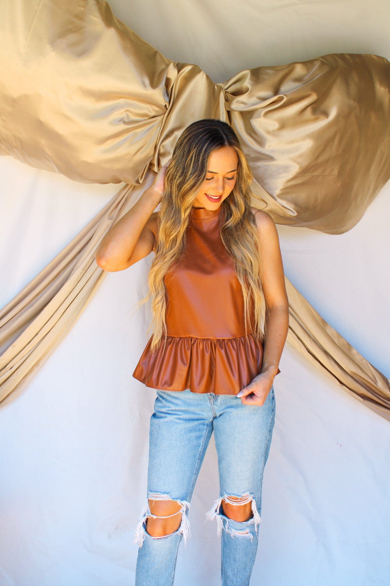 Spruce up your wardrobe with the classic and chic Hold That Line Top! This top features leather construction in both black and caramel colors, along with a flattering halter neck for a look that is sure to turn heads. Get ready to drop it low and hold that line!
