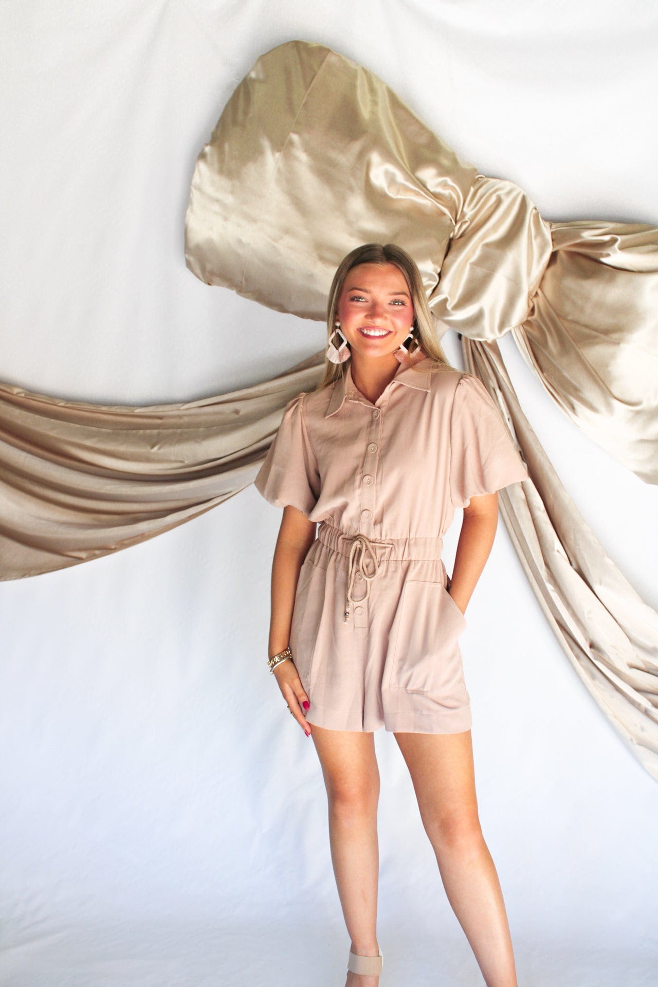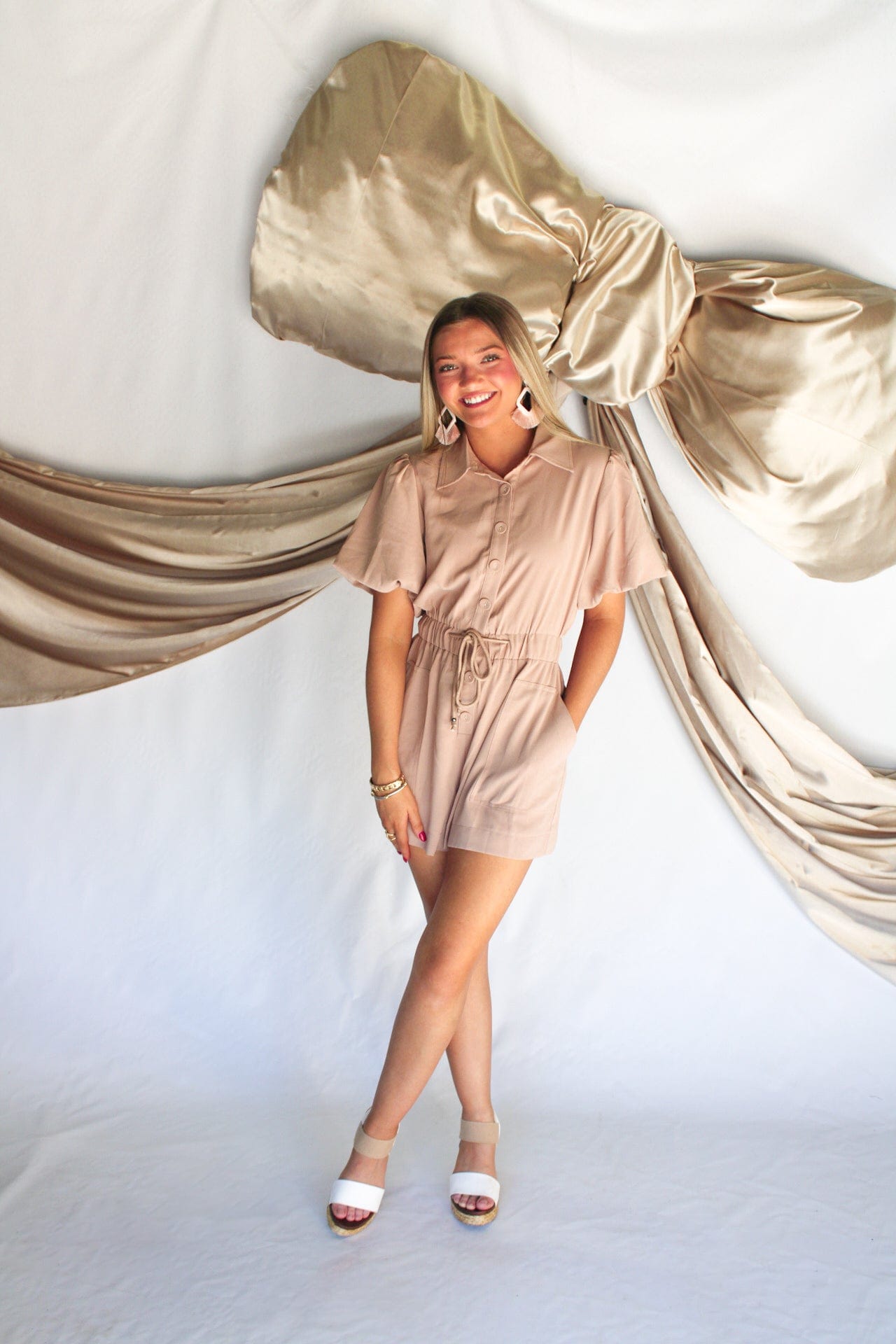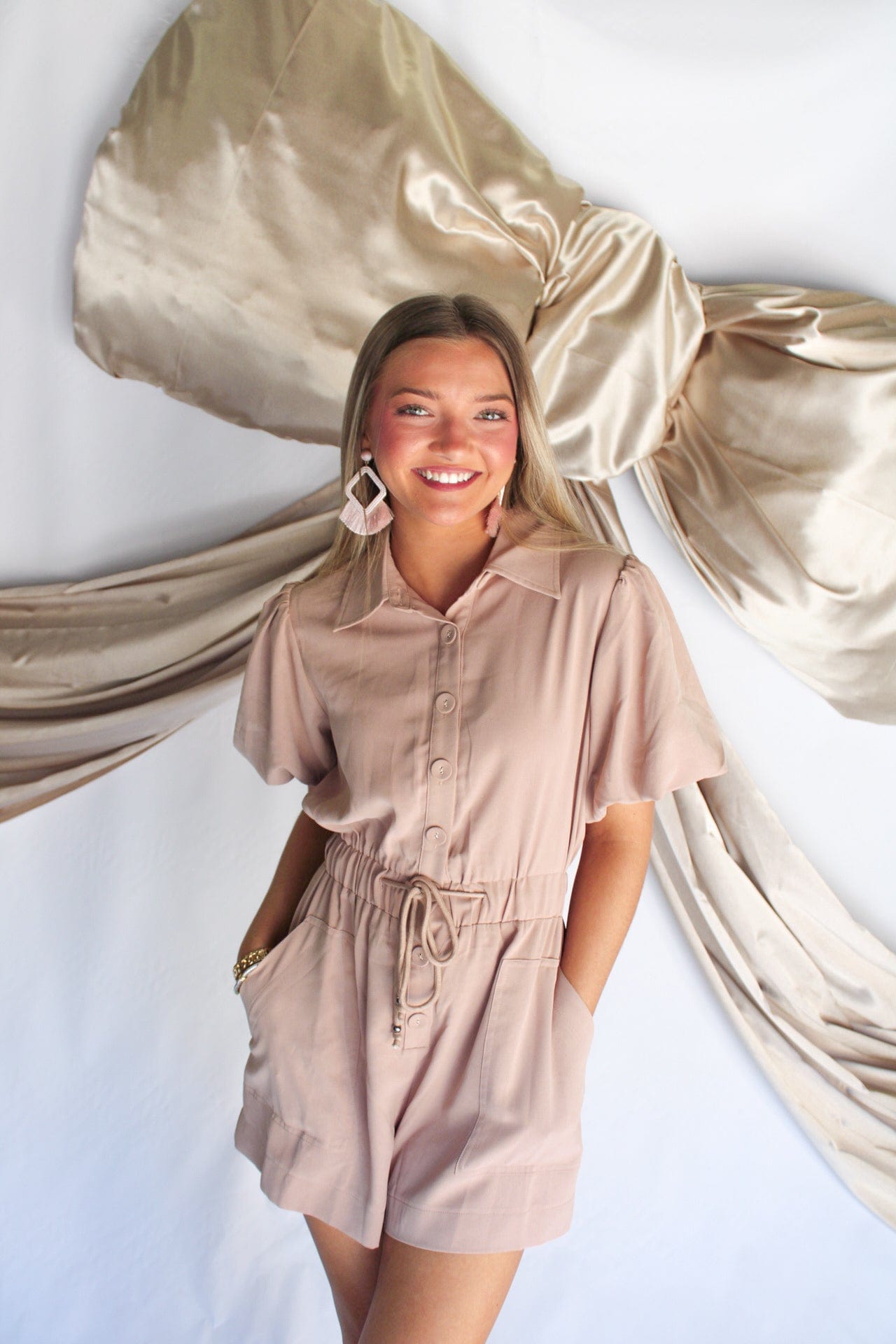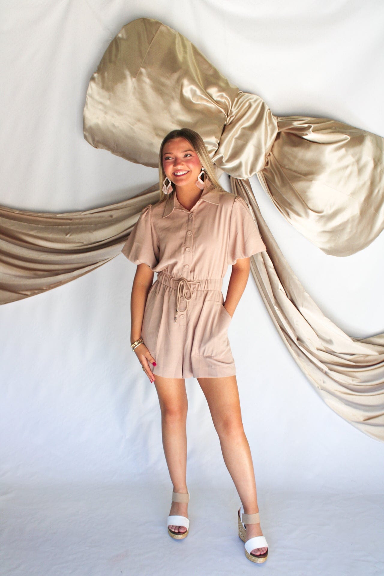 Make a statement in this playful Vanilla Mocha Puff Romper! Featuring a collared neck, a drawstring waist for a secure fit, and voluminous puff sleeves for an extra-sweet touch. A perfect mix of comfy and chic for any occasion.