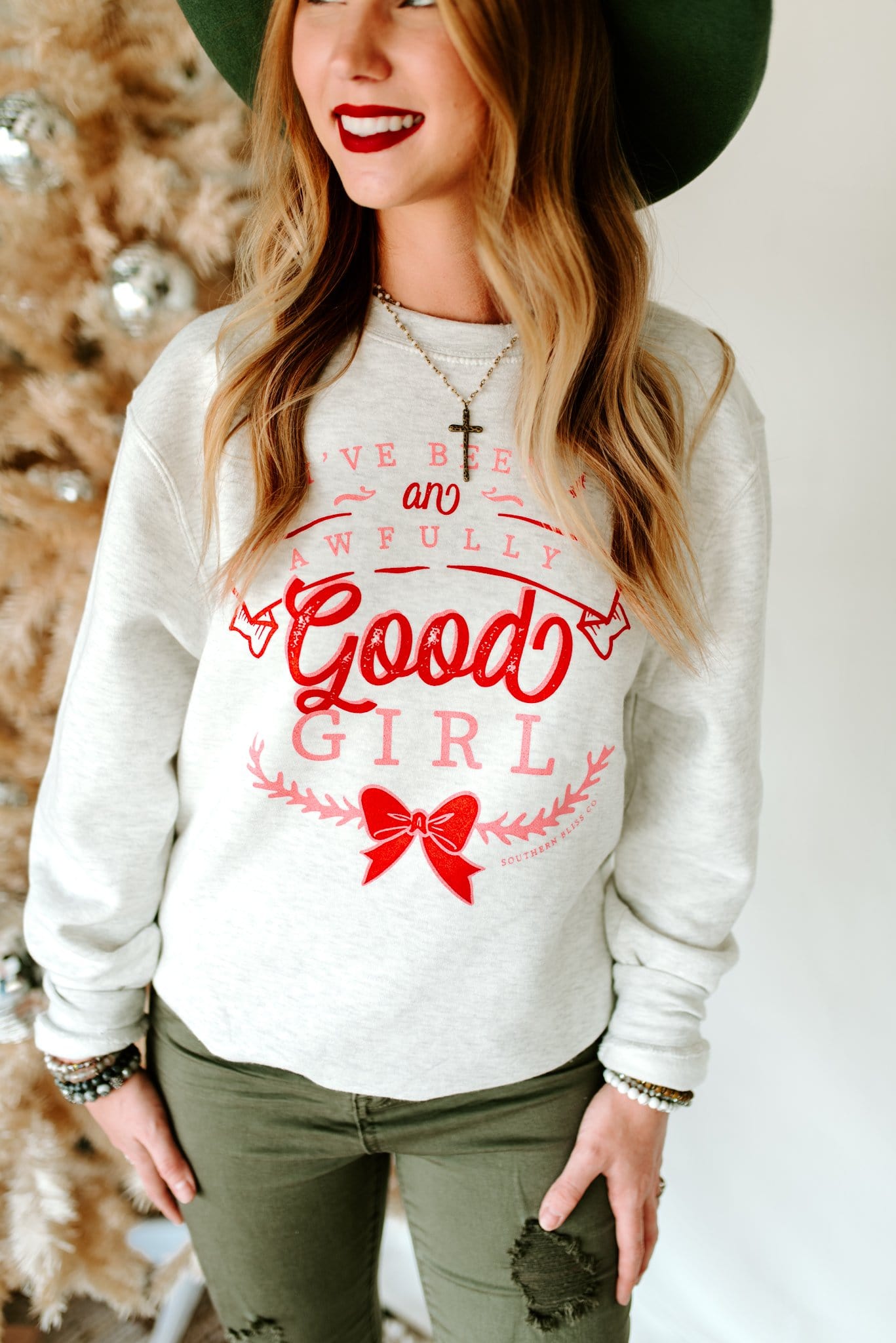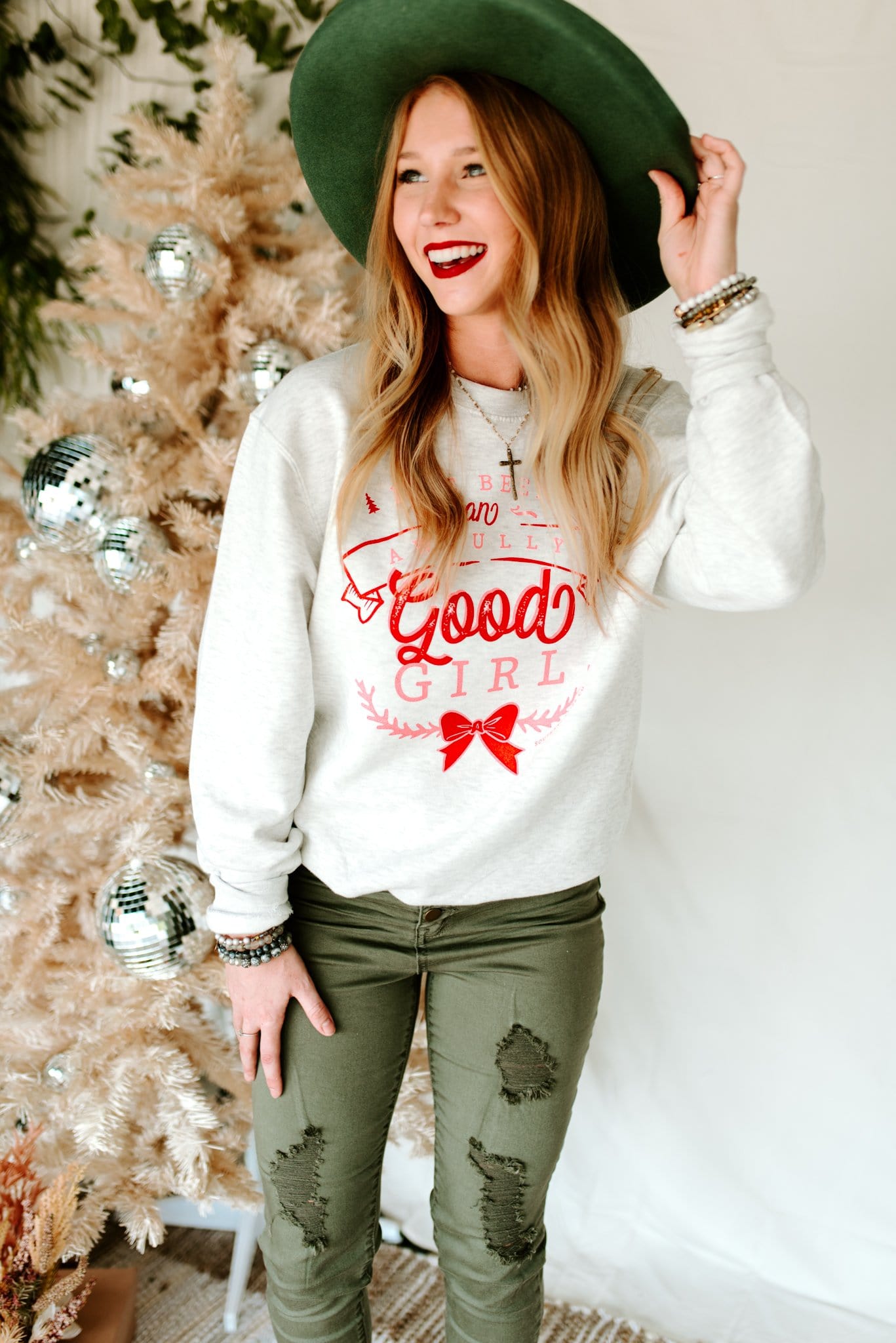 Celebrate your perfectly imperfect side with this Awfully Good Girl Christmas Oatmeal Sweatshirt. Playful graphics on soft oatmeal fabric declare that being "awfully good" is far more interesting than playing it safe. For those who embrace their contradictions and refuse to apologize for it, this sweatshirt blends cheeky confidence with holiday spirit. Be gloriously, unapologetically yourself this season.