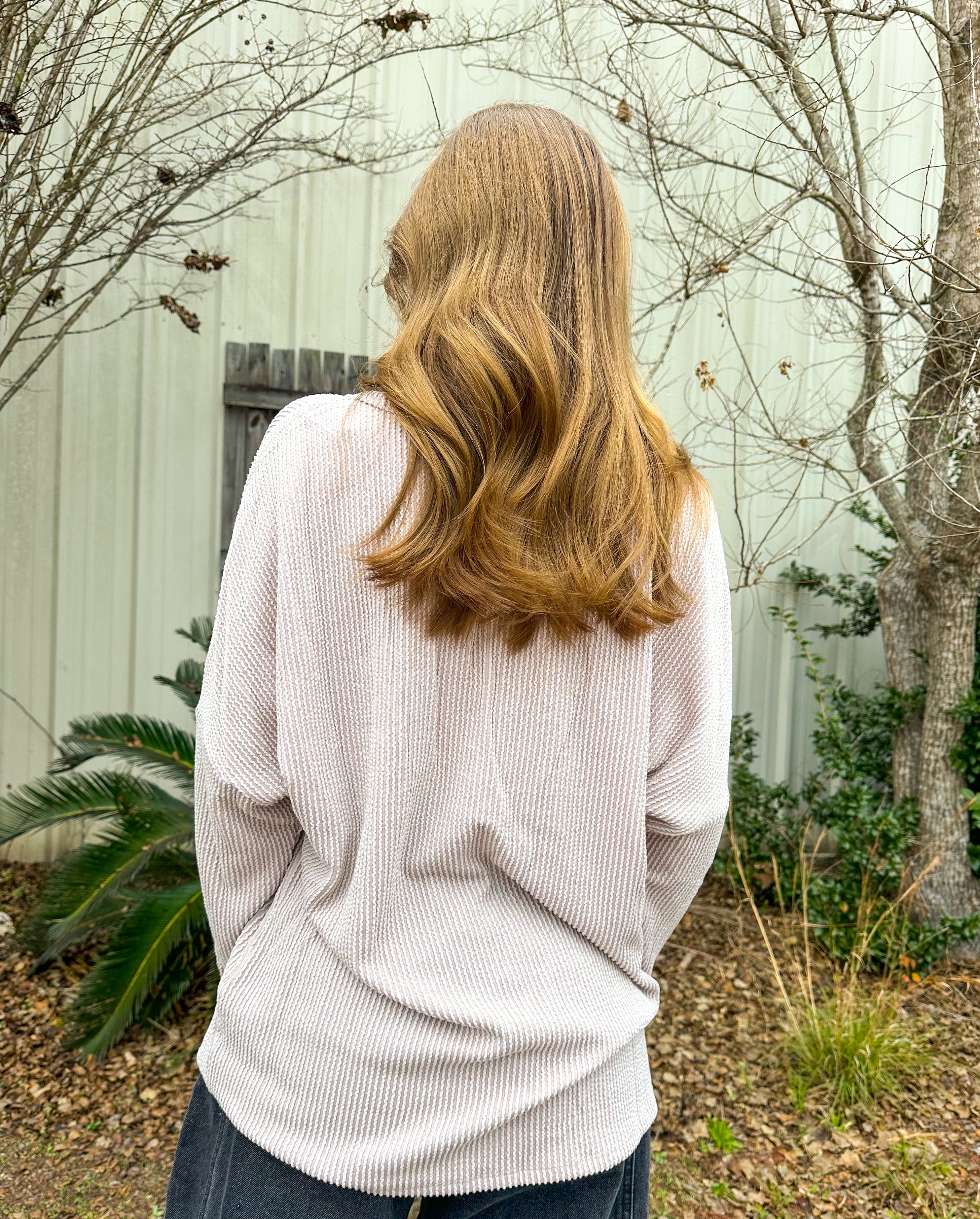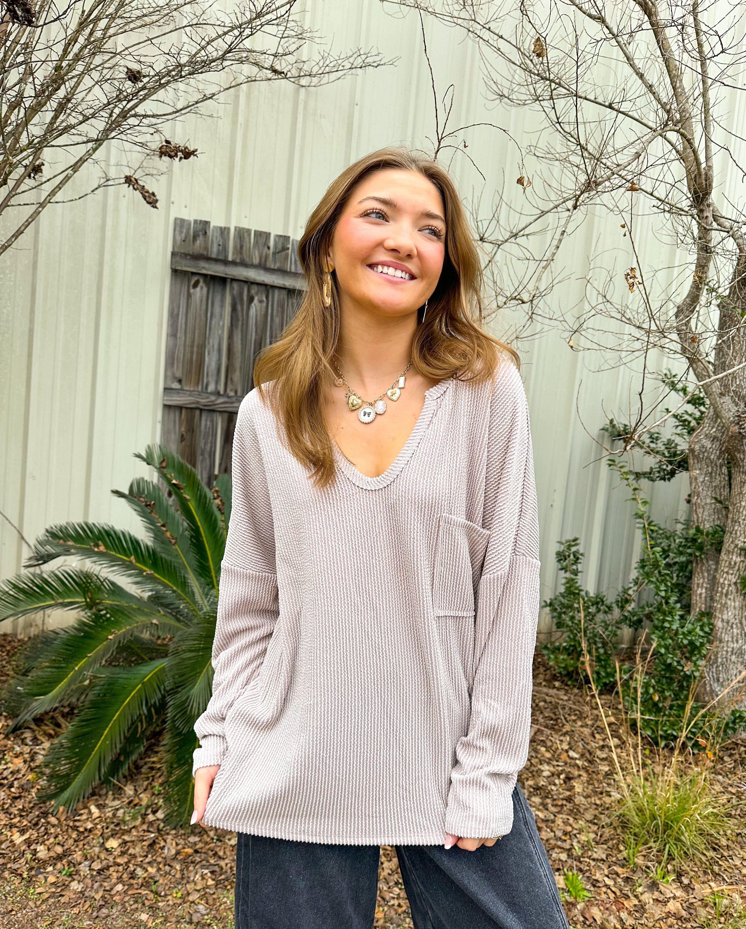 Lyla Oatmeal Ribbed Pocket Top