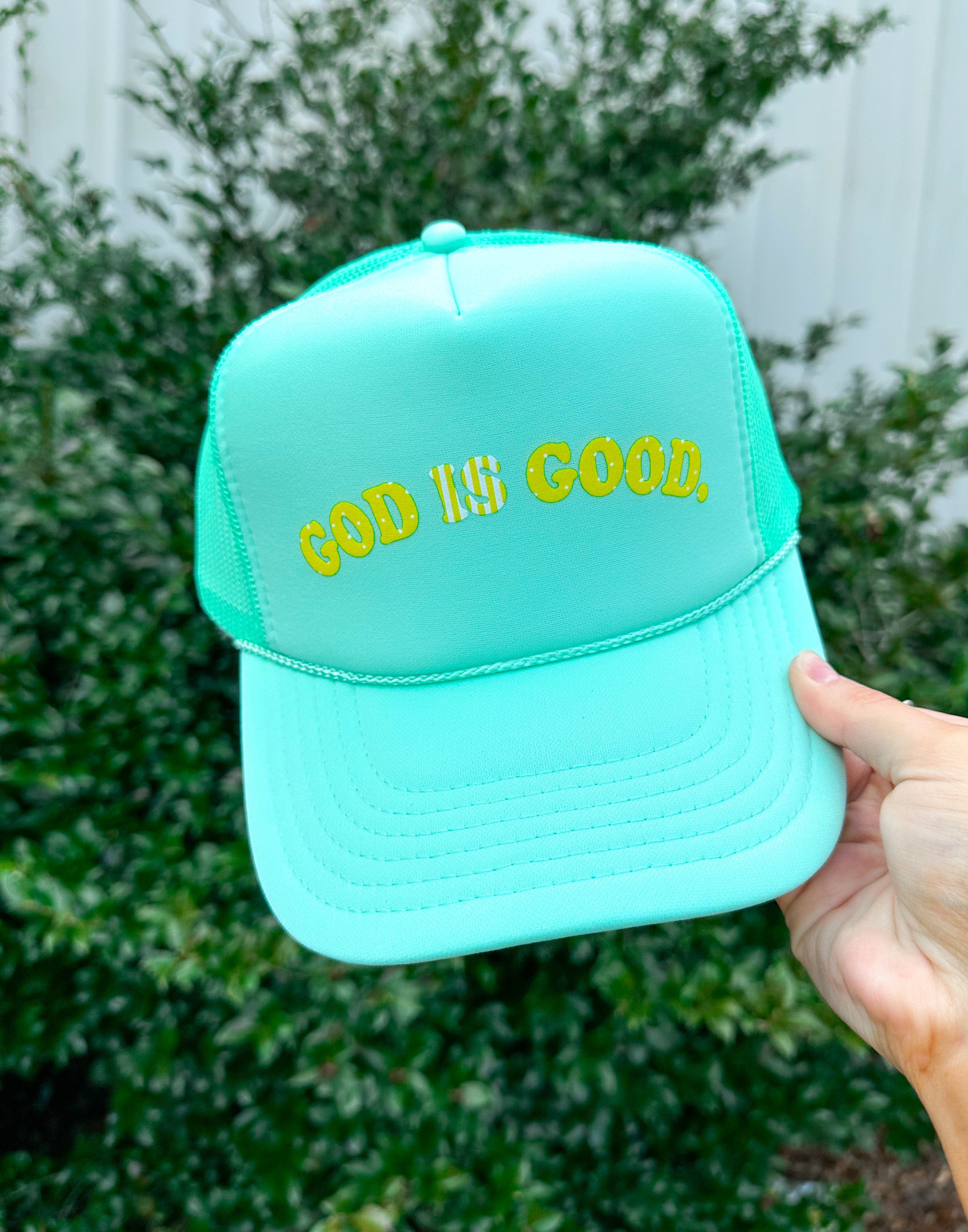 God Is Good Aqua Trucker Hat