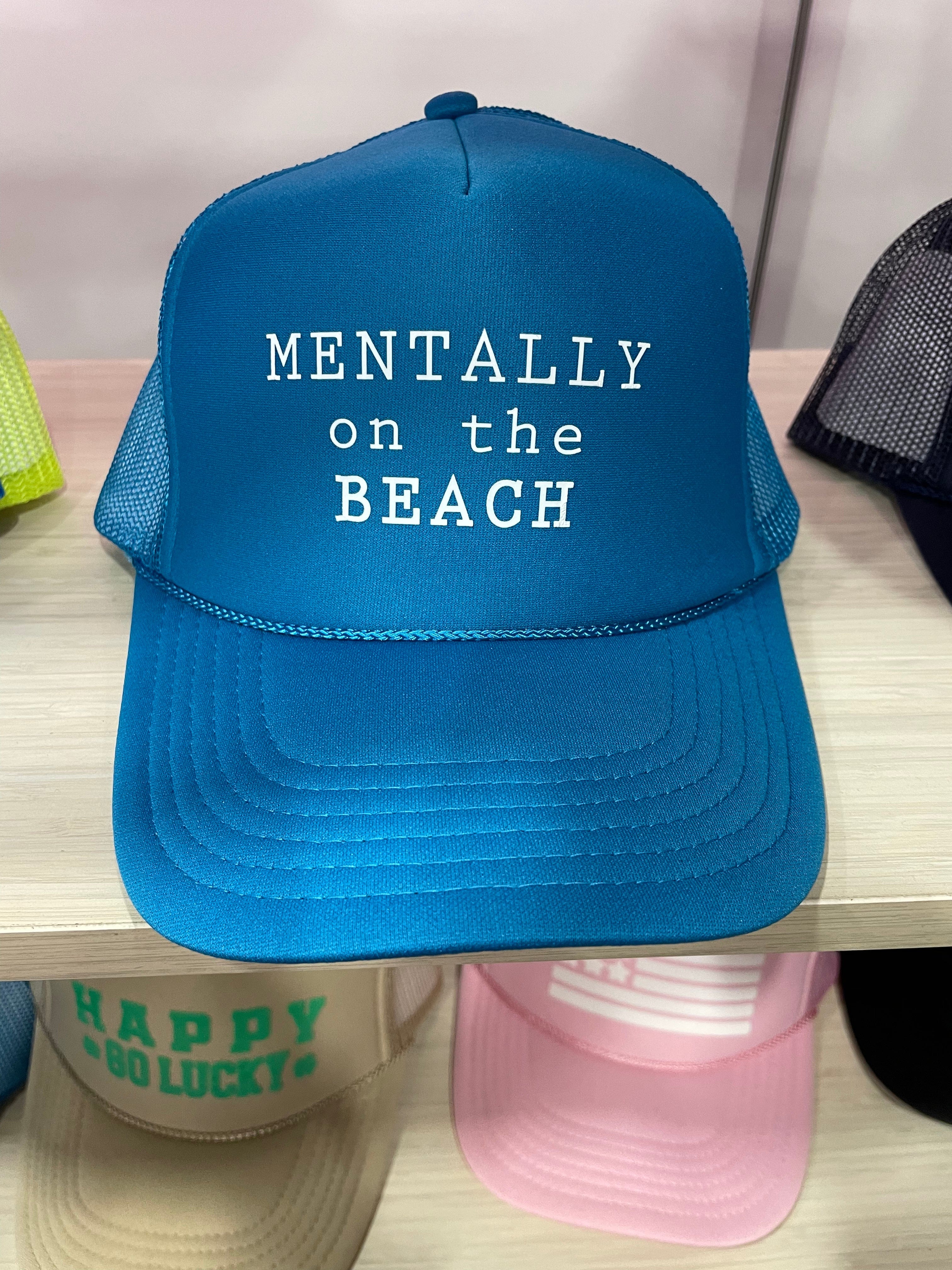 For those days when your body’s here, but your mind is already by the waves. This blue foam trucker hat features the fun "Mentally on the Beach" graphic, reminding everyone that you're always a beach day away from relaxation. With a structured foam front, breathable mesh back, and adjustable snap closure, it’s the perfect mix of comfort and coastal vibes. Whether you’re daydreaming of the ocean or already living the beach life, this hat is your ultimate accessory.