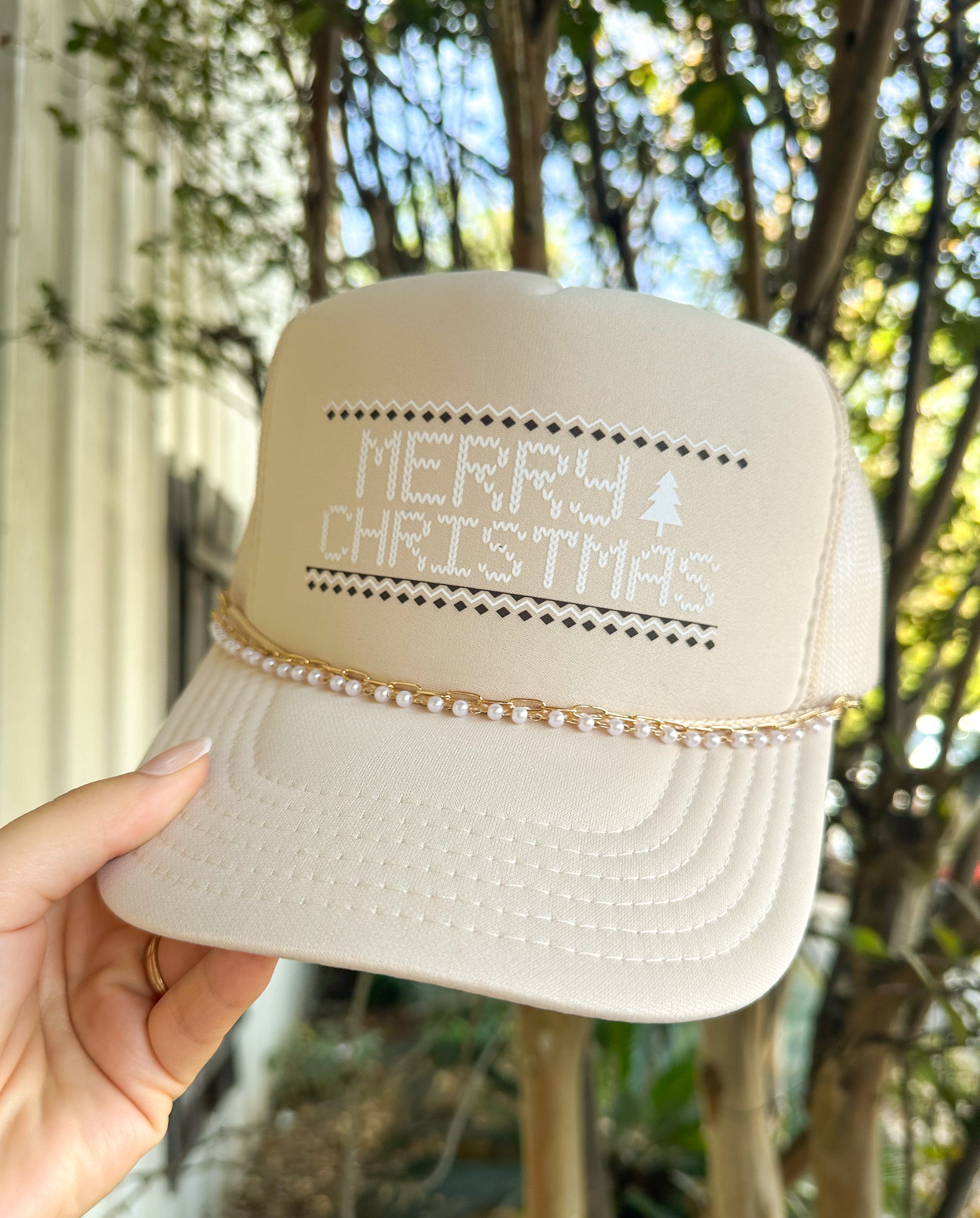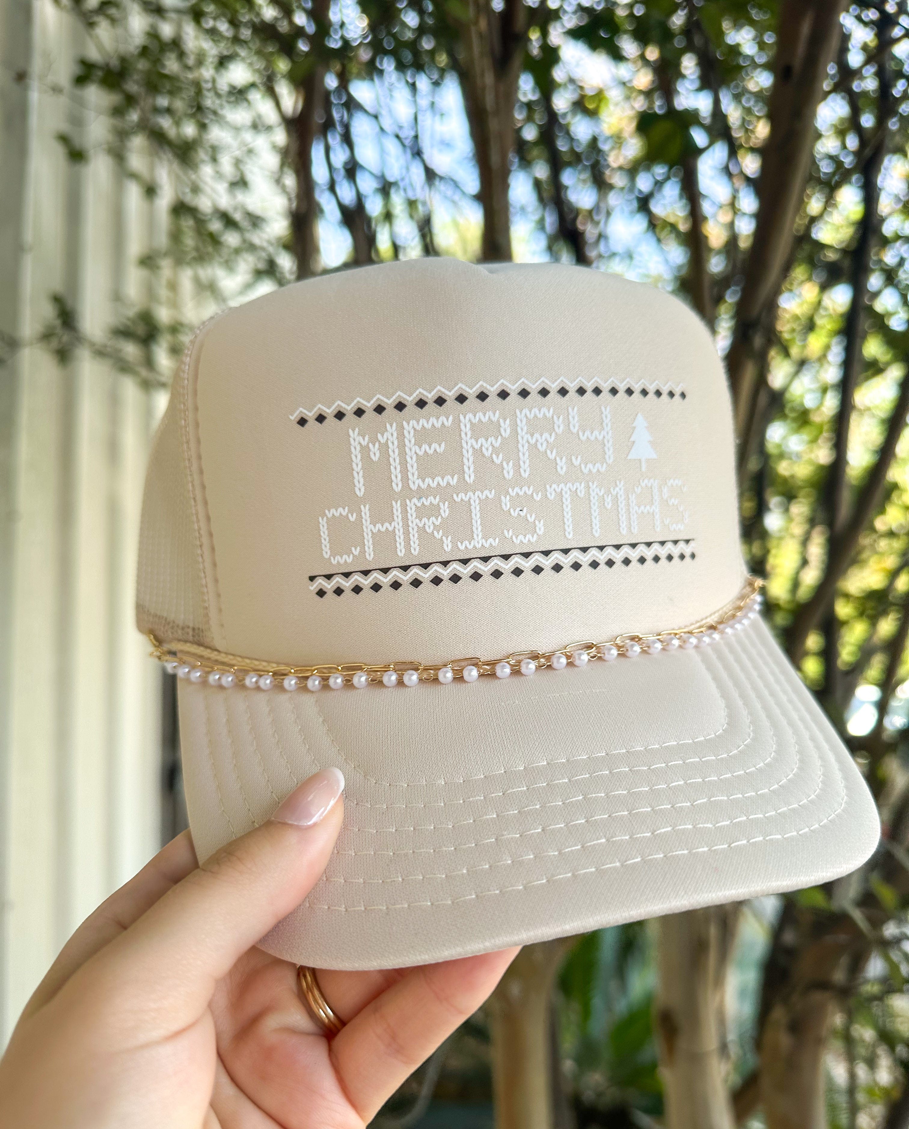 Merry Christmas Stitch With Chain Cream Trucker
