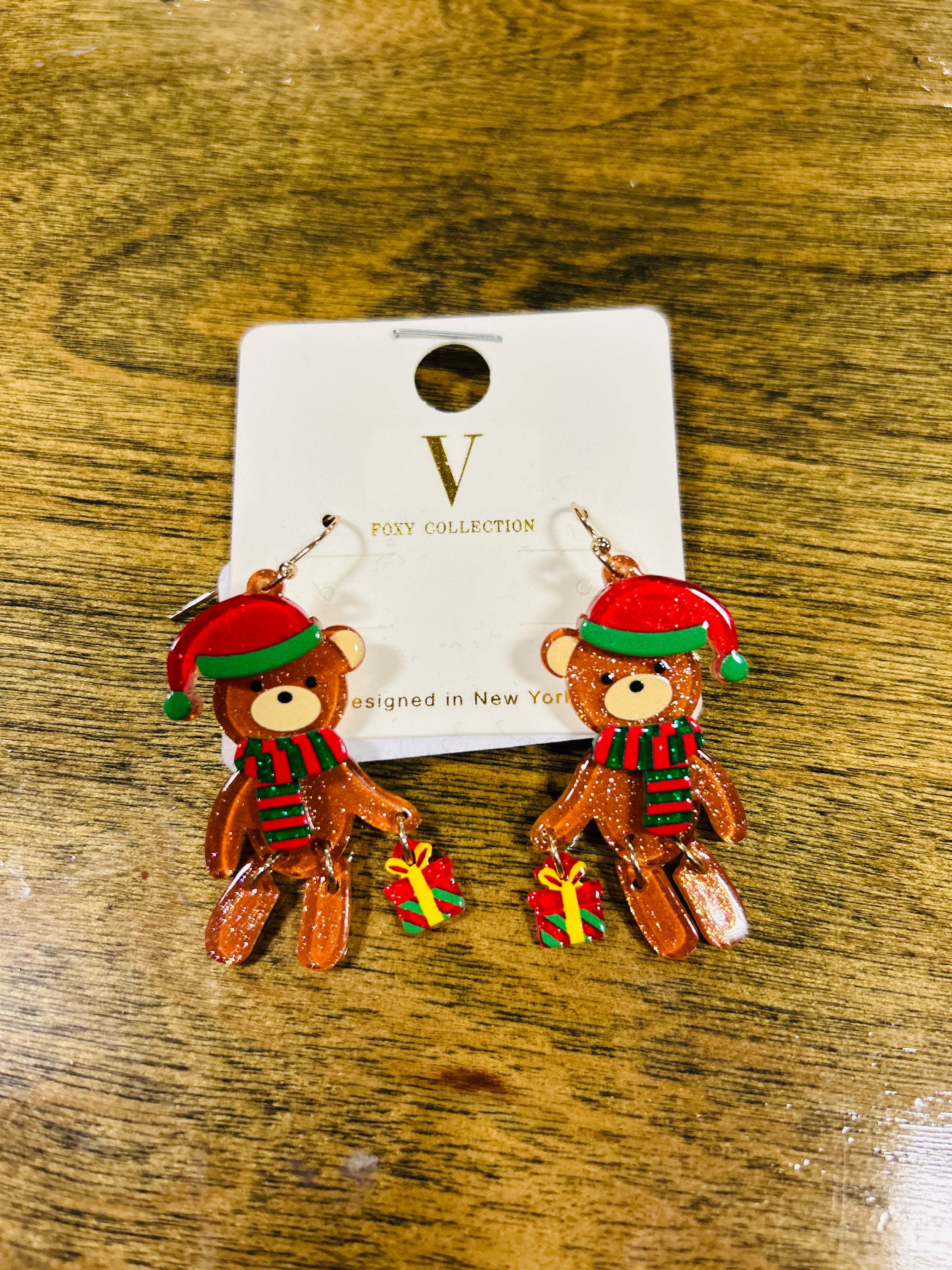 Christmas Teddy Bear Acrylic Dangle Earrings