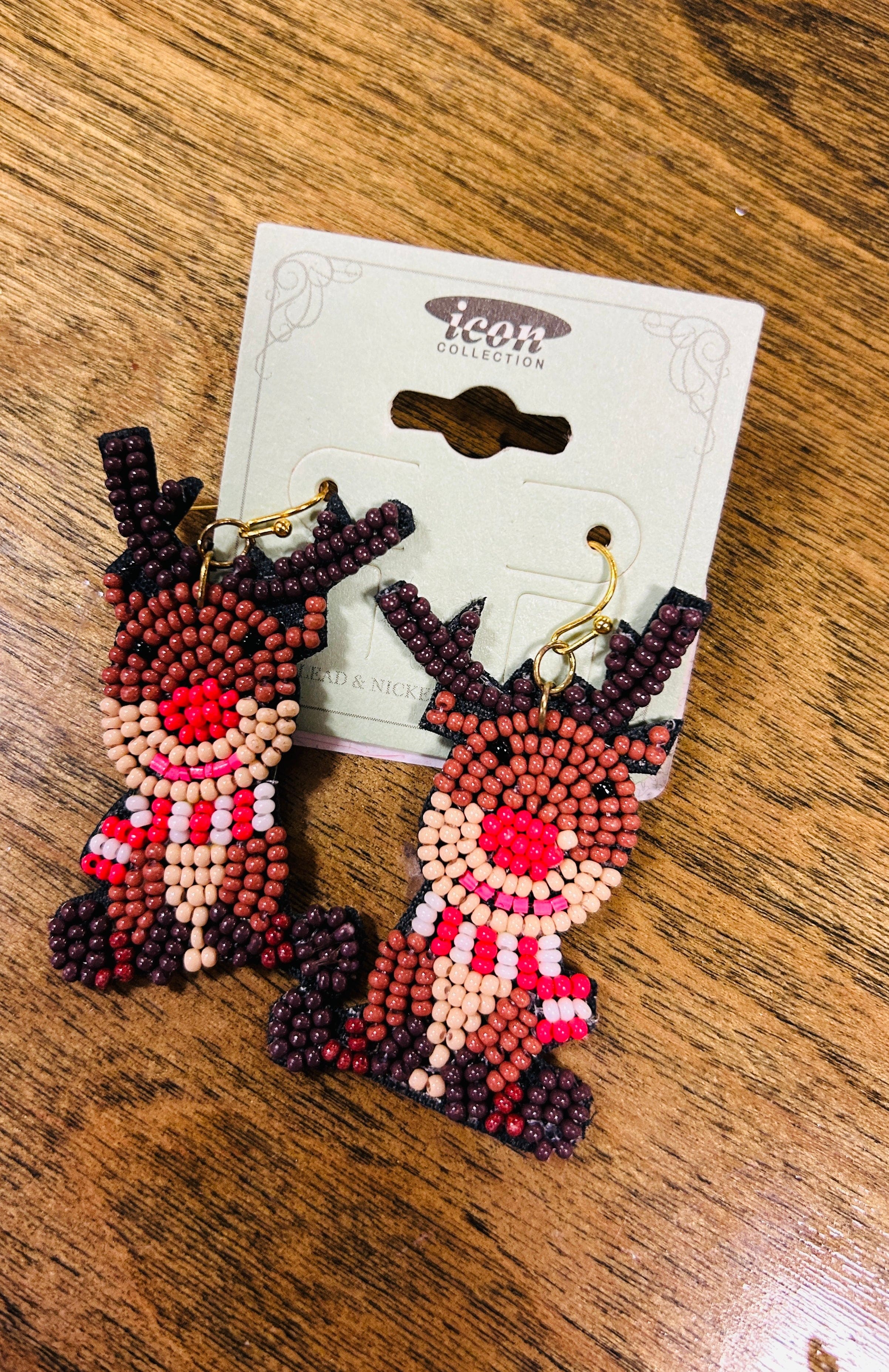 Dash through the season in style with these charming Reindeer Beaded Earrings! Adorned with intricate beadwork, these festive accessories bring a touch of holiday magic to your look. Perfect for Christmas parties, holiday gatherings, or just spreading winter wonderland vibes year-round. Lightweight and easy to wear, they're a fun way to show off your love for all things merry and bright. Let your ears lead the way this holiday season!