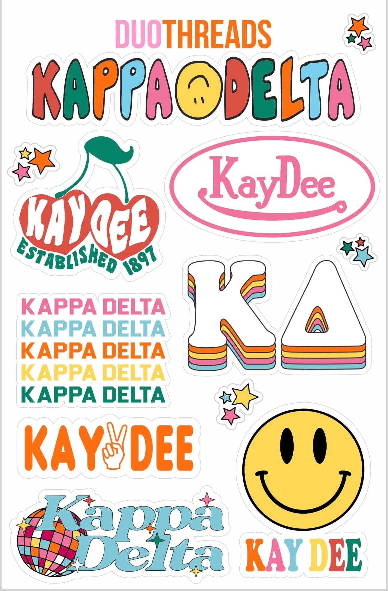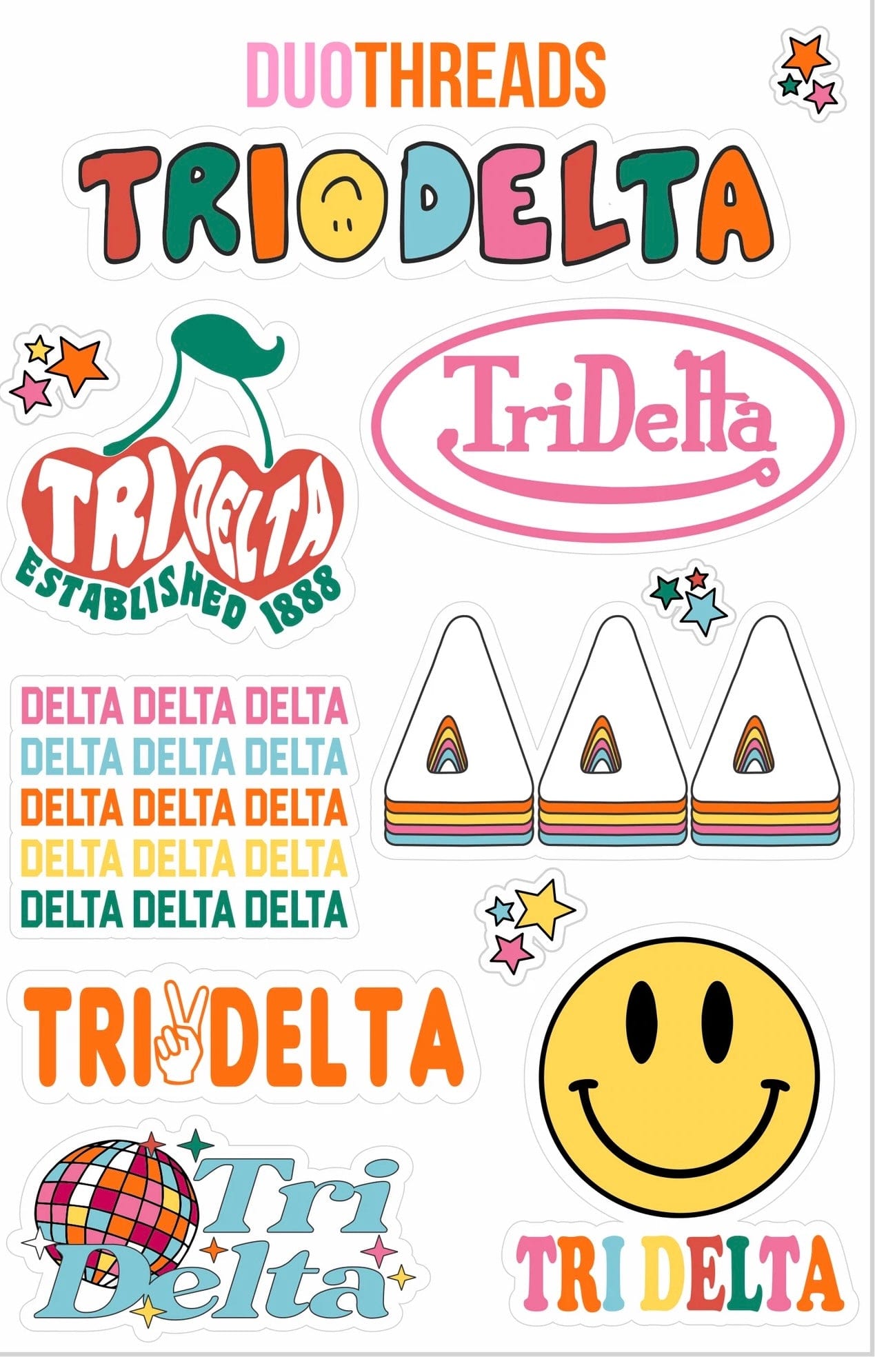 These sorority stickers are so cute and fun! You can put them on your laptop, water bottle, phone case, etc! They come in Kappa Delta, Phi Mu, Chi Omega, and Tri Delta!