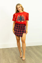 The Festive Forest Sequin Top brings holiday sparkle to your seasonal wardrobe with shimmering sequin sleeves that catch the light beautifully. Featuring a charming plaid tree detail, this versatile piece transitions seamlessly from casual gatherings to festive celebrations. The expert craftsmanship ensures the sequins maintain their brilliance through multiple wears, while the classic tree motif pairs effortlessly with your existing Christmas collection. Whether styled with jeans for a relaxed look or dressed up for holiday events, this top delivers sophisticated seasonal style without compromise.