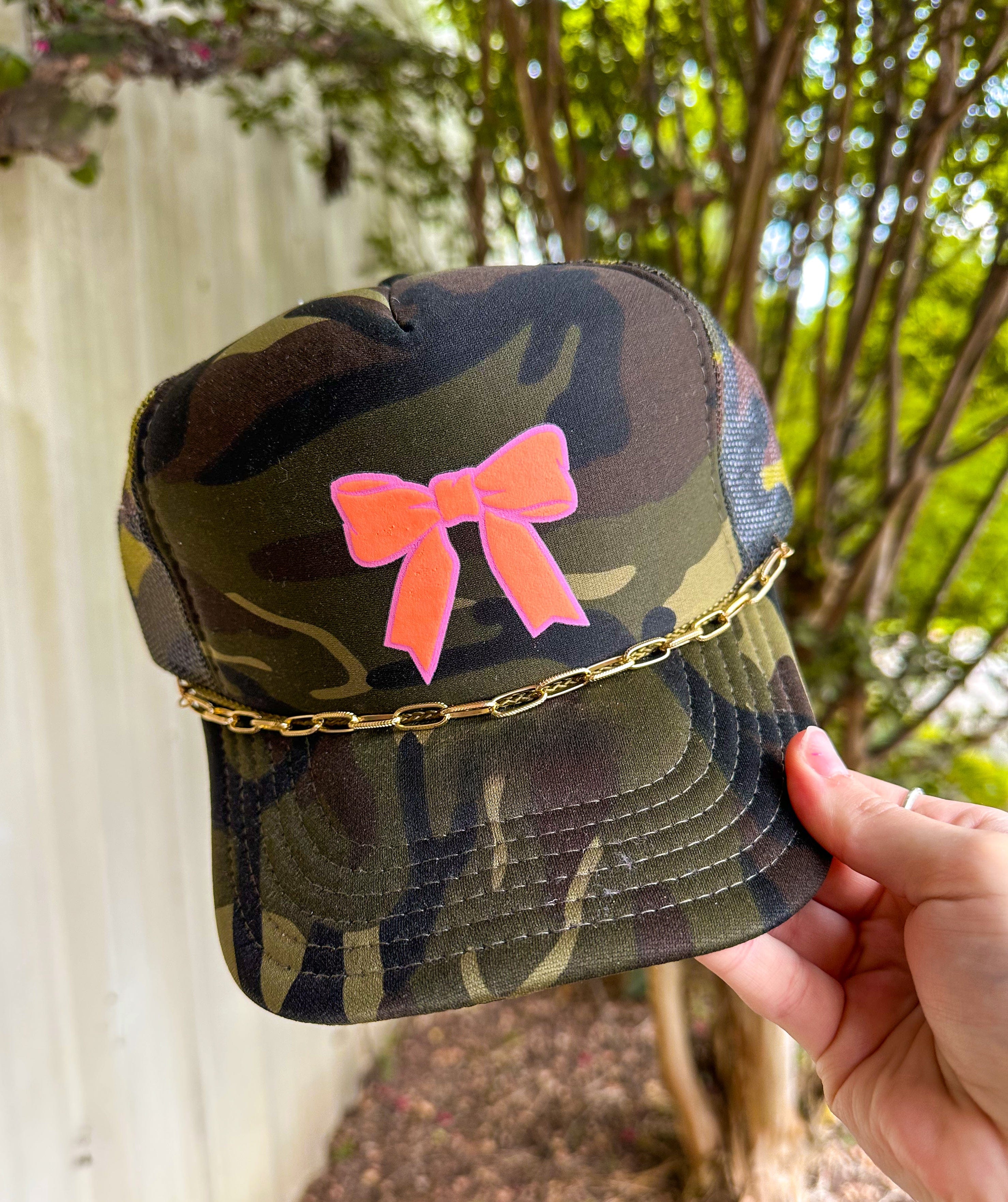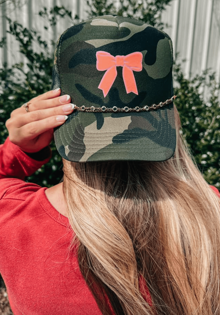 Full Camo Foam Trucker Hat – Puff Pink Bow