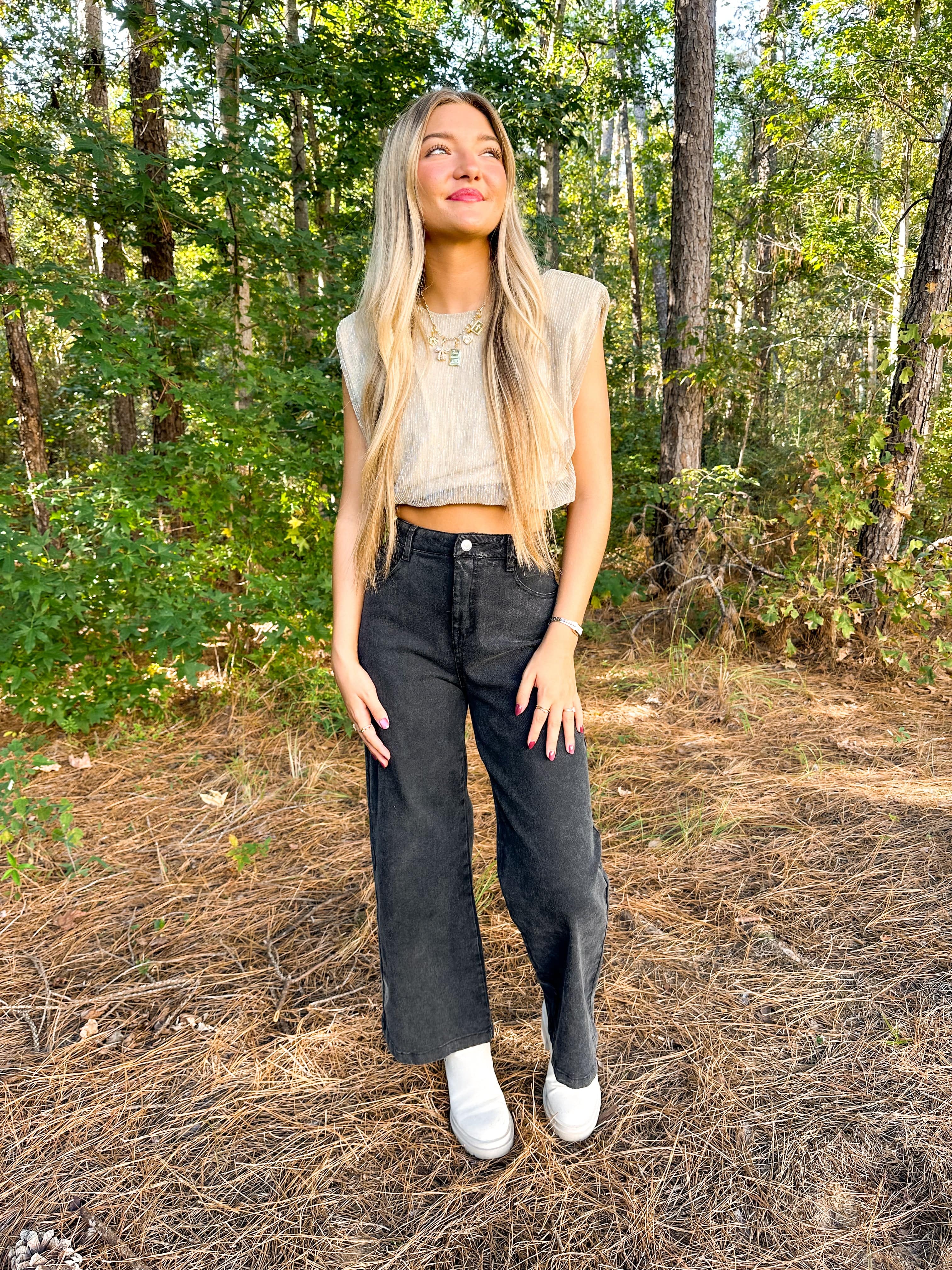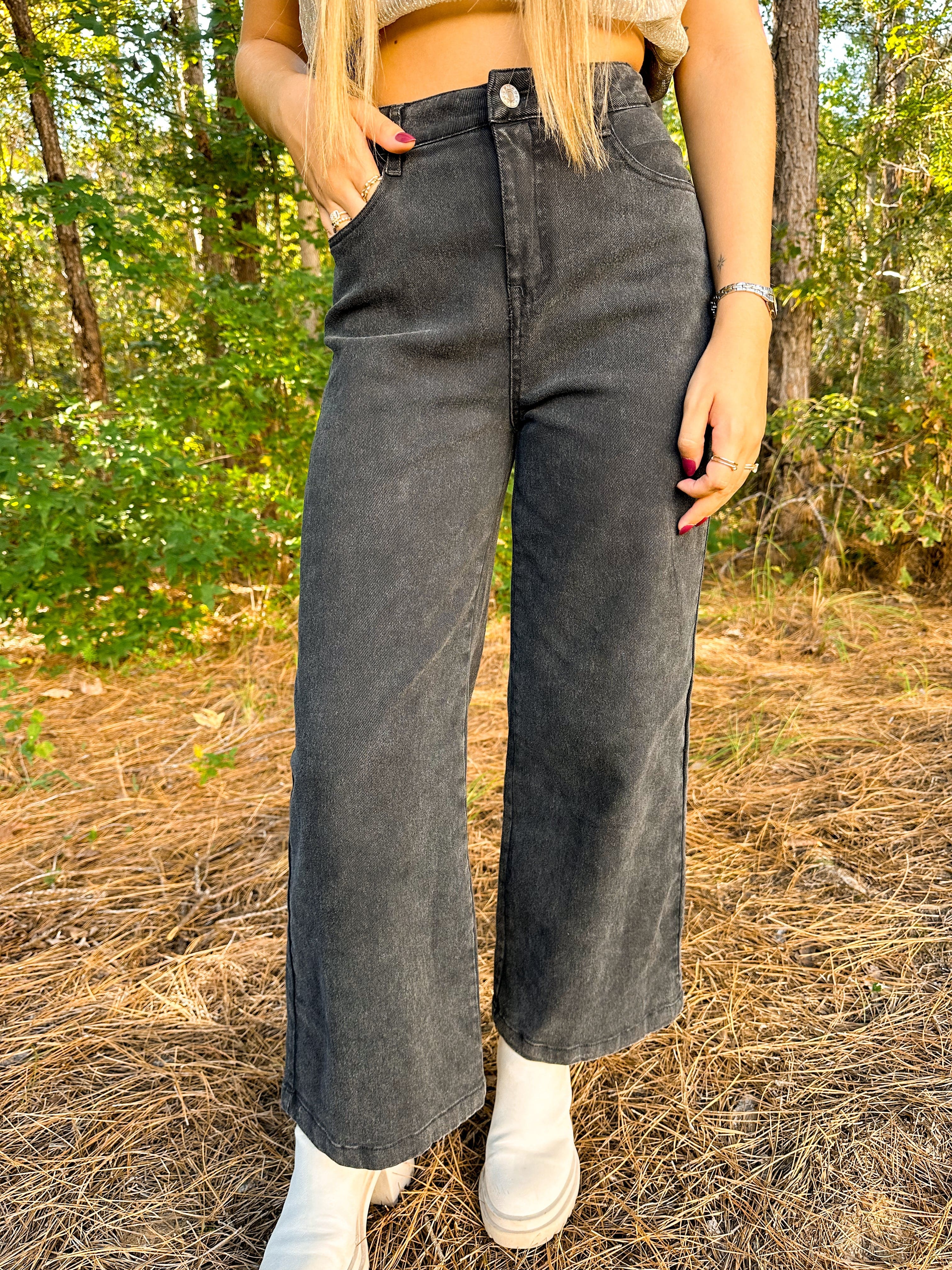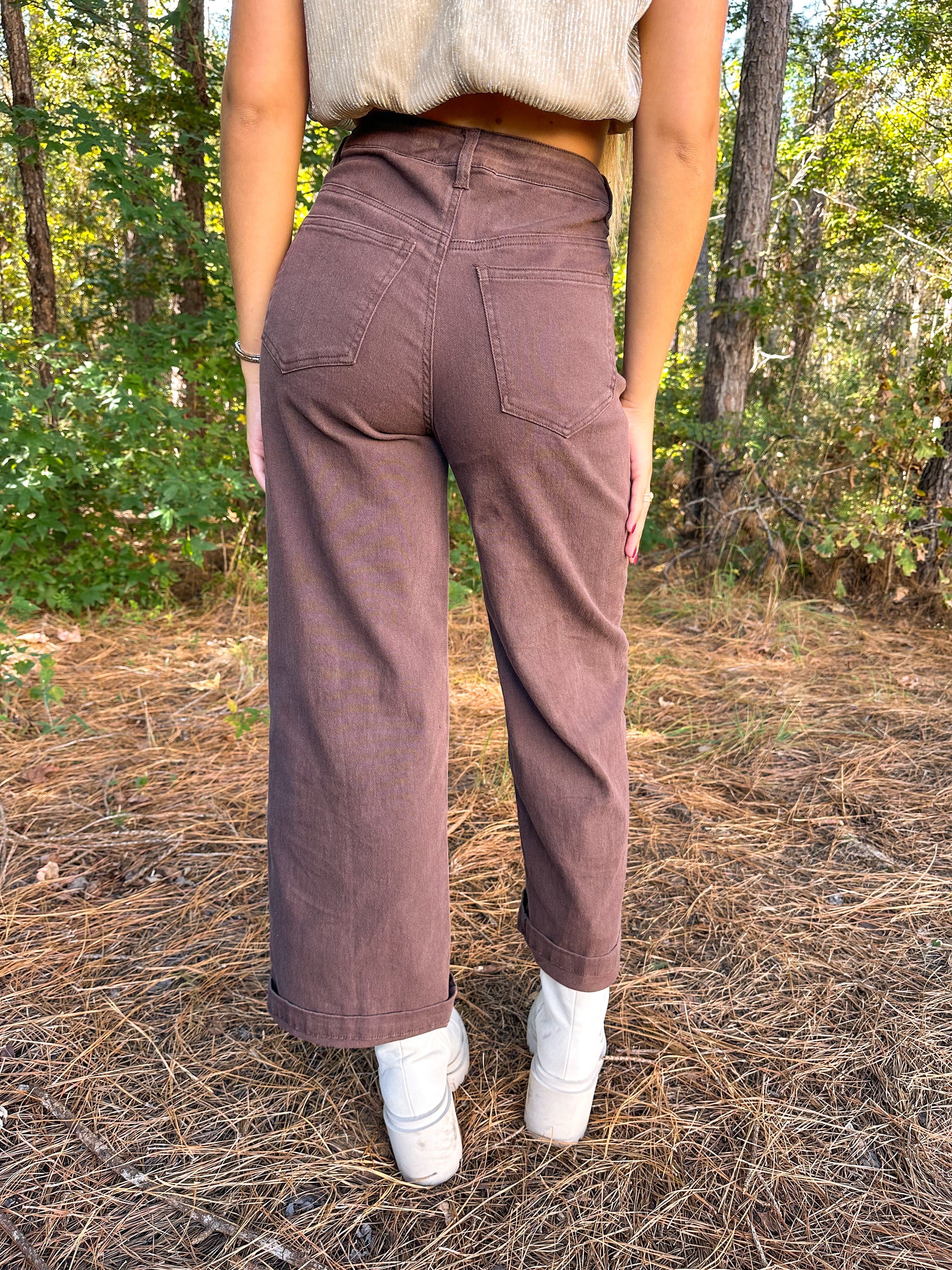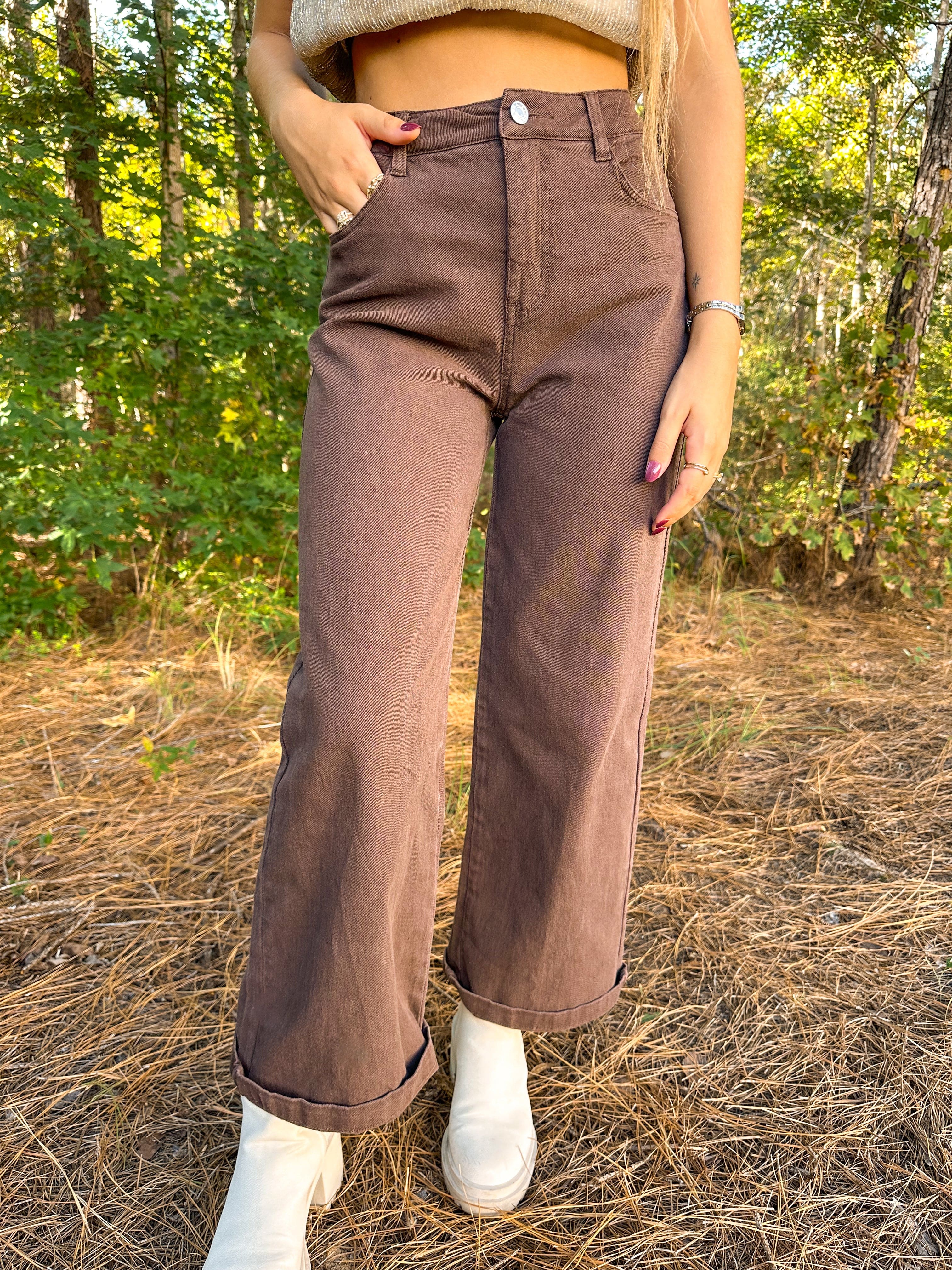 These Aspen Cropped Jeans offer comfort and style with a wide leg and high rise fit. Choose from black or brown for a versatile look. The stretchy fabric allows for easy movement while still complying with fashion trends. Say goodbye to uncomfortable jeans!