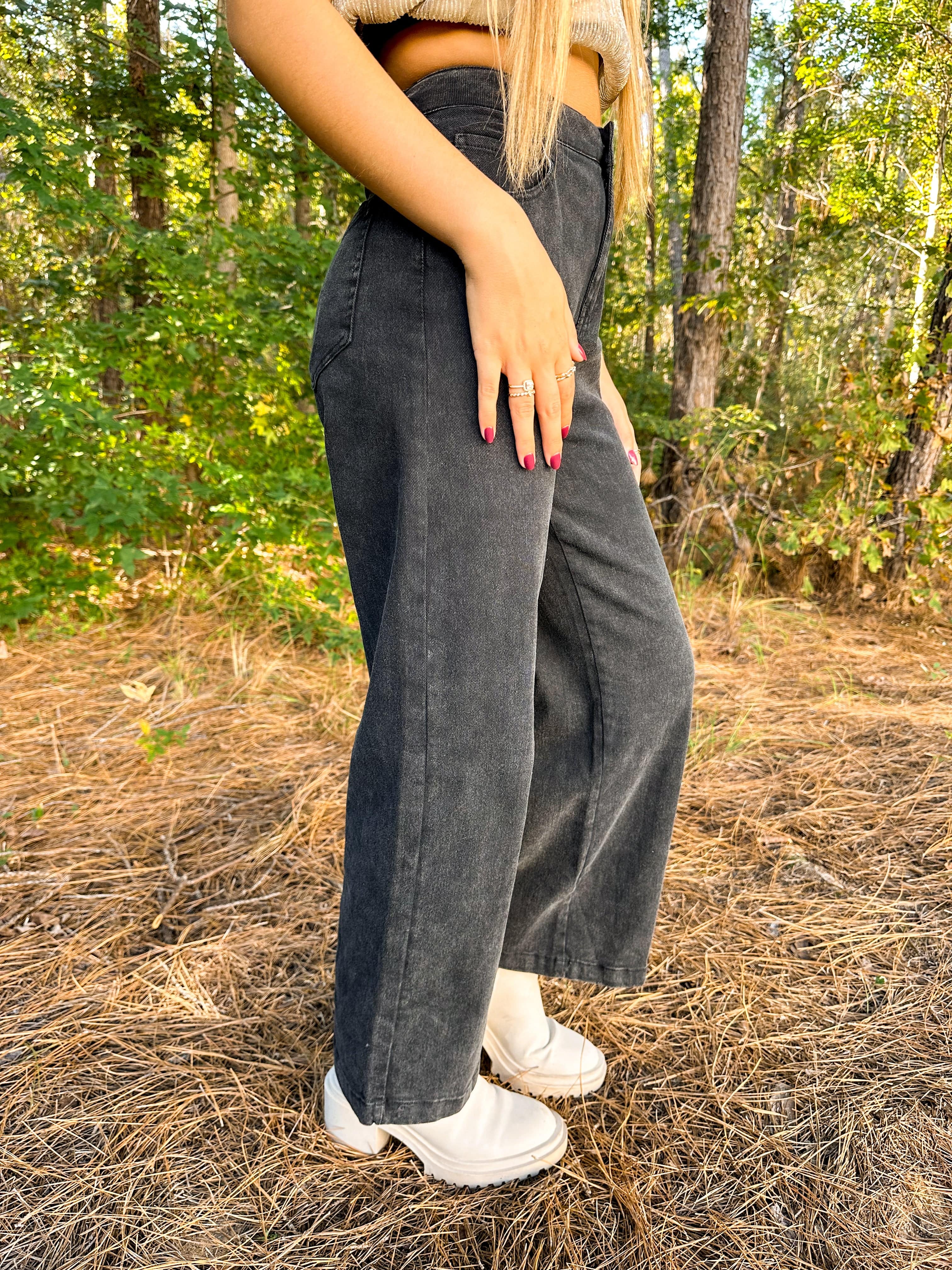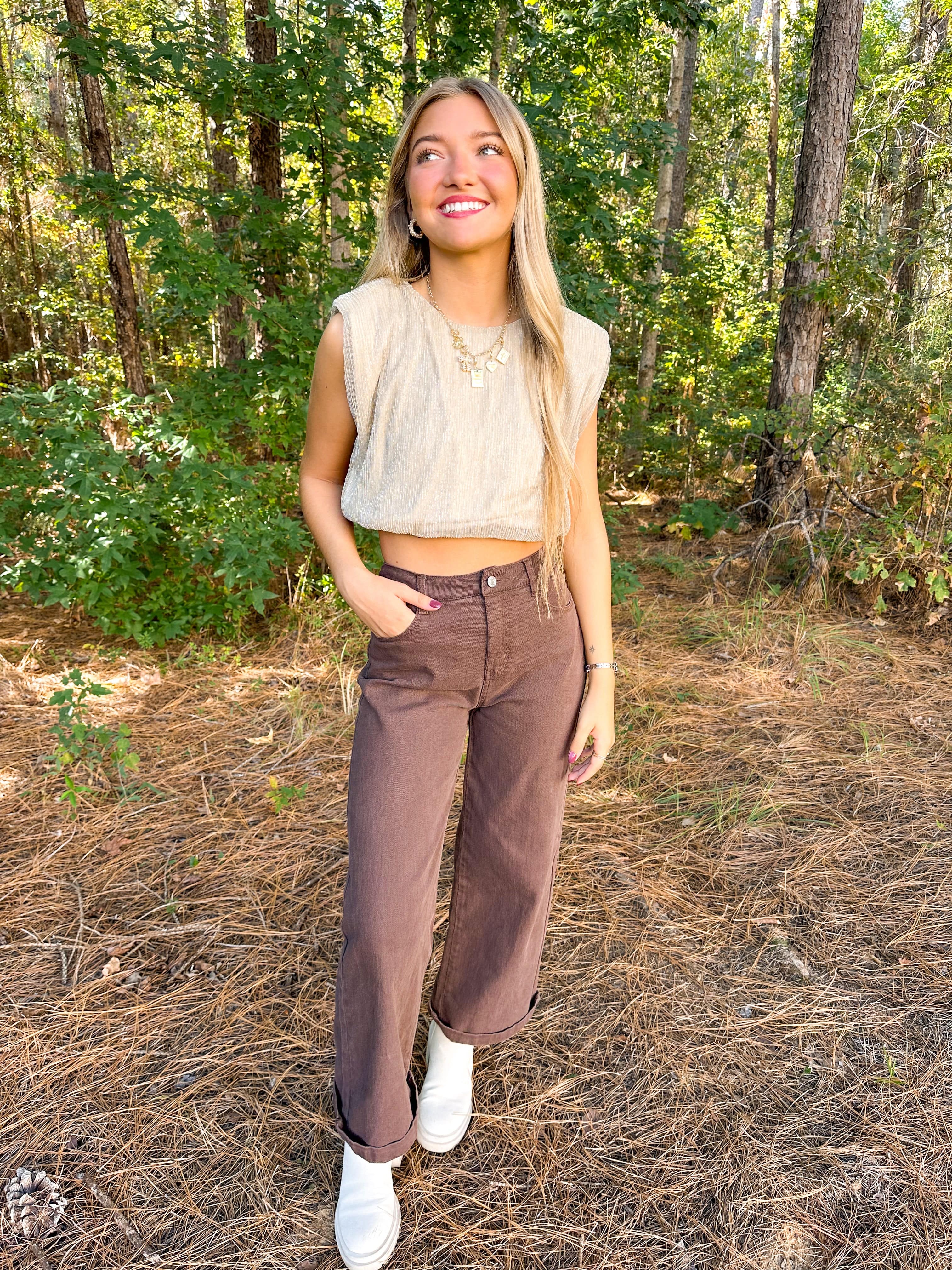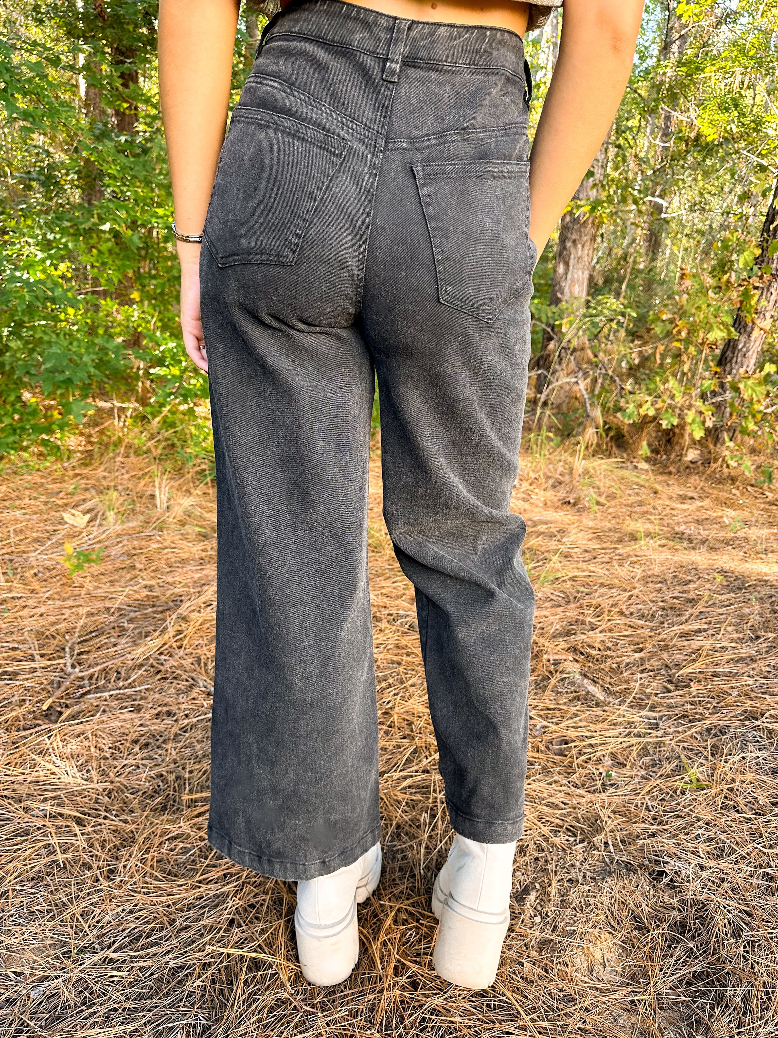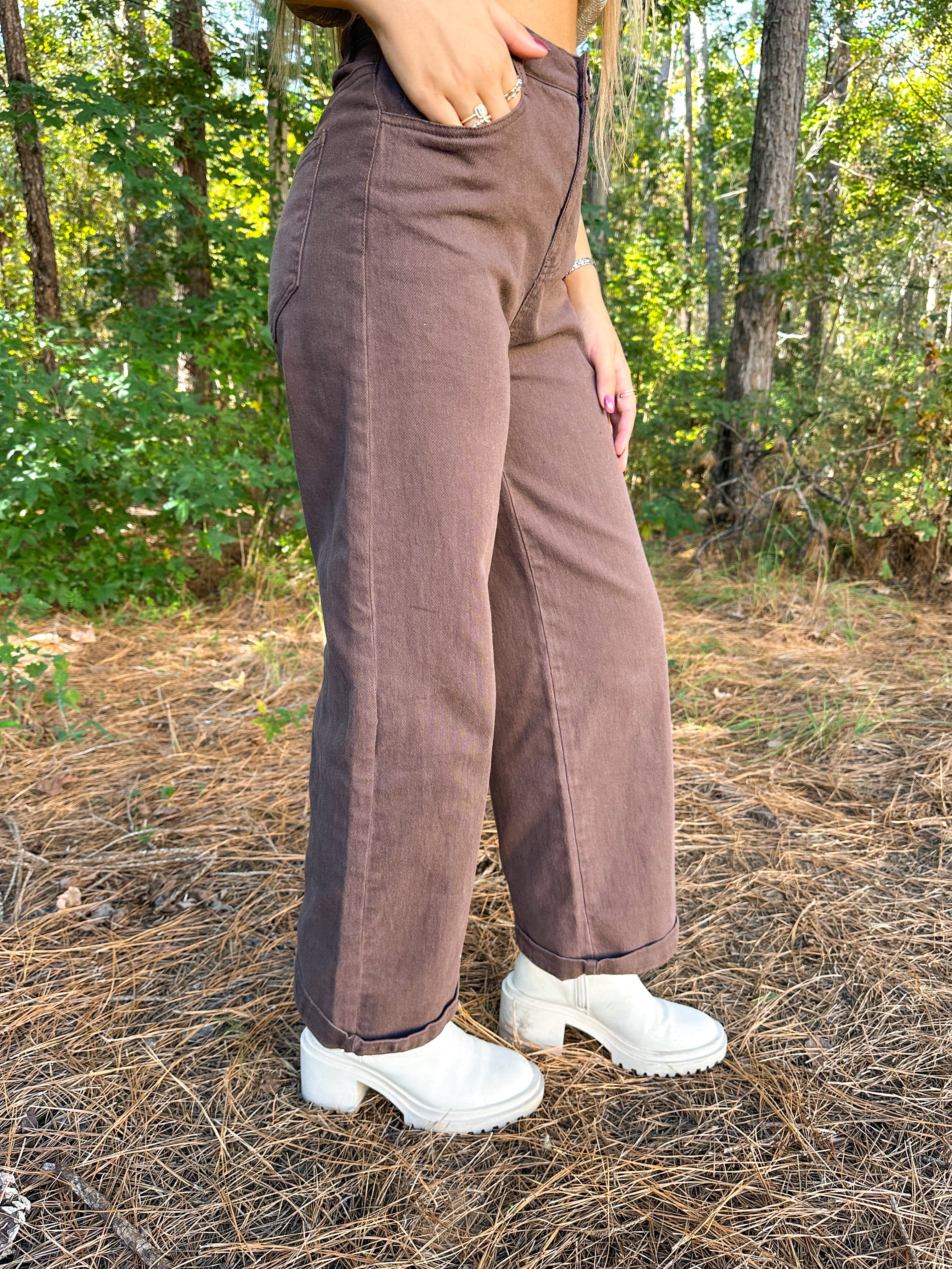 These Aspen Cropped Jeans offer comfort and style with a wide leg and high rise fit. Choose from black or brown for a versatile look. The stretchy fabric allows for easy movement while still complying with fashion trends. Say goodbye to uncomfortable jeans!
