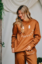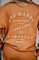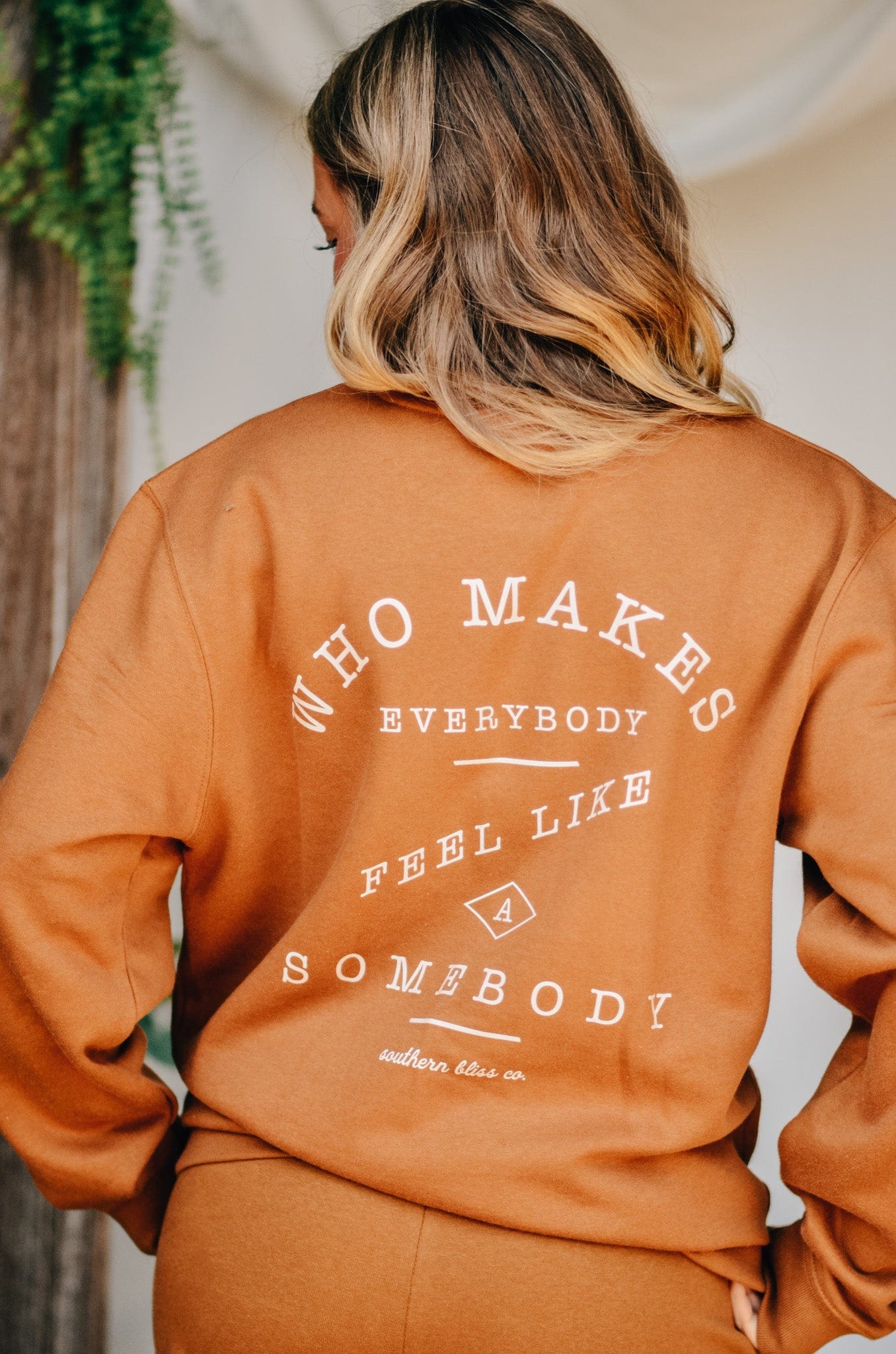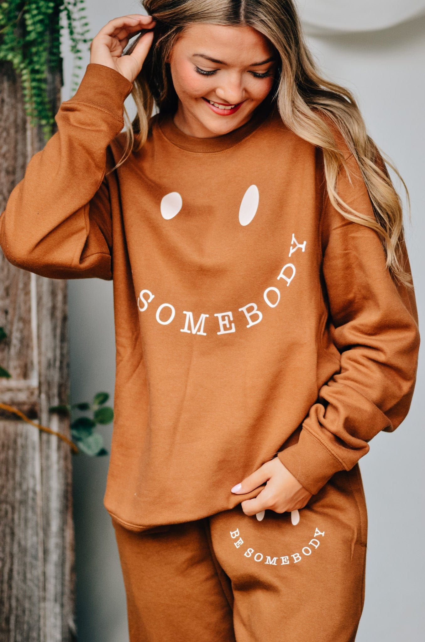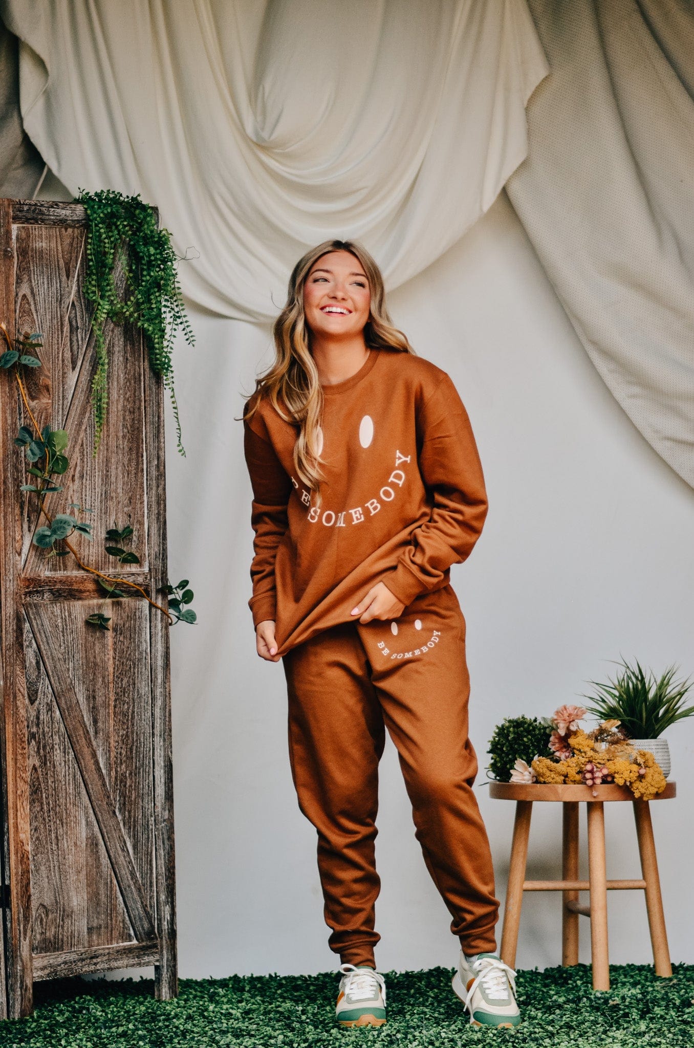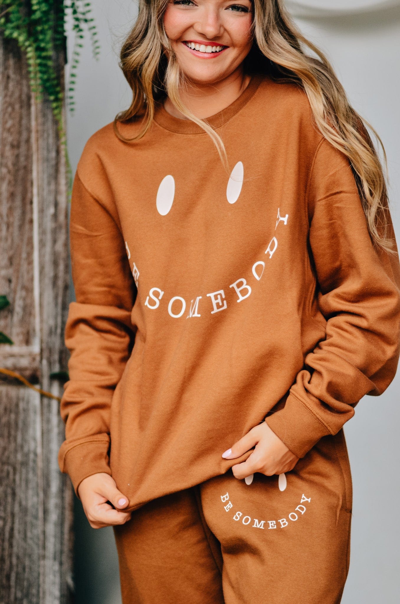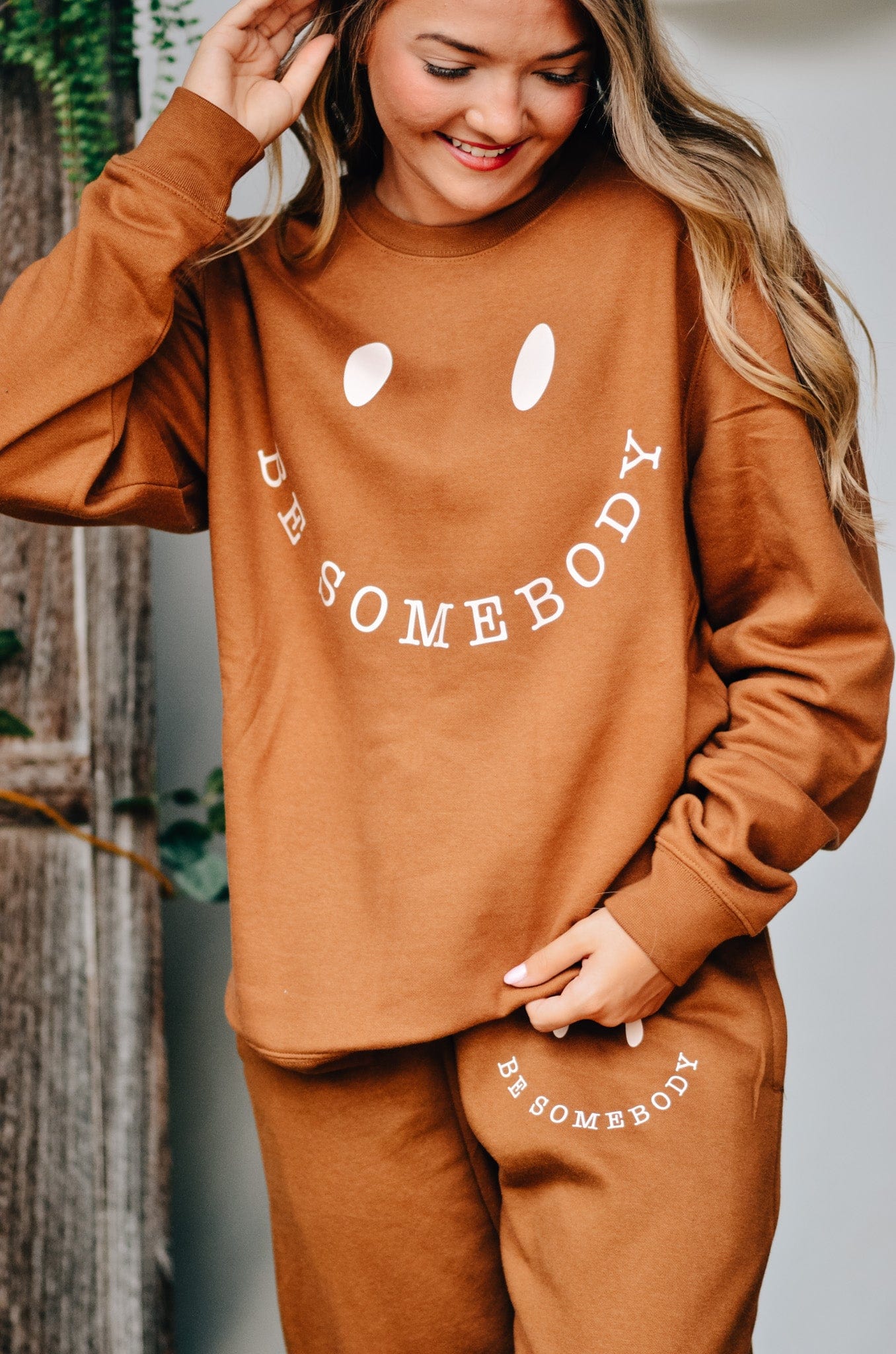 A cozy reminder that kindness stands out. The “Be Somebody” sweatshirt features soft cotton comfort and an uplifting message on both sides. Complete the vibe with the matching joggers for the full feel-good fit!