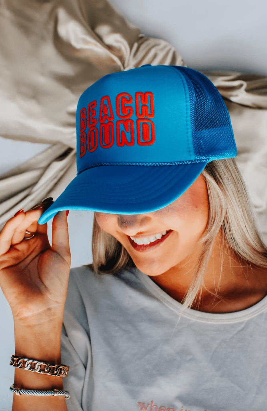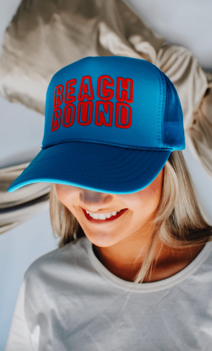 Ready to catch some waves? This blue foam trucker hat features the perfect "Beach Bound" graphic for those who live for the sand, sun, and surf. Whether you’re headed to the coast or just dreaming of beach days, this hat keeps your style laid-back and breezy. With a structured foam front, breathable mesh back, and adjustable snap closure, it’s as comfortable as it is cool—ideal for all your beach adventures.