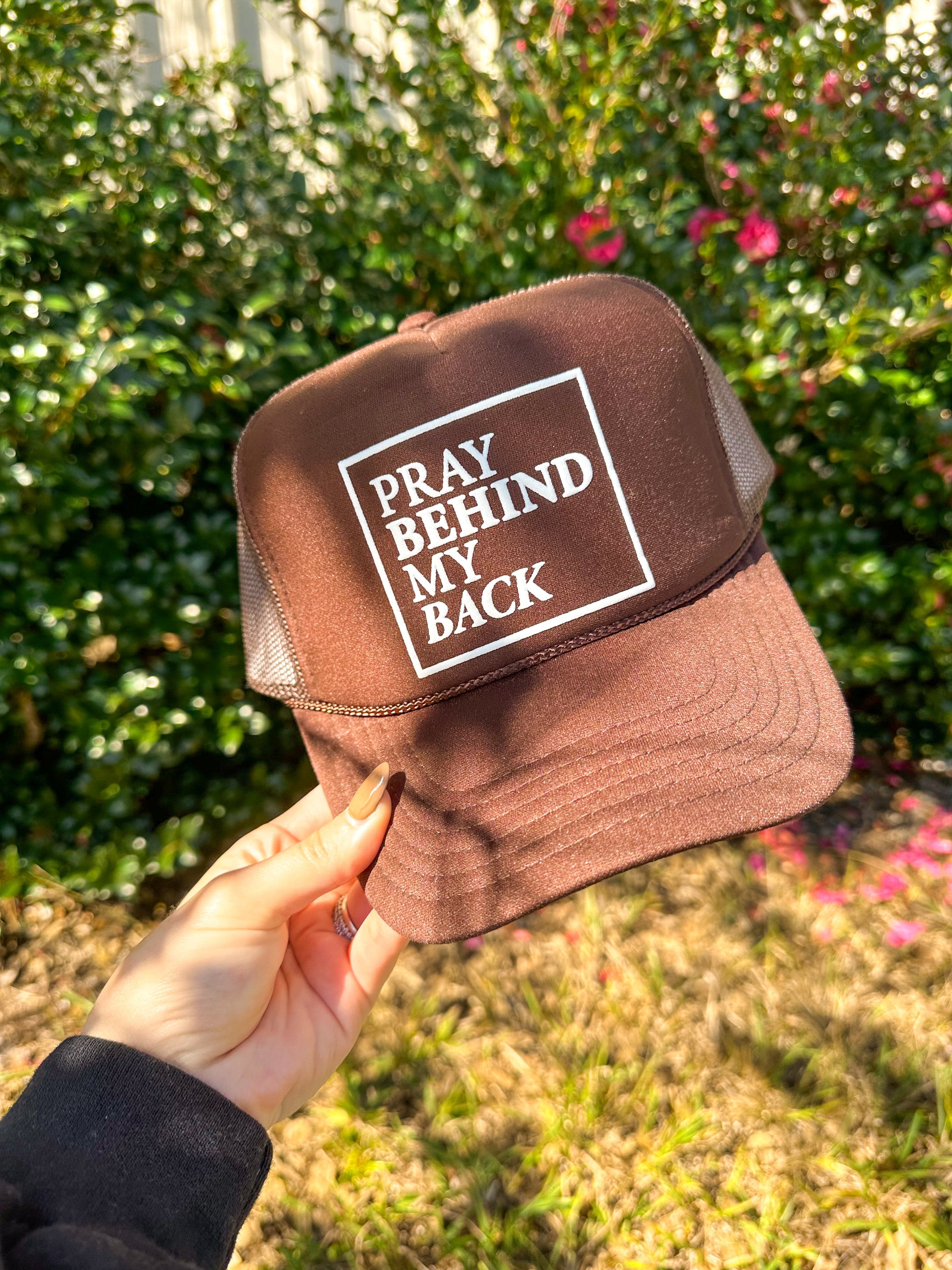 Back by popular demand, but with a fresh twist! This brown foam trucker hat features the bold "Pray Behind My Back" graphic, because you guys have loved the original black version! With a structured foam front, breathable mesh back, and adjustable snap closure, it’s the perfect mix of comfort, sass, and style.