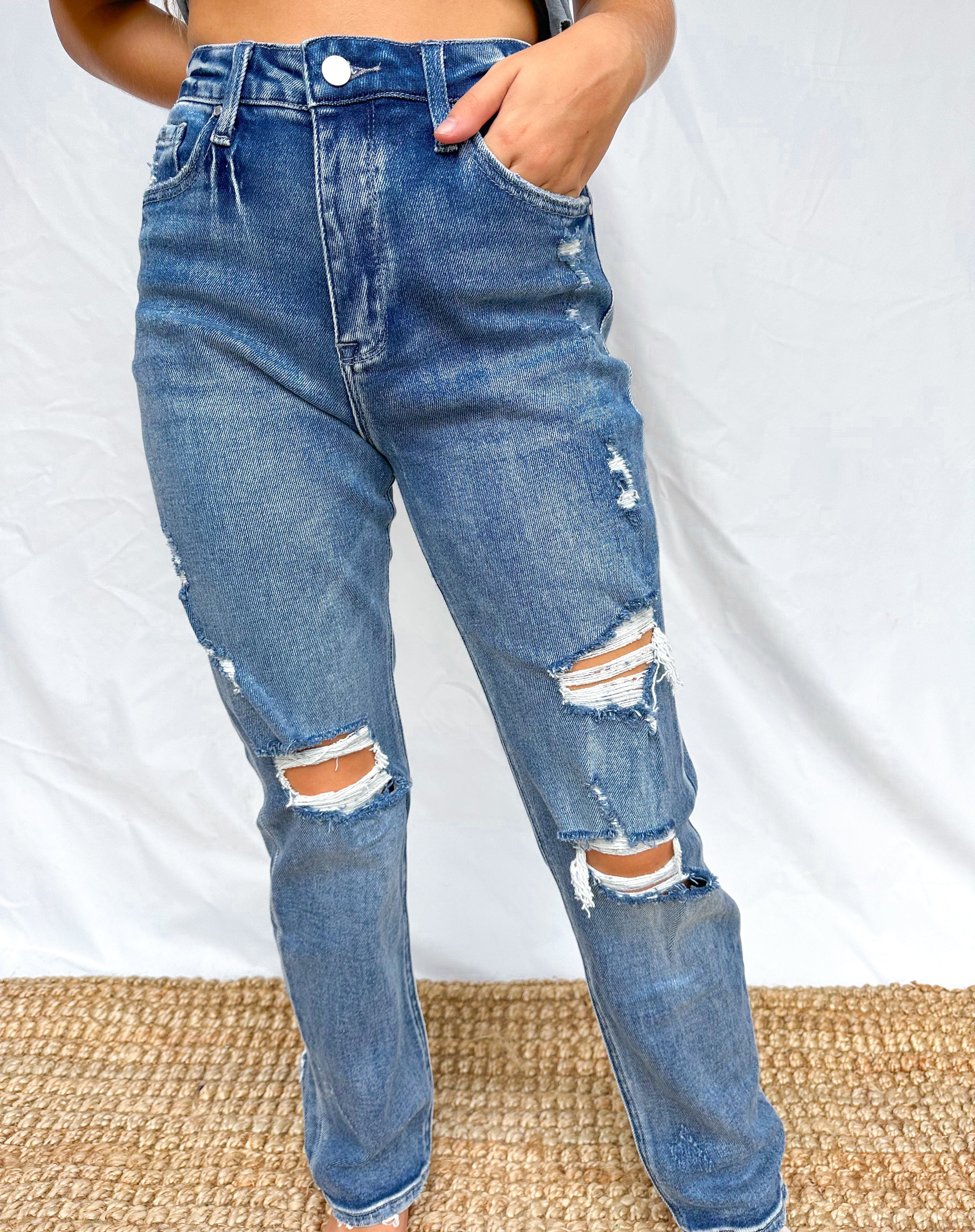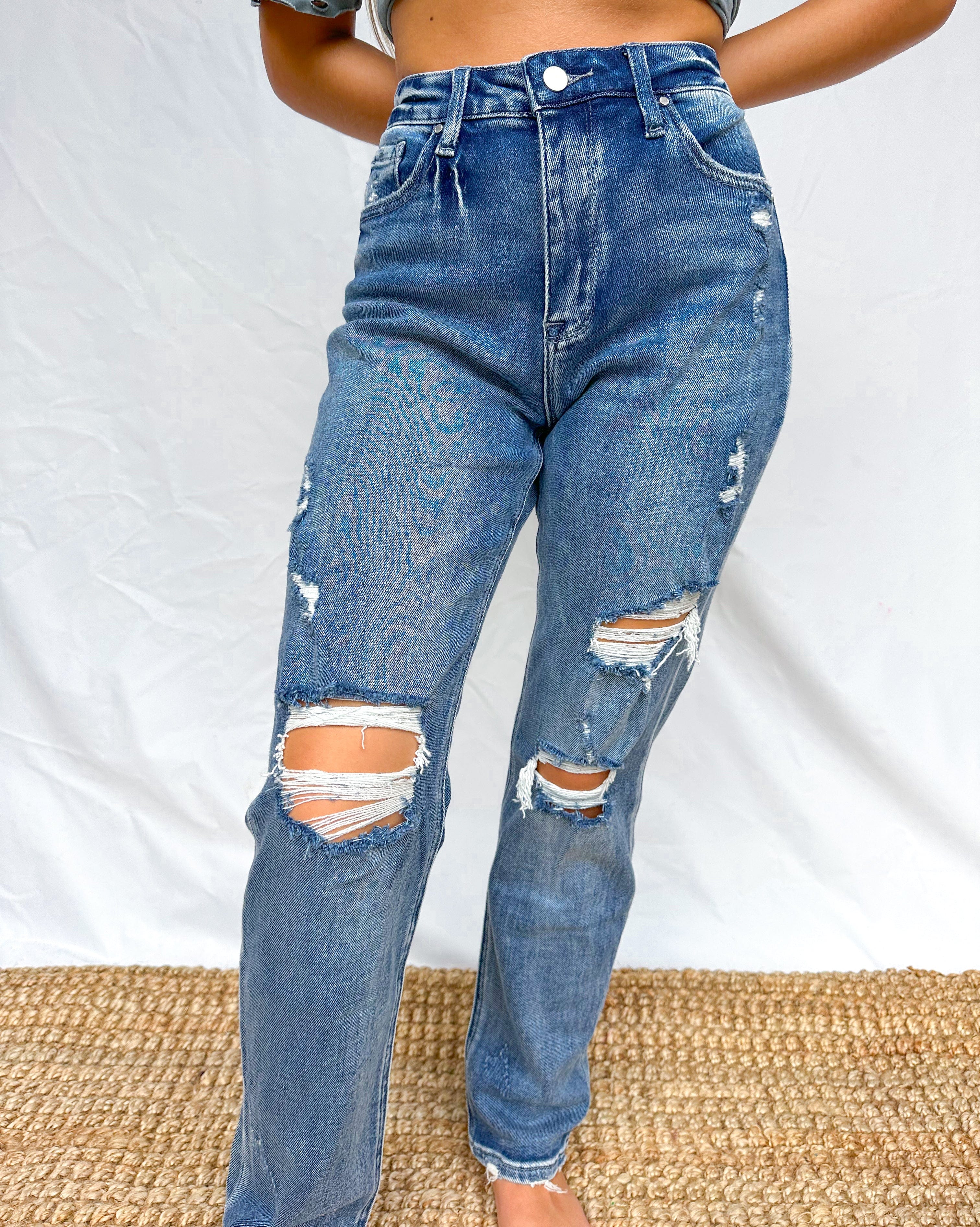 Jumpstart your style with Endless Summer Jeans! A casual take on the most classic style, these jeans feature a light wash & distressed pattern for a unique twist. Plus, they have a straight leg...so you can look (and feel!) your summer best!