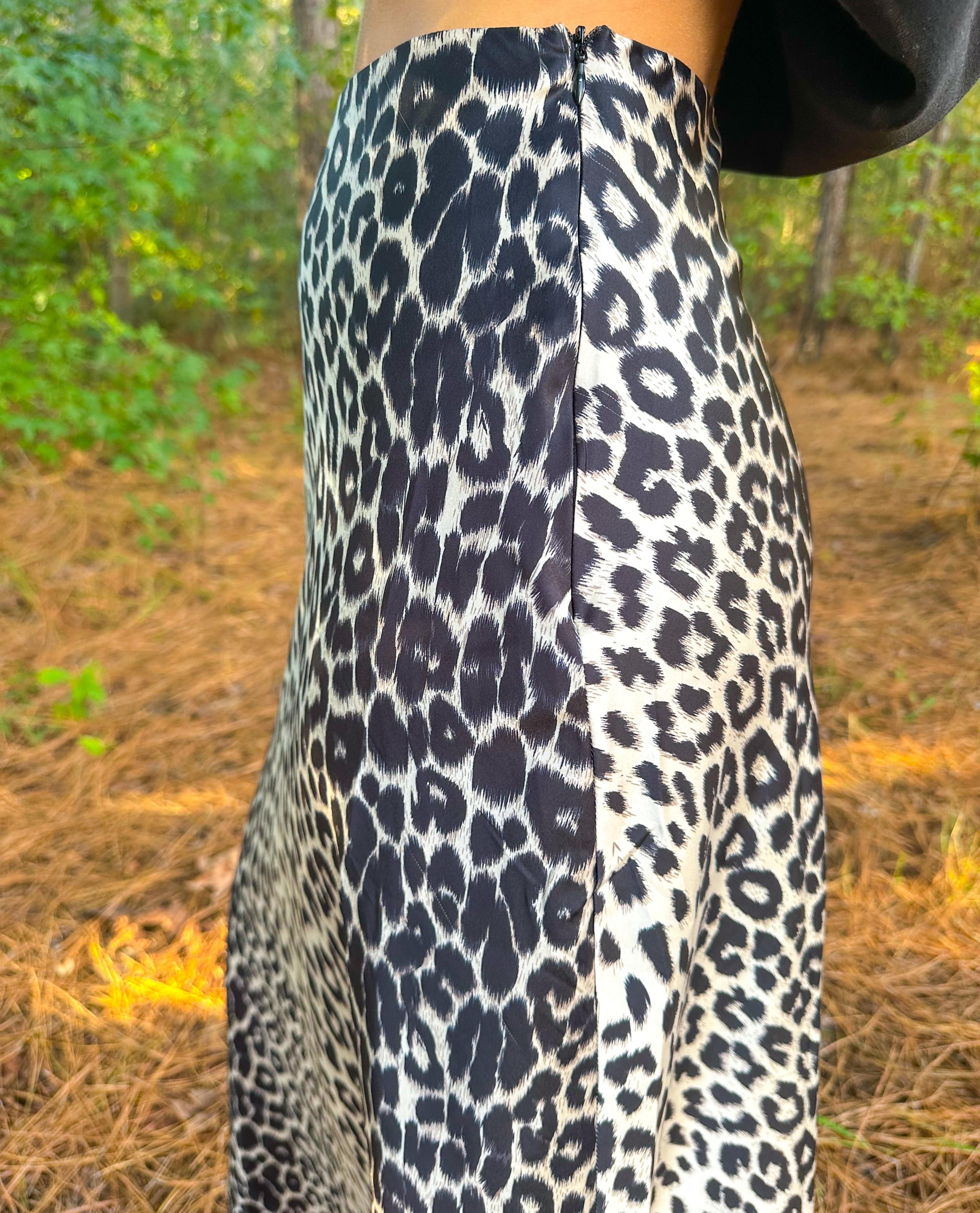The Leopard Print Satin Skirt is a chic and versatile piece that effortlessly elevates any outfit. Made from luxurious satin, it has a buttery-smooth, silky feel that drapes beautifully and catches the light with a subtle sheen. The timeless leopard print pattern in classic tan and black adds a touch of fierce style while still being easy to pair with basics and neutrals. This skirt is sure to become a standout wardrobe staple for both casual days and dressy nights.