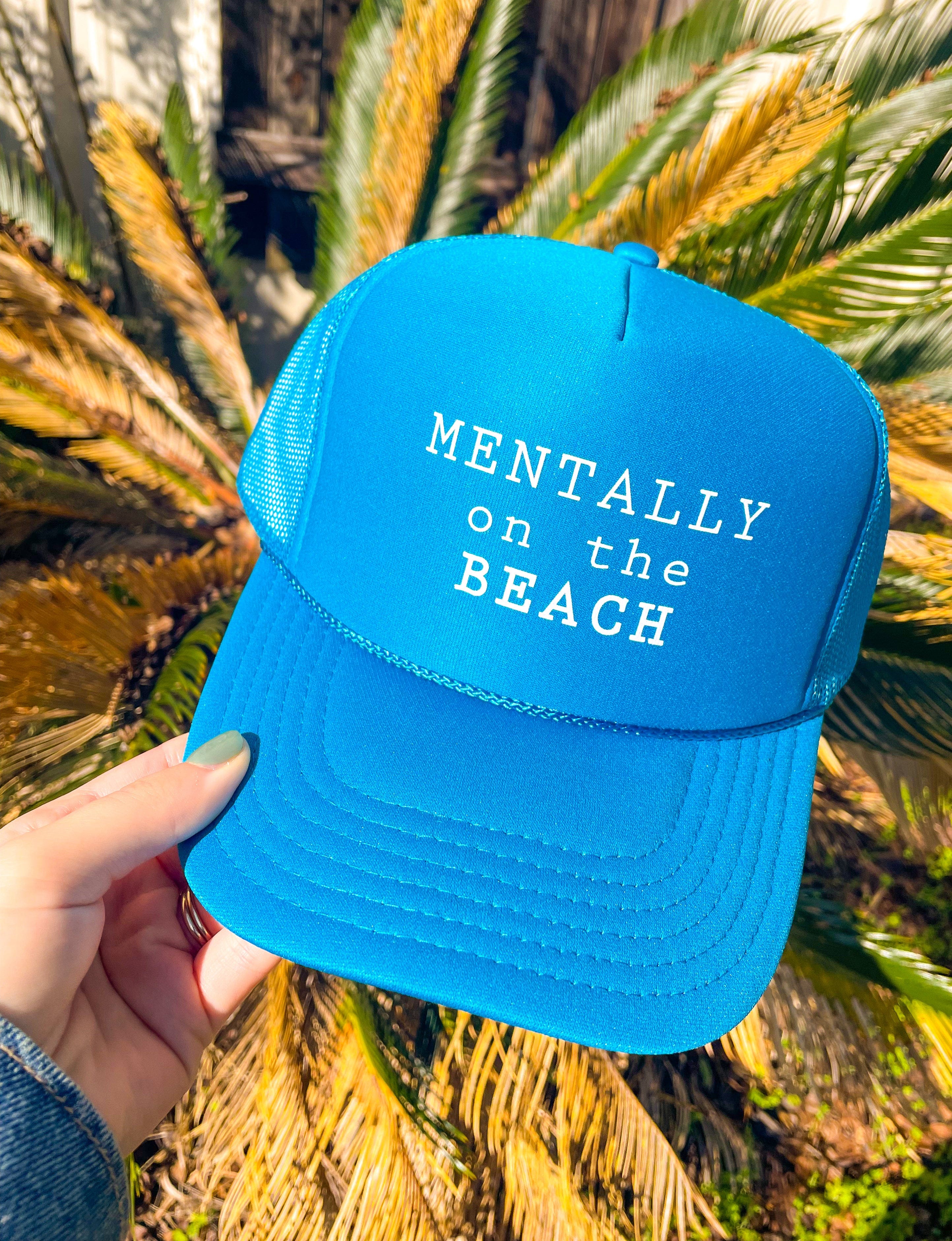Mentally On The Beach Neon Blue Trucker Hat