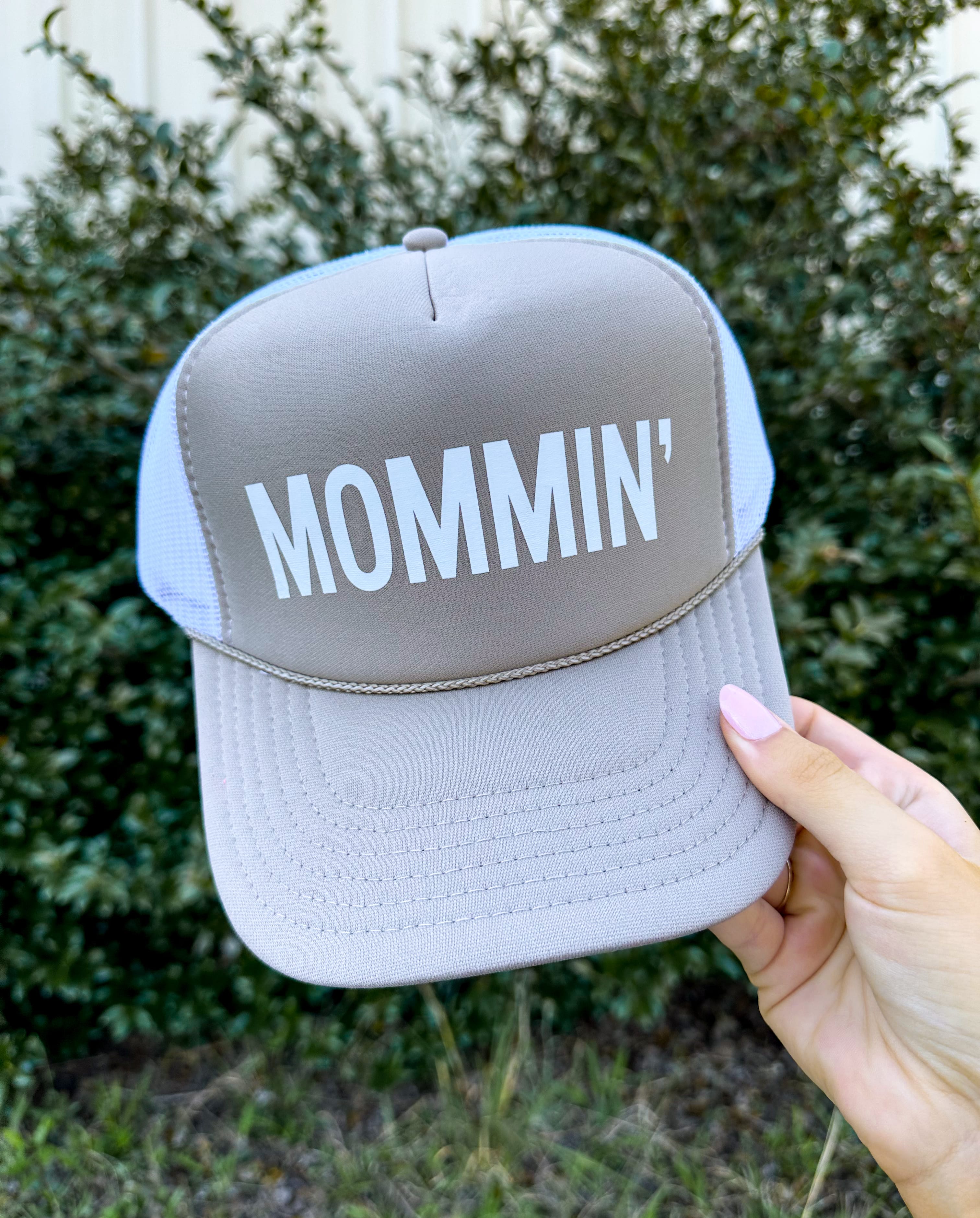 MOMMIN' Tan/White Trucker Hat